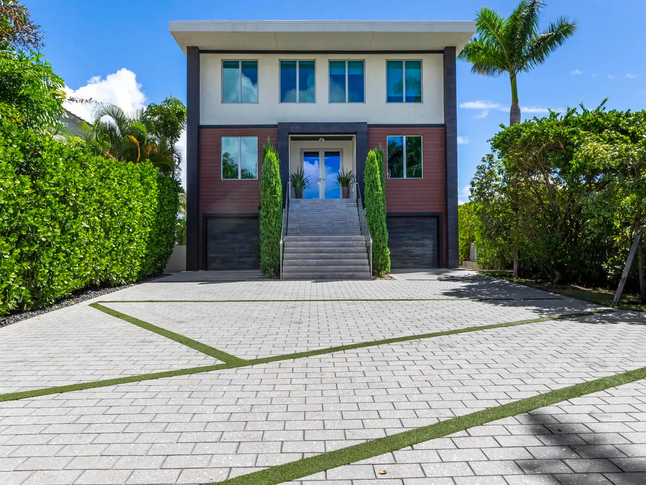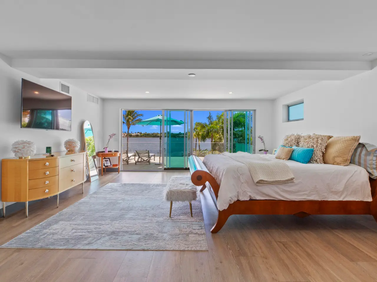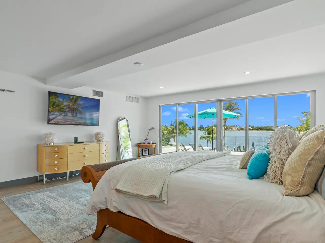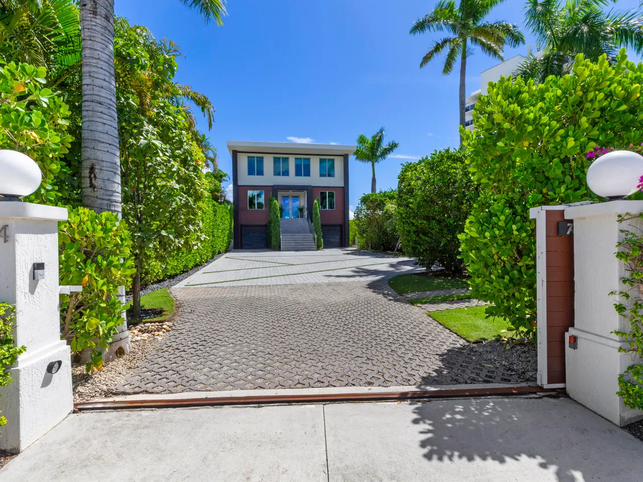This stunning new direct Intracoastal Oasis was inspired by the incredibly talented minimalist architect Ludwig Mies who was the pioneer of modern architecture. The home's main level has the gourmet kitchen, the living, family and dining rooms all in one open space boasting beautiful views of the wide Intracoastal waterway and Palm Beach. Take the elevator to the third floor where the primary suite has a large deck overlooking the resort style back yard/pool/spa and beachfront. This third level has two additional bedrooms with en-suite baths and great closets. The VIP bedroom and club room are located on the ground floor and live like a separate home. Down at the beach sits a lovely private cabana giving guests the best seat in the house! Behind the entry gates, the air conditioned garage