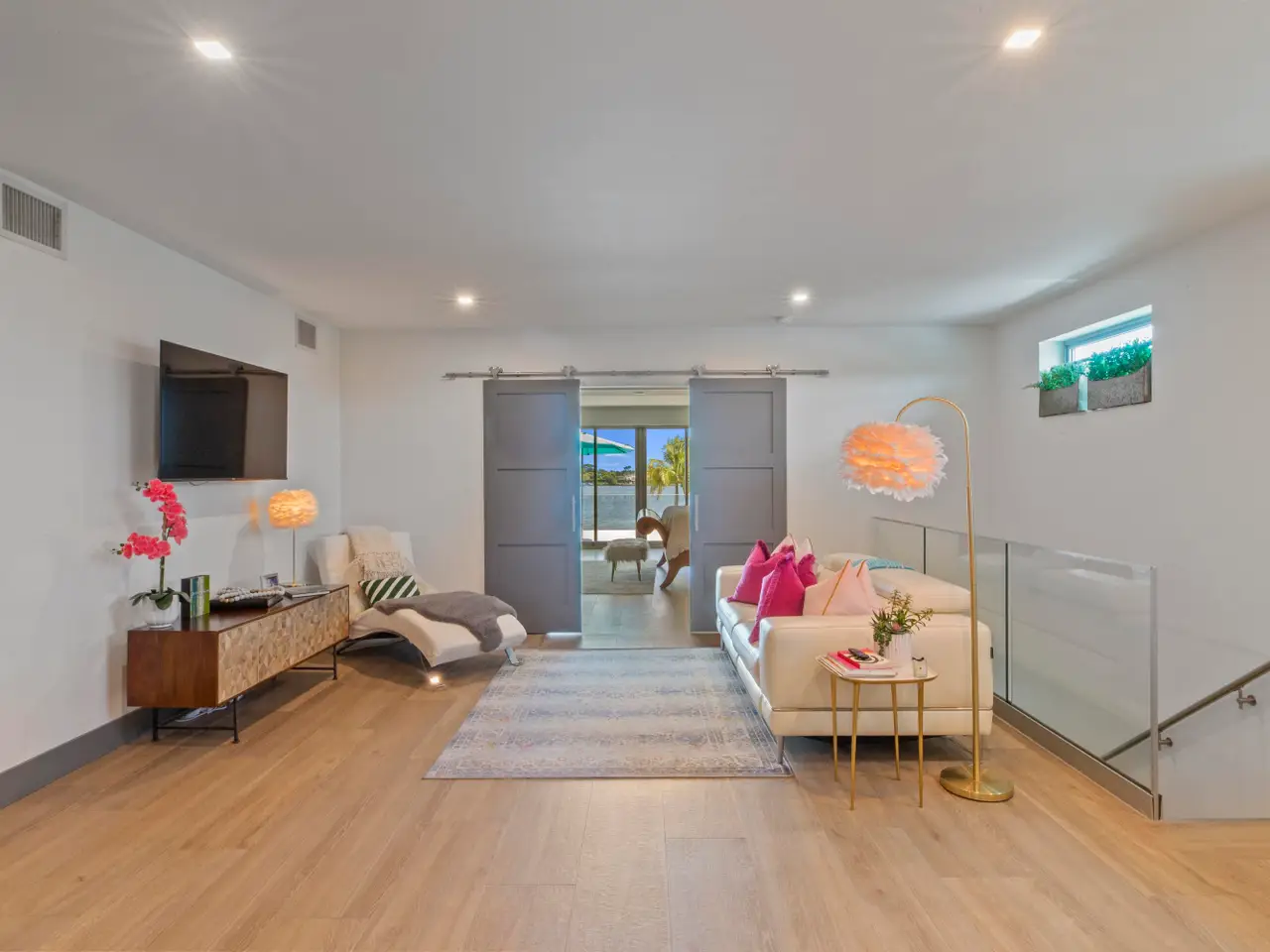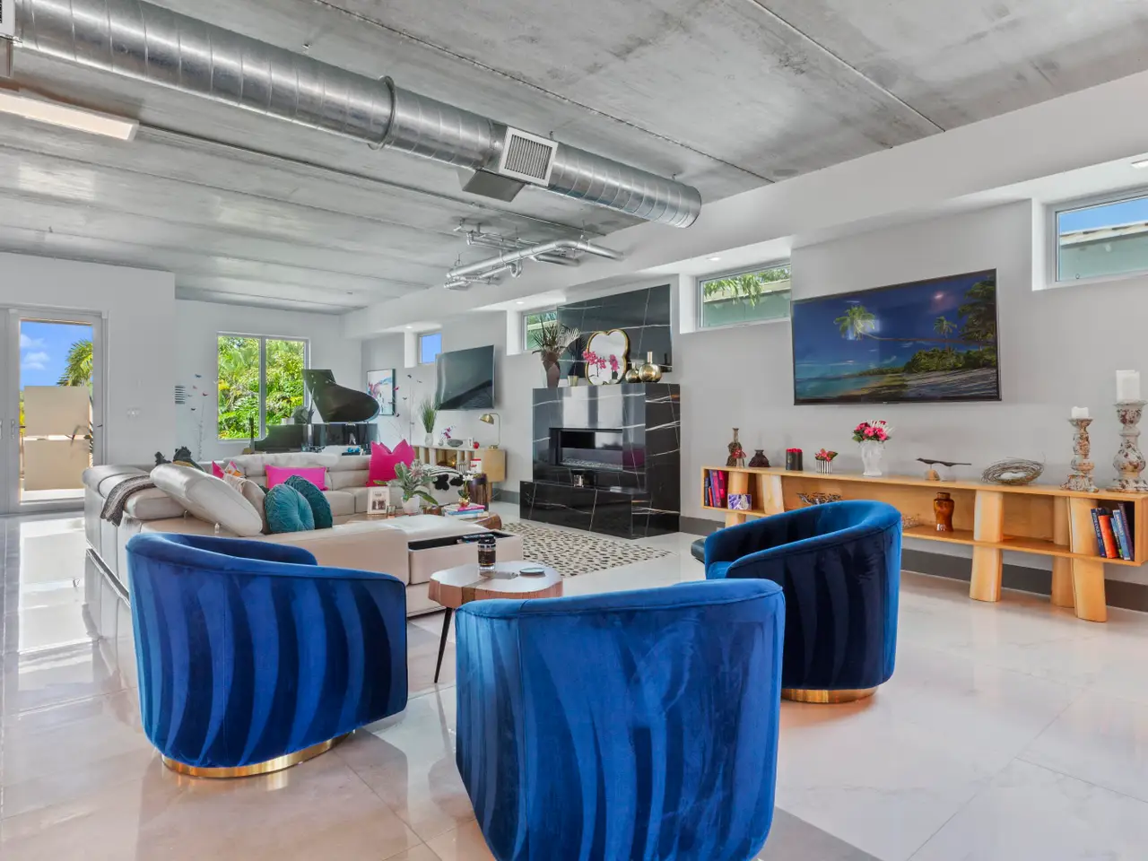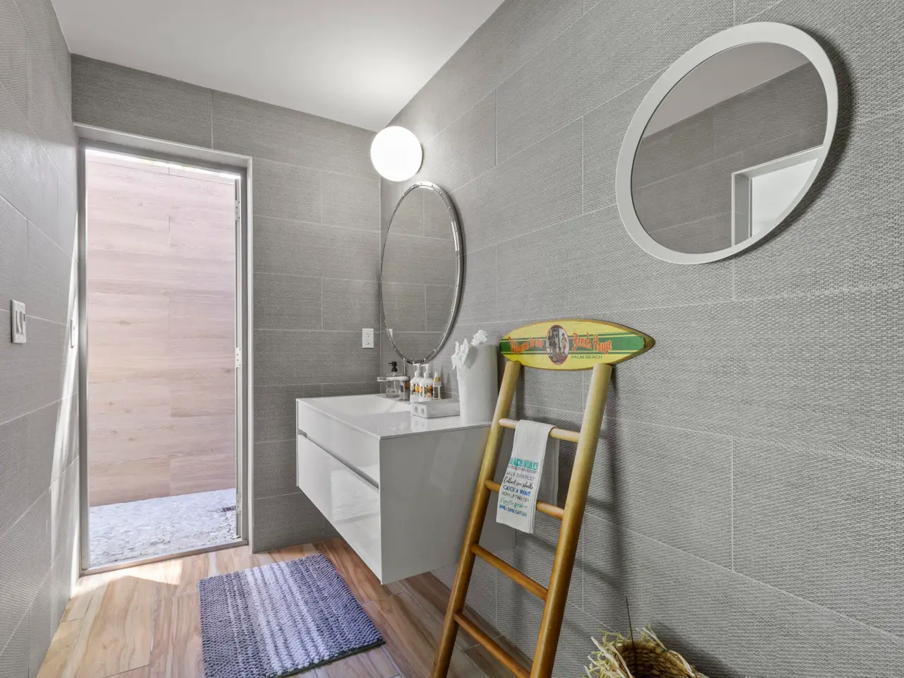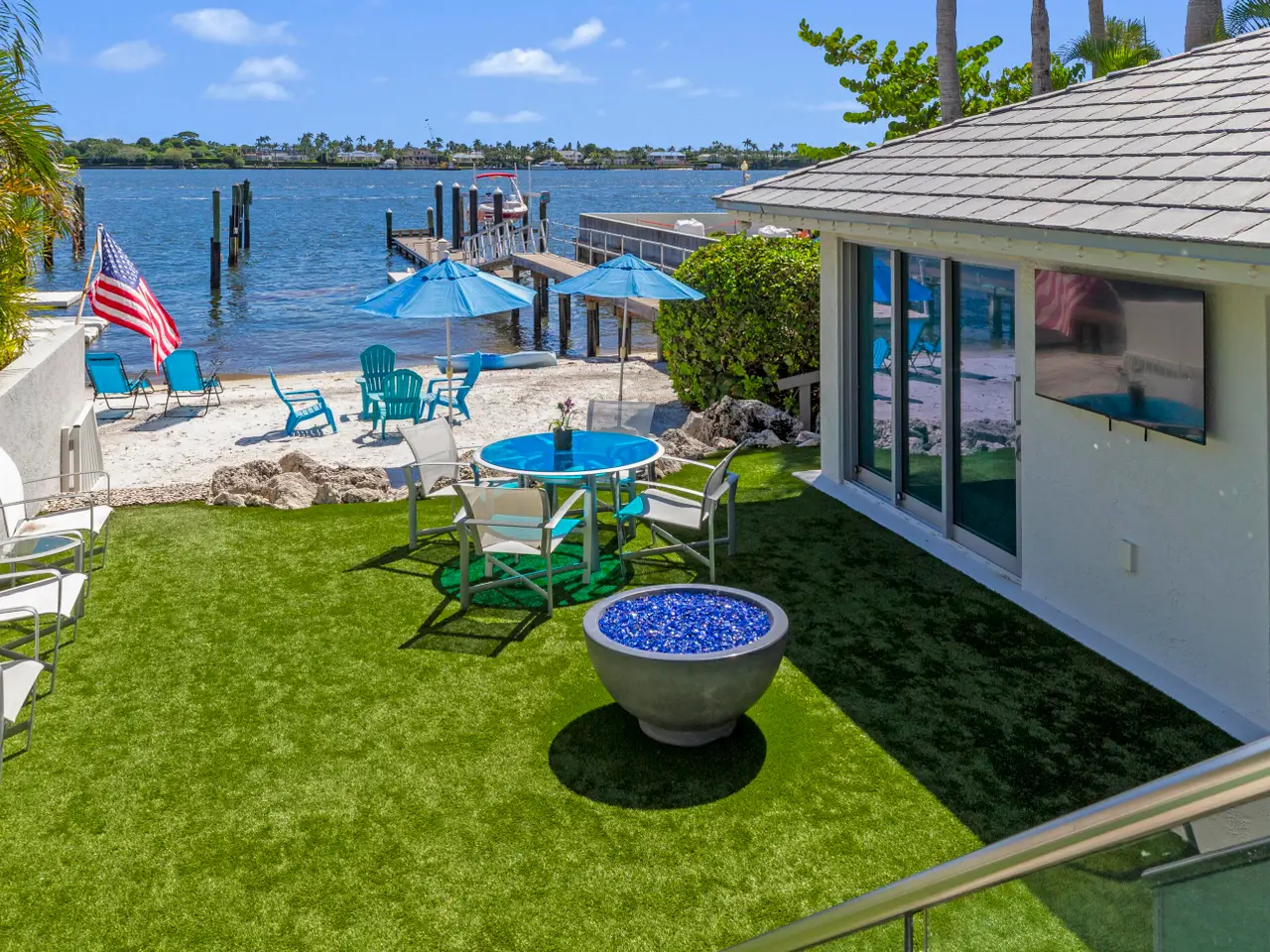 This stunning new direct Intracoastal Oasis was inspired by the incredibly talented minimalist architect Ludwig Mies who was the pioneer of modern architecture. The home's main level has the gourmet kitchen, the living, family and dining rooms all in one open space boasting beautiful views of the wide Intracoastal waterway and Palm Beach. Take the elevator to the third floor where the primary suite has a large deck overlooking the resort style back yard/pool/spa and beachfront. This third level has two additional bedrooms with en-suite baths and great closets. The VIP bedroom and club room are located on the ground floor and live like a separate home. Down at the beach sits a lovely private cabana giving guests the best seat in the house! Behind the entry gates, the air conditioned garage