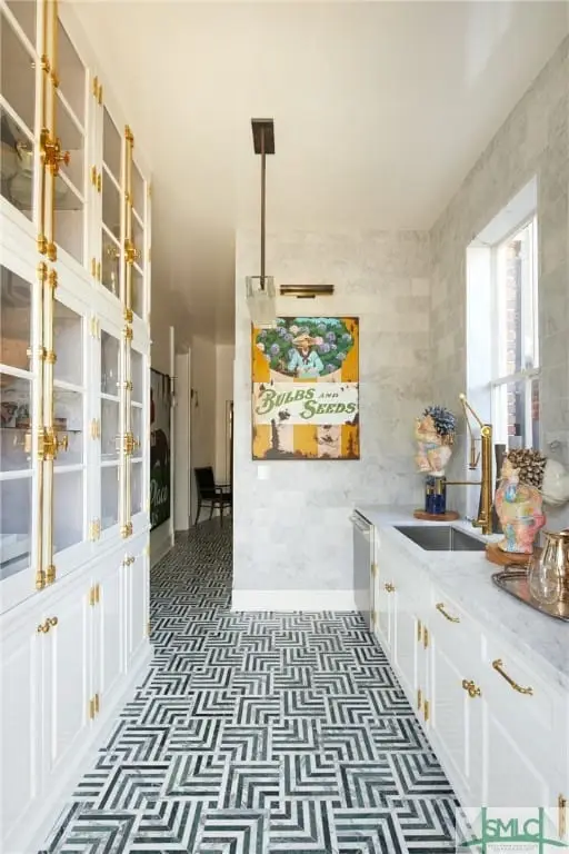 Enjoy unparalleled luxury and experience the pinnacle of downtown Savannah living at this exquisite freestanding c.1855 brick residence located in the heart of the Historic Landmark District on Monterey Square. Distinctive architectural design seamlessly blends period details with sophisticated modern elements. Couture-furnished interiors appointed with extraordinary natural materials and quality finishes are defined by beautifully proportioned light-filled spaces, soaring ceilings, exquisite plaster work, Old World craftsmanship, custom-lacquered finishes, hand-painted walls by renowned artist Bob Christian and custom lighting. The primary suite with private veranda stands apart as a sanctuary of style that occupies the entire second floor. A breathtaking chef's kitchen serves as a haven for home chefs and wine connoisseurs. This 5,500-plus square foot architectural masterpiece offers additional amenities, including stunning outdoor spaces, private elevator, garden-level apartment, two-car garage and much more.