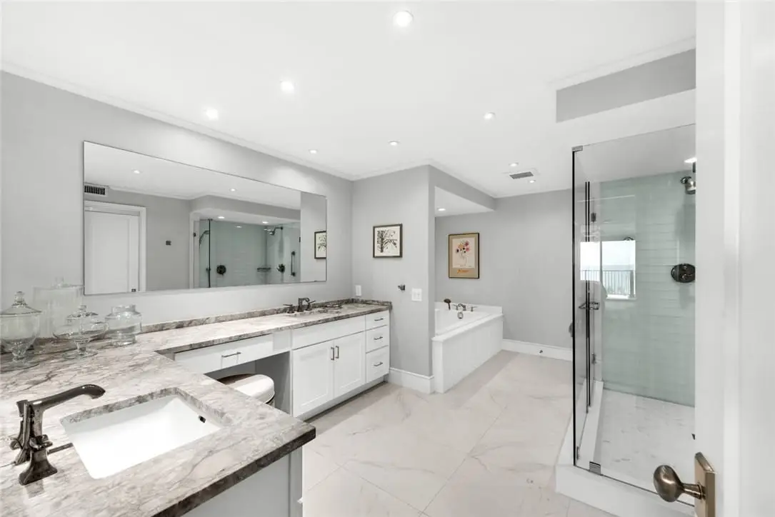 Experience the epitome of luxury with this oceanfront condo! Elegantly designed throughout. The modern kitchen features bright cabinetry, Quartz counters, marble floors & stylish recessed lighting. A bar area with a marble counter & wine cooler. The primary bedroom offers stunning ocean views & access to a oceanfront balcony. Den/office off guest suite. Step out onto the covered balcony & soak in the breathtaking ocean views completing the ultimate coastal living experience. A/C 2023. Amenities include a private fishing pier, pool, game room & exercise room. Sizes approximate/subject to error.