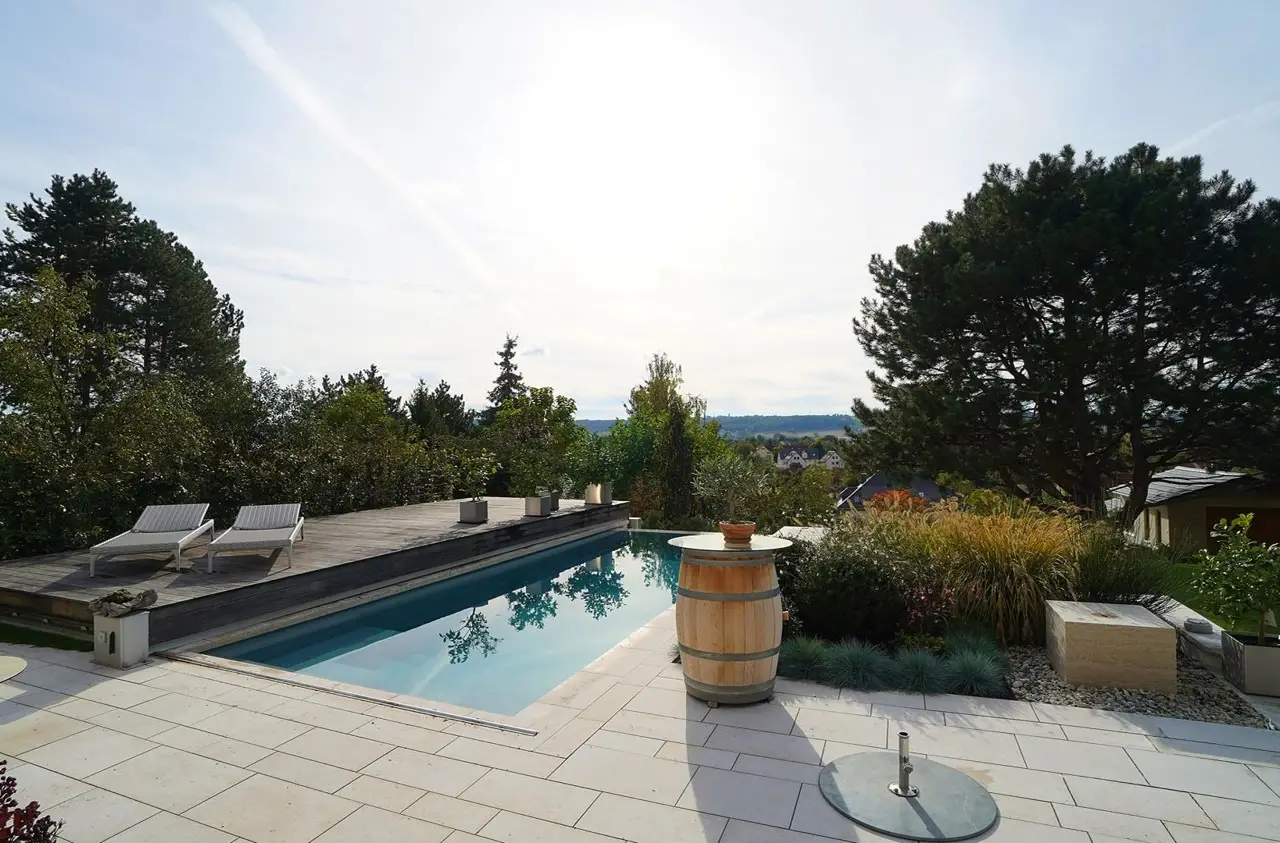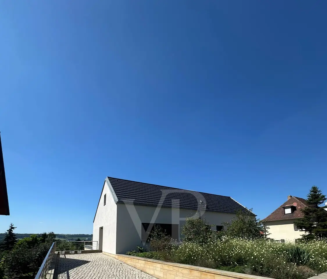 Exclusive villa in Radebeul - luxury meets wine enjoyment and panoramic views Nestled in the idyllic vineyards of Radebeul, this extraordinary villa presents itself as a retreat for the most discerning guests. Built in 2021, the property combines timeless architecture with state-of-the-art facilities and blends harmoniously into the picturesque landscape of the upper Elbe valley. With a living area of around 253 m², the property combines light-flooded, spacious rooms with exquisite materials and bespoke details. Floor-to-ceiling windows open up breathtaking views of the Elbe Valley, while real walnut floors and an elegant fireplace create a warm living atmosphere. The heart of the house is the open-plan living and dining area with adjoining gourmet kitchen, which inspires culinary experiences. An air-conditioned wine room, a private sauna and luxurious bathrooms - including a bathroom with a free-standing bath and handmade Villeroy & Boch tiles dating back to 1890 - set stylish accents. The first floor was designed to be barrier-free and offers direct access from the garage to the bathroom. The upper floor has a separate entrance and can be used flexibly as an independent apartment or business unit - ideal for guests, home office or rental. The outdoor area is a paradise for connoisseurs: a heated infinity pool with electrically adjustable deck, outdoor shower and fire pit provide a vacation feeling, while the large terrace with outdoor kitchen, barbecue area and Mediterranean herb garden offers perfect conditions for sociable evenings. The spacious plot of 1,591 m² guarantees maximum privacy with unobstructed panoramic views. The high-quality features include a smart home system, geothermal heating, well, automatic window openings, heated garden shed, workshop, double garage and manicured lawn. The location combines tranquillity and nature with excellent connections: Bus, streetcar (line 4) and S-Bahn are all within walking distance, and Dresden city center and the airport can be reached in around 20 minutes. Surrounded by vineyards, nature reserves and the Radebeul forest park, you also benefit from an excellent infrastructure with stores, doctors and children's facilities. This villa is much more than a home - it is a statement of exclusive living in one of Saxony's most sought-after locations.