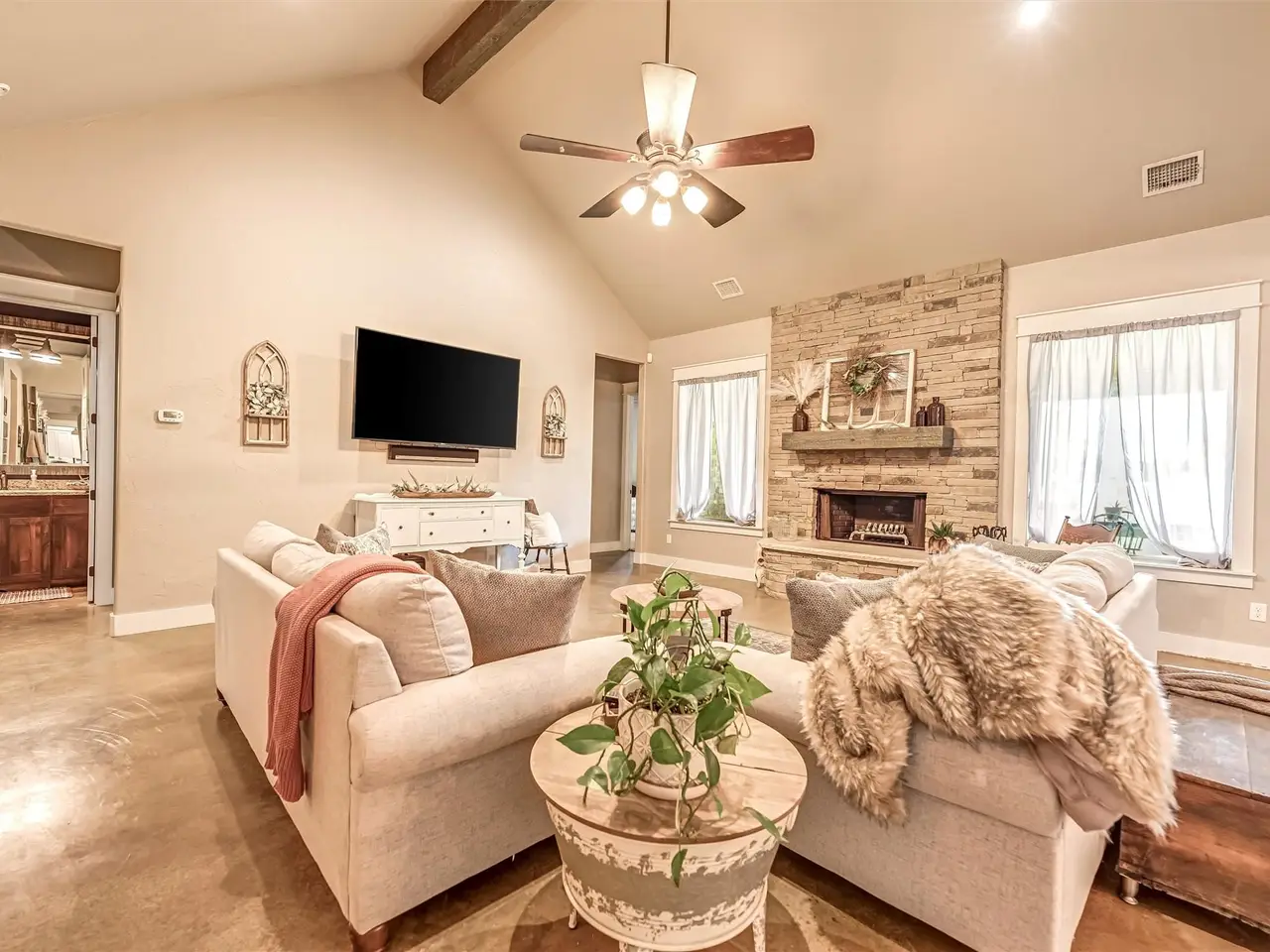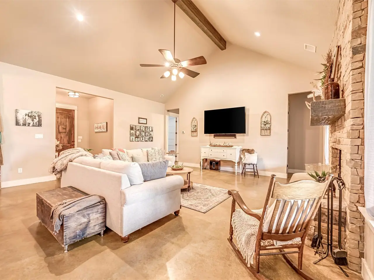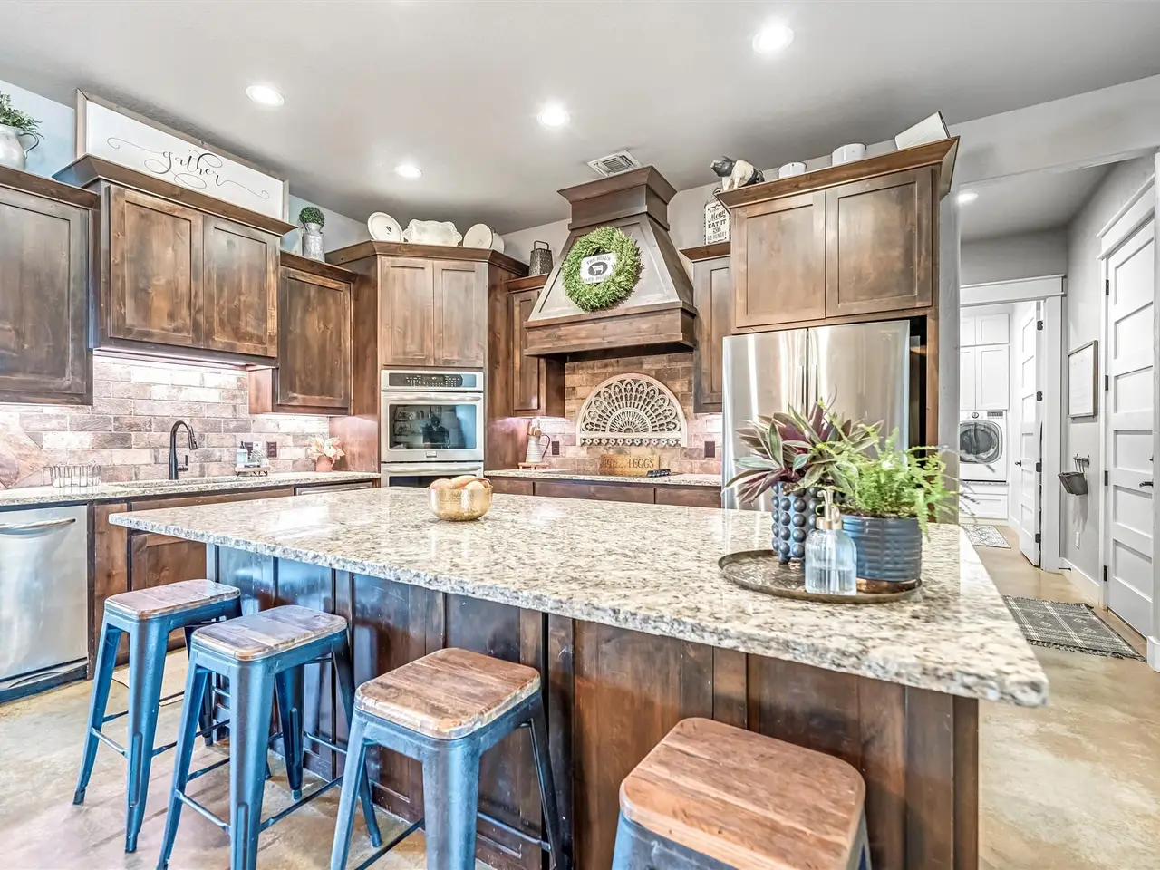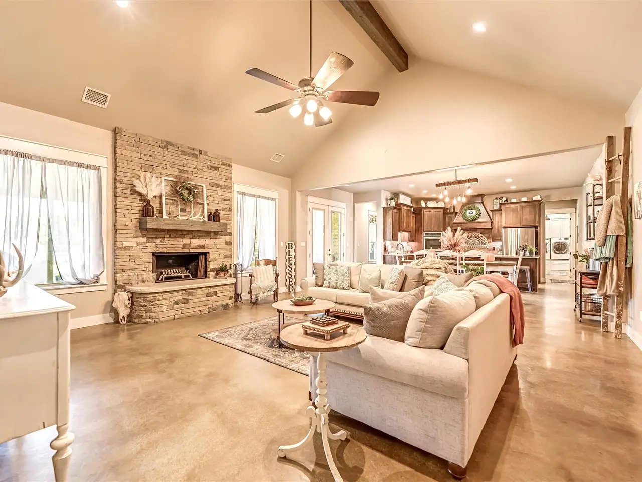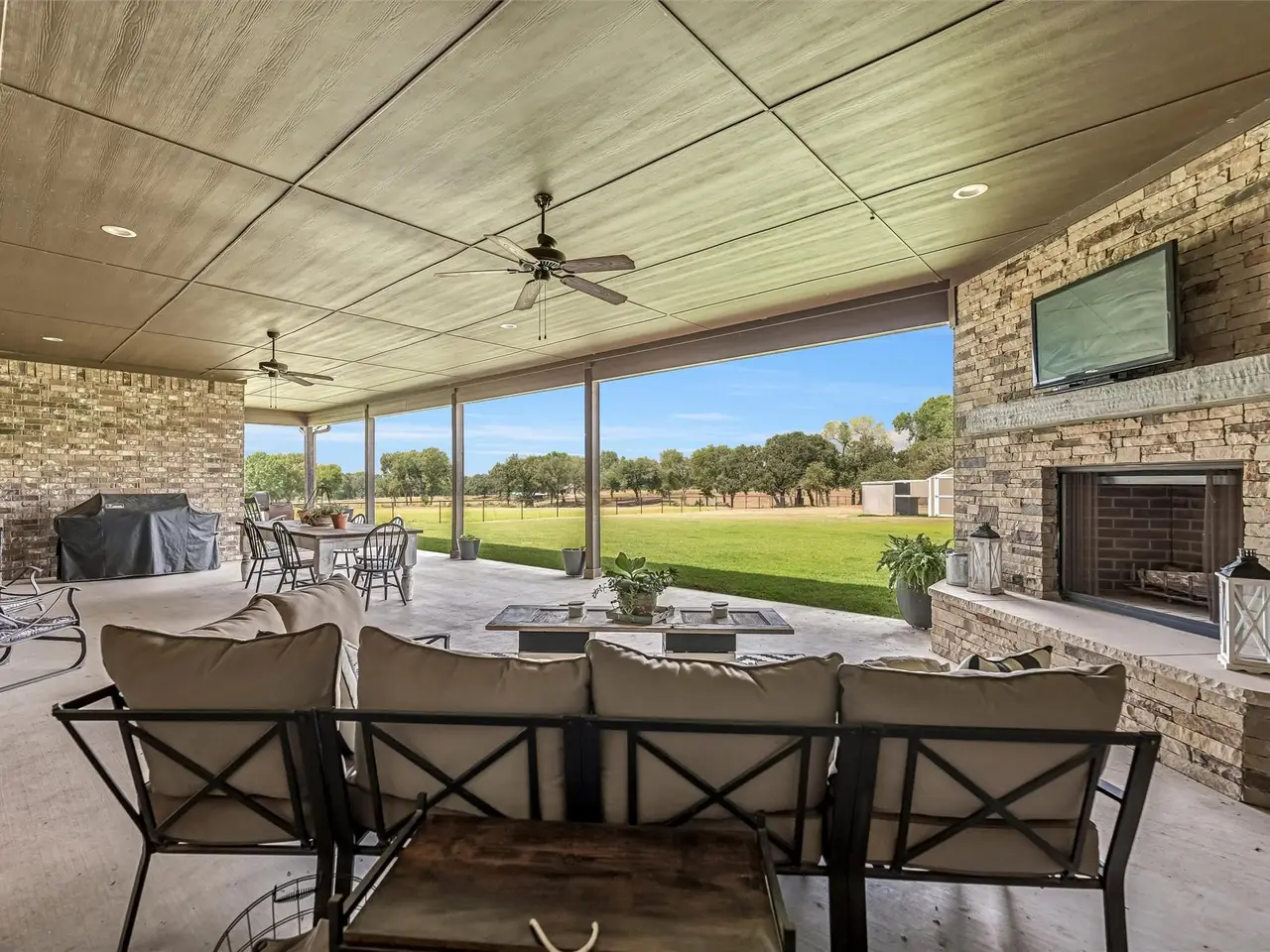 Welcome to 3736 Hot Lane, a breathtaking Western-style retreat offering space, comfort, and thoughtful design. Set behind a gated pipe and no-climb fence, this custom 4-bedroom, 3-bath home is surrounded by mature trees, landscaped grounds, and lush hay fields with excellent soil. From the moment you enter, the attention to detail and ranch-style character are evident.The spacious living room features a real wood-burning fireplace, warm finishes, and open views into the heart of the home. The kitchen showcases granite countertops, electric appliances, a microwave drawer, and a walk-in pantry. An additional dining space offers flexibility and can easily be converted to a fifth bedroom with its own closet. The custom laundry and mudroom is shelved floor to ceiling, designed to work as hard as you do. Every detail has been considered, from the safe room to the propane system for hot water, giving this home both security and efficiency.The primary suite is a true retreat with an instep ceiling, his-and-hers closets, and a spacious bathroom with dual vanities, a stand-alone shower, and a soaking tub. Secondary bedrooms are equally well-designed, including a guest bath and a private en-suite for bedroom three, both with built-in step-ups for kids.Outside, the Western lifestyle continues. A three-car garage and additional three-car covered parking provide plenty of space for trucks, trailers, or equipment. The cozy back porch, complete with outdoor fireplace, is ideal for family gatherings or long evenings under the Texas sky. A chicken coop adds charm, while the open pastures provide room to work the land, keep animals, or simply enjoy wide-open views.Located in highly sought-after Millsap ISD with quick access to Weatherford, this property combines country privacy with convenience. Whether youre raising a family, running livestock, or simply seeking room to breathe, this custom Western home is ready to welcome its next chapter.