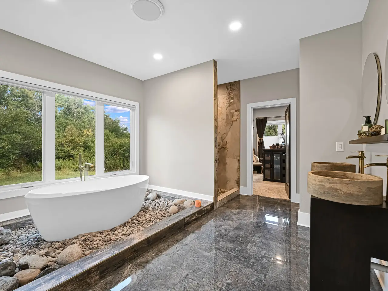 2022 custom built new construction with every detail thoughtfully planned out by the owner. Over 6000 finished square feet on almost 3 acre private wooded lot in River Hills, with country setting just a short drive to the lake, downtown Milwaukee, and all that southeast Wisconsin has to offer. 5 bedrooms and 5.5 baths in contemporary multi-level layout. Main floor has open concept dining and living space with huge kitchen featuring island, tons of cabinets, brushed nickel appliances , and granite counters. Main floor laundry and office space. 2 story primary suite with 2 walk-in closets, primary bath with tub, shower, and dual sinks, and bonus loft space. 3 more bedrooms and 2 more full baths upstairs. Amazing lower level with bonus primary suite with egress window. Kitchenette, workout room, game room, and theater room. Convenient front circular driveway, 3 car attached garage with poxy floor, concrete patio and upstairs deck. You will surely be amazed, so come check it out today!