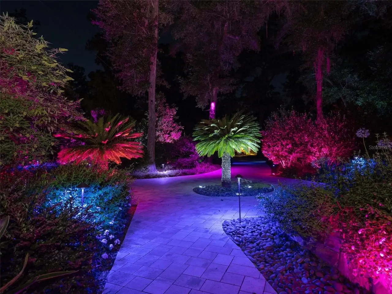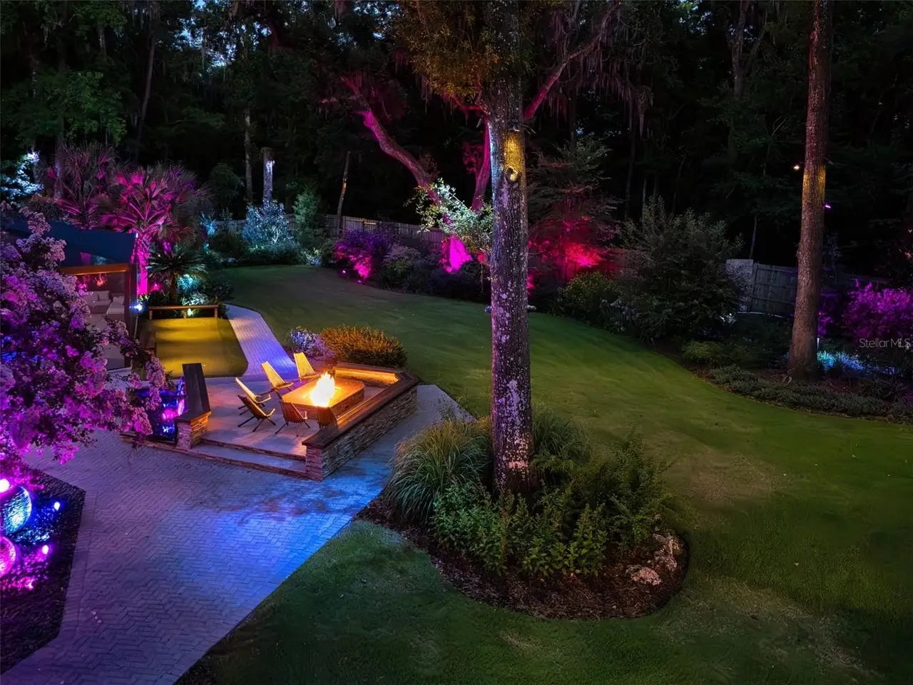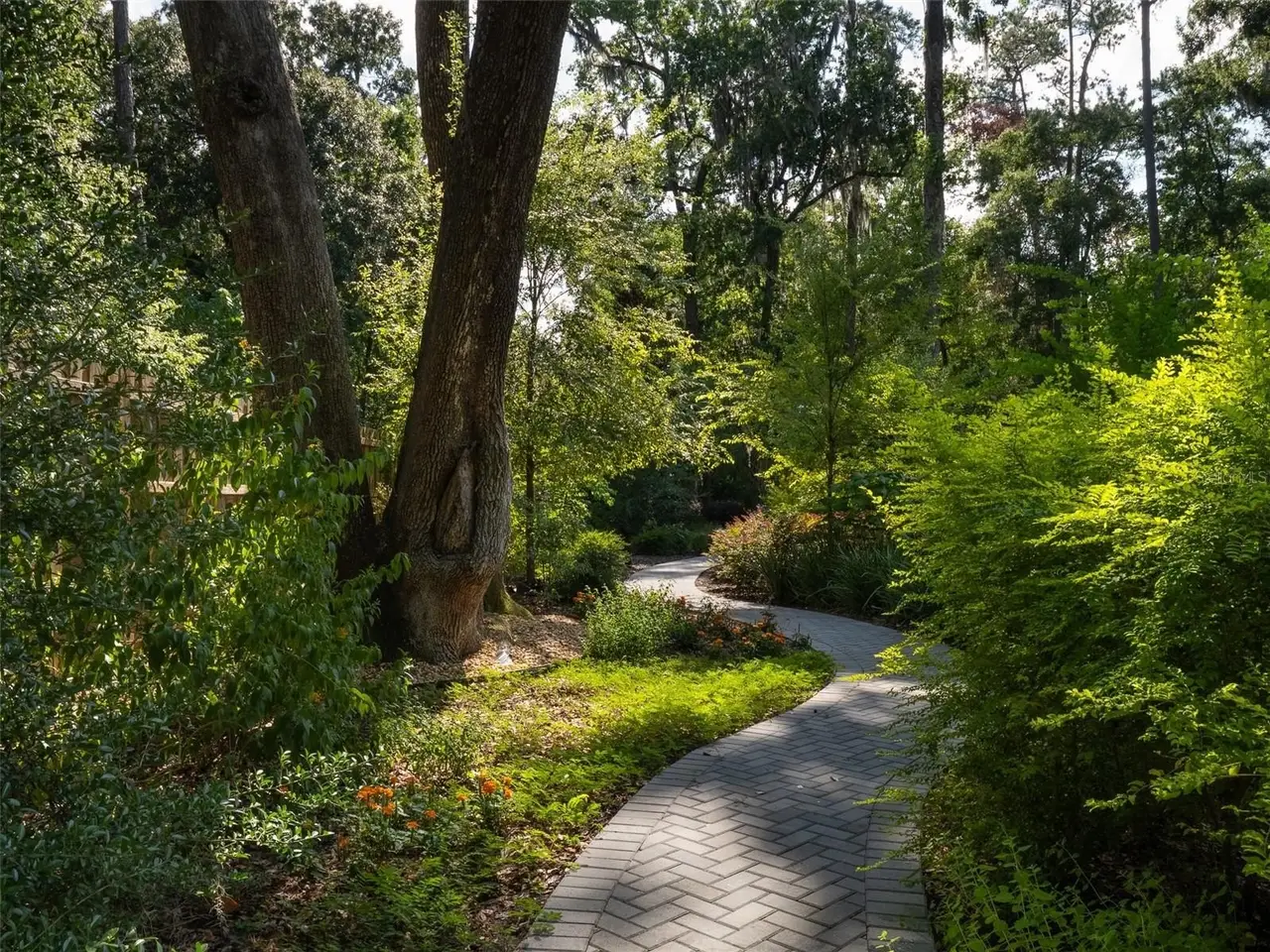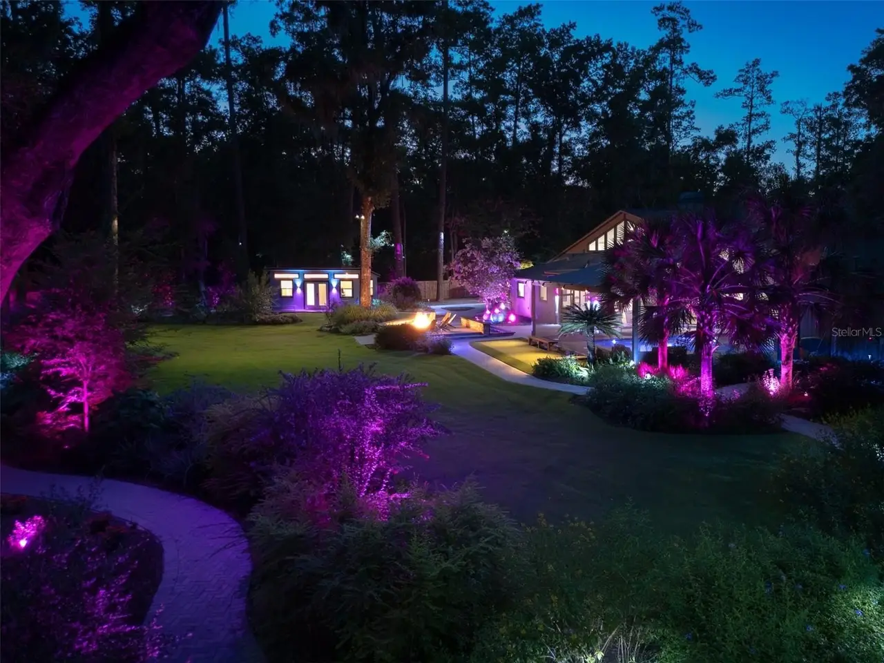 Architectural Sophistication on 1.1 Private In-Town Acres~ Privately situated in the desirable Hermitage neighborhood, this architecturally distinctive residence on 1.1 beautifully landscaped acres offers a rare blend of scale, serenity, and convenience. Recently updated, this sophisticated property balances design-forward style with everyday elegance. Enter through double doors to a sunlit interior featuring travertine floors, soaring ceilings, and floor-to-ceiling windows that seamlessly connects indoor and outdoor living. The expansive great room, anchored by a dramatic fireplace, flows effortlessly between multiple entertaining and living zones, including a custom bar area with backlit quartzite—all overlooking the newly-built (2025) resort-style pool and private backyard. The great room opens to the chef’s kitchen, as functional as it is beautiful, with dual prep stations, a waterfall edge countertop, induction cooktop, steam and convection ovens, and sleek custom cabinetry. The serene primary suite offers a spa-like retreat with a soaking tub, large walk-in shower, and custom closet. The private secondary wing includes two bedrooms, a shared bath, a flex/media room, and a separate gym. Recent enhancements include new flooring, impact-rated windows and updated lighting that elevates both ambiance and energy efficiency. Outdoors, a screened-in pool area is enhanced with water features and surrounded by a grill room with a summer kitchen, a full pool bath, multiple patios, fountains, a remarkable fire table, and a putting green. The park-like backyard private oasis is nothing short of magical - an illuminated garden path winds past a detached guest house with kitchenette and full bath, weaving through extensive landscaping, fruit trees, and a vibrant tapestry of flowering shrubs and greenery. Equipped with smart home integration and a state-of-the-art security system, this home offers intuitive control of lighting, climate, sound, and surveillance. Additional highlights include a three-car garage, spacious laundry room, and concrete block construction—all just minutes from The University of Florida, top medical centers, and Gainesville’s finest dining and shopping.