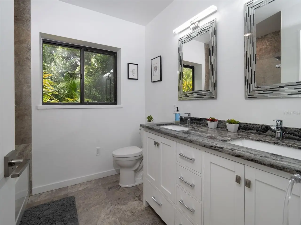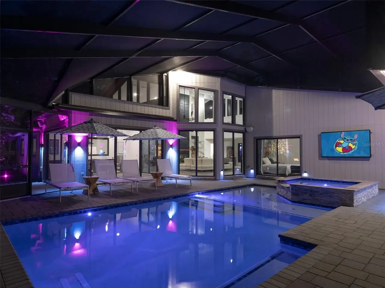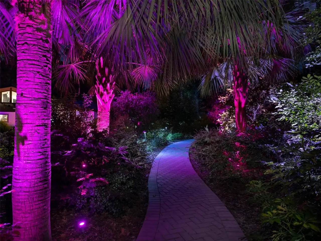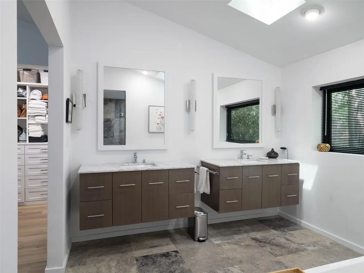 Architectural Sophistication on 1.1 Private In-Town Acres~ Privately situated in the desirable Hermitage neighborhood, this architecturally distinctive residence on 1.1 beautifully landscaped acres offers a rare blend of scale, serenity, and convenience. Recently updated, this sophisticated property balances design-forward style with everyday elegance. Enter through double doors to a sunlit interior featuring travertine floors, soaring ceilings, and floor-to-ceiling windows that seamlessly connects indoor and outdoor living. The expansive great room, anchored by a dramatic fireplace, flows effortlessly between multiple entertaining and living zones, including a custom bar area with backlit quartzite—all overlooking the newly-built (2025) resort-style pool and private backyard. The great room opens to the chef’s kitchen, as functional as it is beautiful, with dual prep stations, a waterfall edge countertop, induction cooktop, steam and convection ovens, and sleek custom cabinetry. The serene primary suite offers a spa-like retreat with a soaking tub, large walk-in shower, and custom closet. The private secondary wing includes two bedrooms, a shared bath, a flex/media room, and a separate gym. Recent enhancements include new flooring, impact-rated windows and updated lighting that elevates both ambiance and energy efficiency. Outdoors, a screened-in pool area is enhanced with water features and surrounded by a grill room with a summer kitchen, a full pool bath, multiple patios, fountains, a remarkable fire table, and a putting green. The park-like backyard private oasis is nothing short of magical - an illuminated garden path winds past a detached guest house with kitchenette and full bath, weaving through extensive landscaping, fruit trees, and a vibrant tapestry of flowering shrubs and greenery. Equipped with smart home integration and a state-of-the-art security system, this home offers intuitive control of lighting, climate, sound, and surveillance. Additional highlights include a three-car garage, spacious laundry room, and concrete block construction—all just minutes from The University of Florida, top medical centers, and Gainesville’s finest dining and shopping.