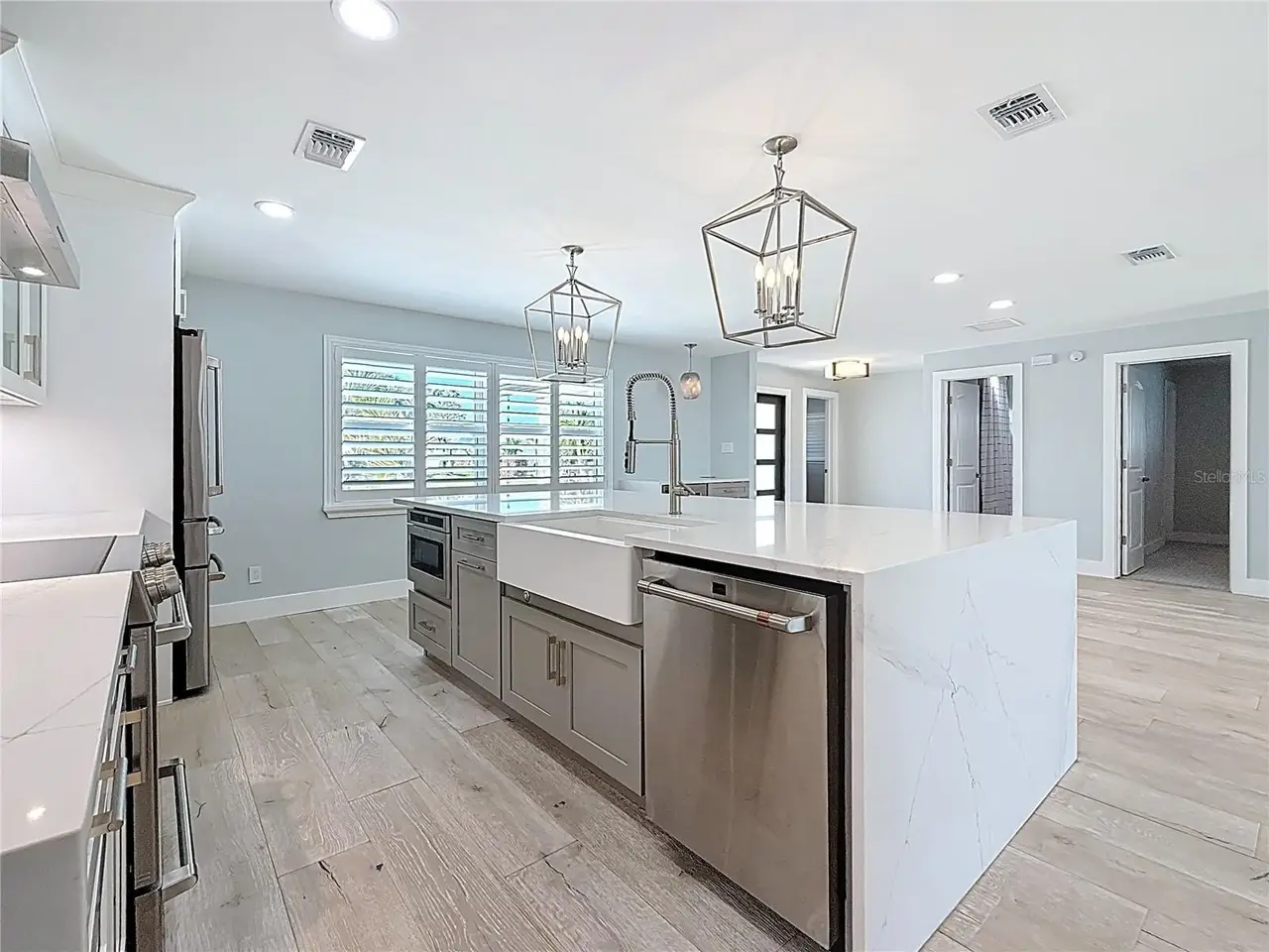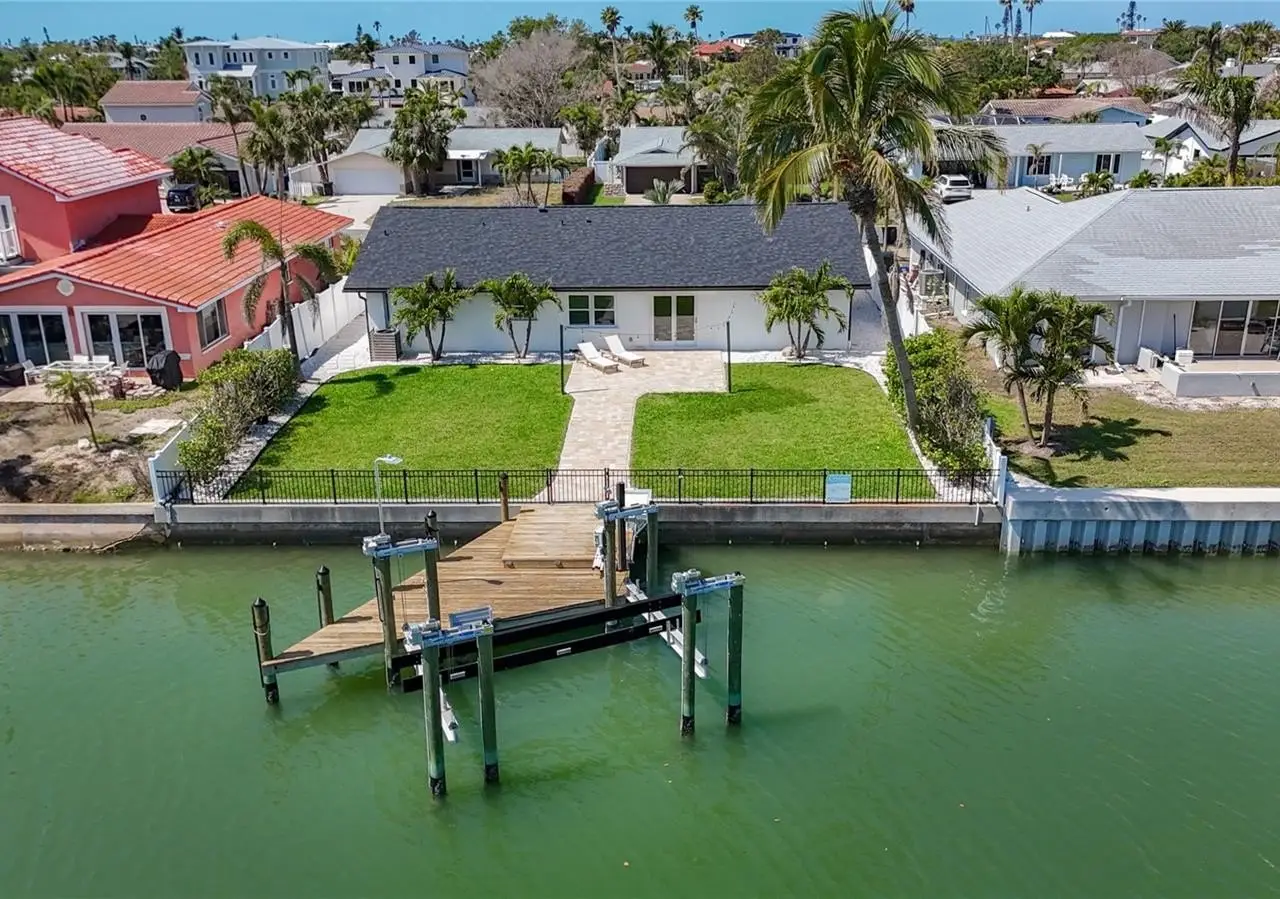 Welcome to Vina Del Mar!  A four-bedroom, two-bathroom waterfront home.  Upon entering the home, you will be greeted by a bright, airy open-plan living area, complete with a picture-perfect view of the waterfront backyard. The new gourmet kitchen is a culinary dream, featuring high-end all-new (2023) "Cafe" appliances, quartz countertops and generous storage for all your dining needs.  A spacious and comfortable living room completes the space, perfect for family gatherings and entertaining friends.   Hurricane rated windows and doors throughout the house. A new hurricane rated garage door was installed in 2023. The master bedroom is tucked away, complete with a walk-in closet and beautiful bathroom equipped with a backlit LED mirror.  The 3 additional bedrooms are perfect for family members, guests, or home office space. The secondary bathroom has dual sinks, a bathtub, and a doorway to one of the bedrooms.  A/C 2023, water heater 2022 with an additional instant hot water heater in the kitchen.  The backyard offers ample space for outdoor furniture, or a future outdoor oasis to kick back and soak up the sun while enjoying the views of the water.  Newly installed private dock with a 30,000 lb. custom boat lift makes it the perfect haven for boating enthusiasts and water lovers alike!  No bridges to the Gulf.  Walk, bike or golf cart to charming shops, restaurants, and the award-winning sunsets of Historic Pass-A-Grille! This golf cart-friendly neighborhood makes it easy to enjoy the Vina Del Mar Park that includes: small and large dog parks, tennis, pickleball, basketball, fenced-in playgrounds, fitness areas, and a covered picnic shelter.   Easy interstate access to St. Petersburg's vibrant downtown or to catch a Rays game. Memories made at the beach house last a lifetime!
