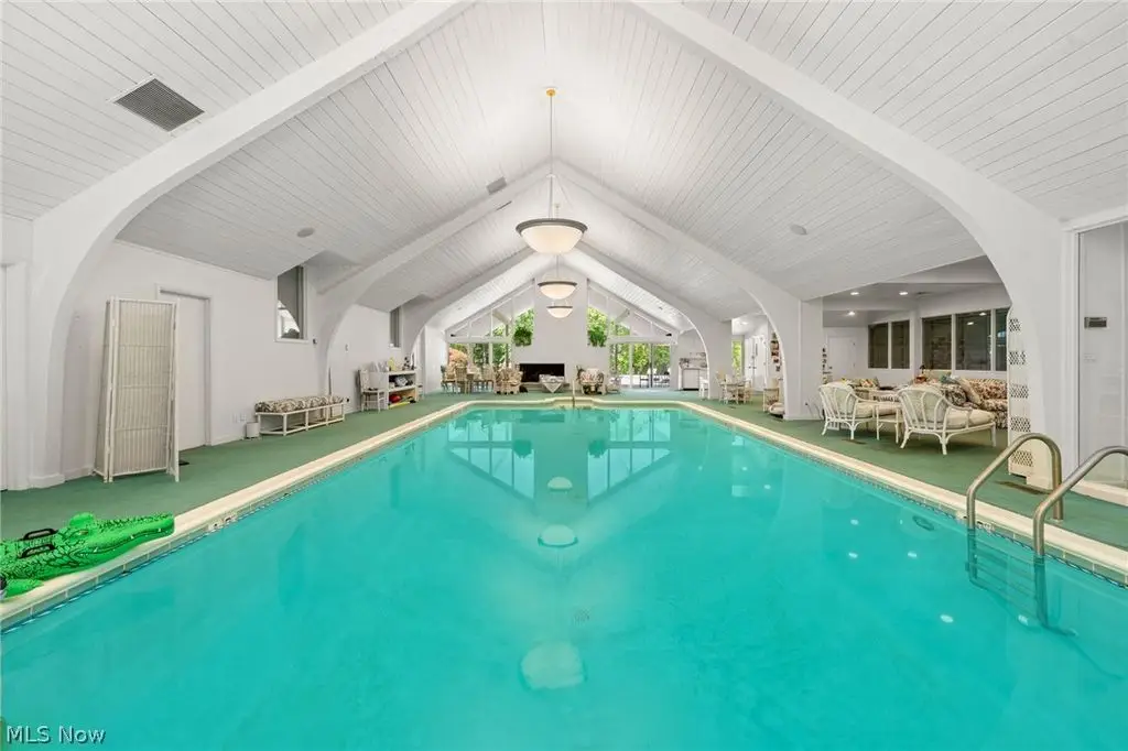 Nestled on a private cul de sac lot offering total privacy and serenity, this one-of-a-kind masterpiece was designed by the current owner and is called "Playwood." This home exemplifies the definition of grandeur and elegance and the exquisite architectural detailing found within has traditional Georgian undertones. A sweeping driveway lined with trees welcomes you, leading to an expansive circular courtyard, and impressive canopied entry. The home, with its meticulously crafted stucco facade, exudes timeless sophistication, featuring arched floor to ceiling windows, that hint at the luxury within. The grand marble entry foyer features a barrel vaulted ceiling and opens into the magnificent dining room and spectacular formal living room! These rooms are designed for entertaining, feature the most intricate plaster detailing, rich hardwood floors, and windows everywhere. The gourmet kitchen is a chef's dream and the adjoining family room provides a cozy area for relaxation and casual gathering. The owner's wing, a private oasis, features an amazing bedroom area, private library, exercise room, two walk-in dressing rooms, and a lavish en-suite bathroom. The other bedroom wing is completely separate with 4 generous suites all with private bathrooms. There is even an attached apartment with a separate entrance. Adding to all of this magnificence is the indoor pool complex and indoor tennis court (can be a pickleball court and indoor basketball court). Outside, the home features an expansive deck area which is perfect for summer entertainment. There is an outdoor kitchen, a covered outdoor pavilion, and views of the breathtaking 3+ acres! Other amenities include an elevator, back-up generator, 4+ car attached garage, heated drive and finished lower level with additional bedroom suites. This estate is more than a home, it's a sanctuary of luxury and tranquility, embodying a timeless aesthetic, designed for those who appreciate the finest of everything!