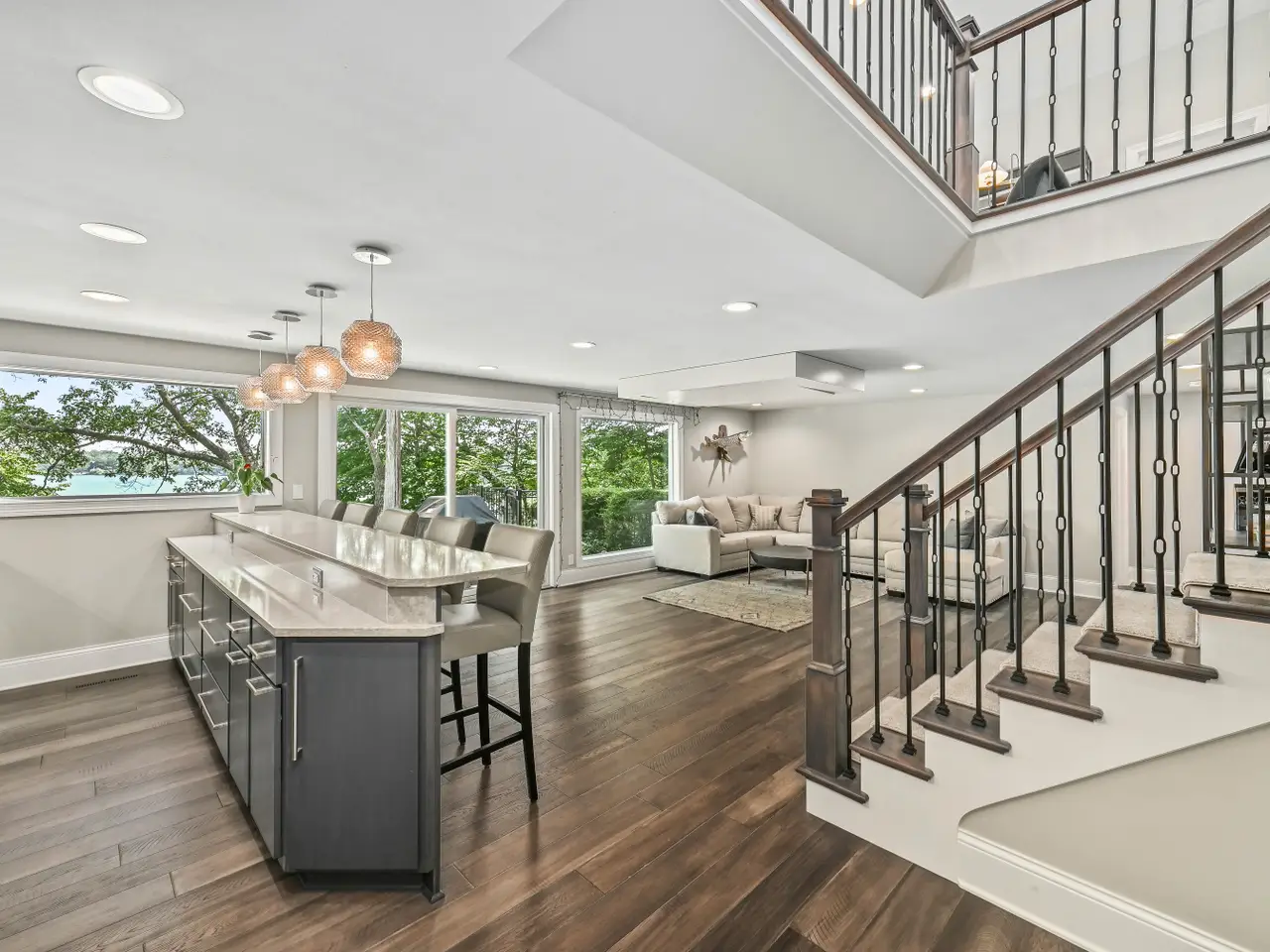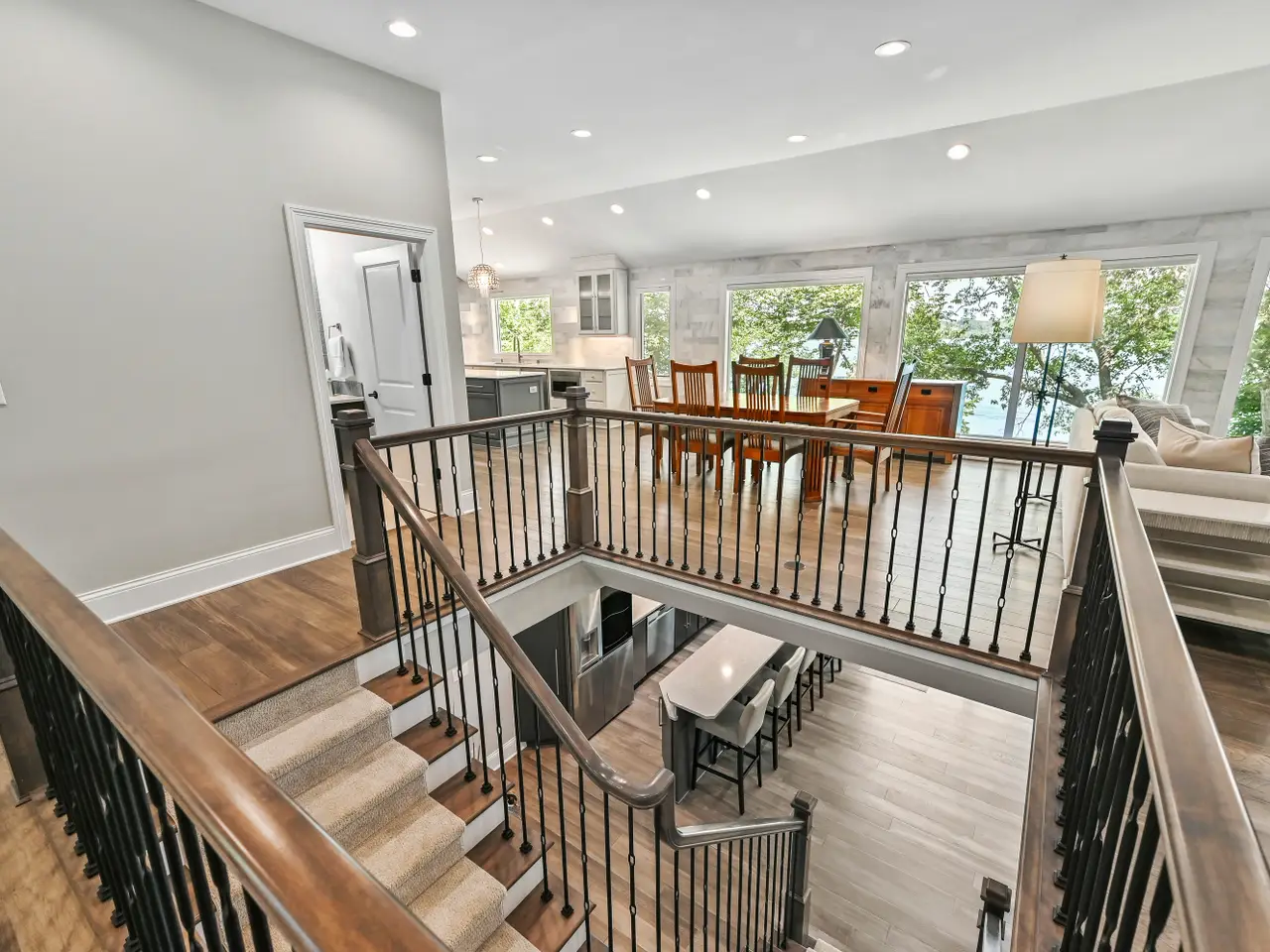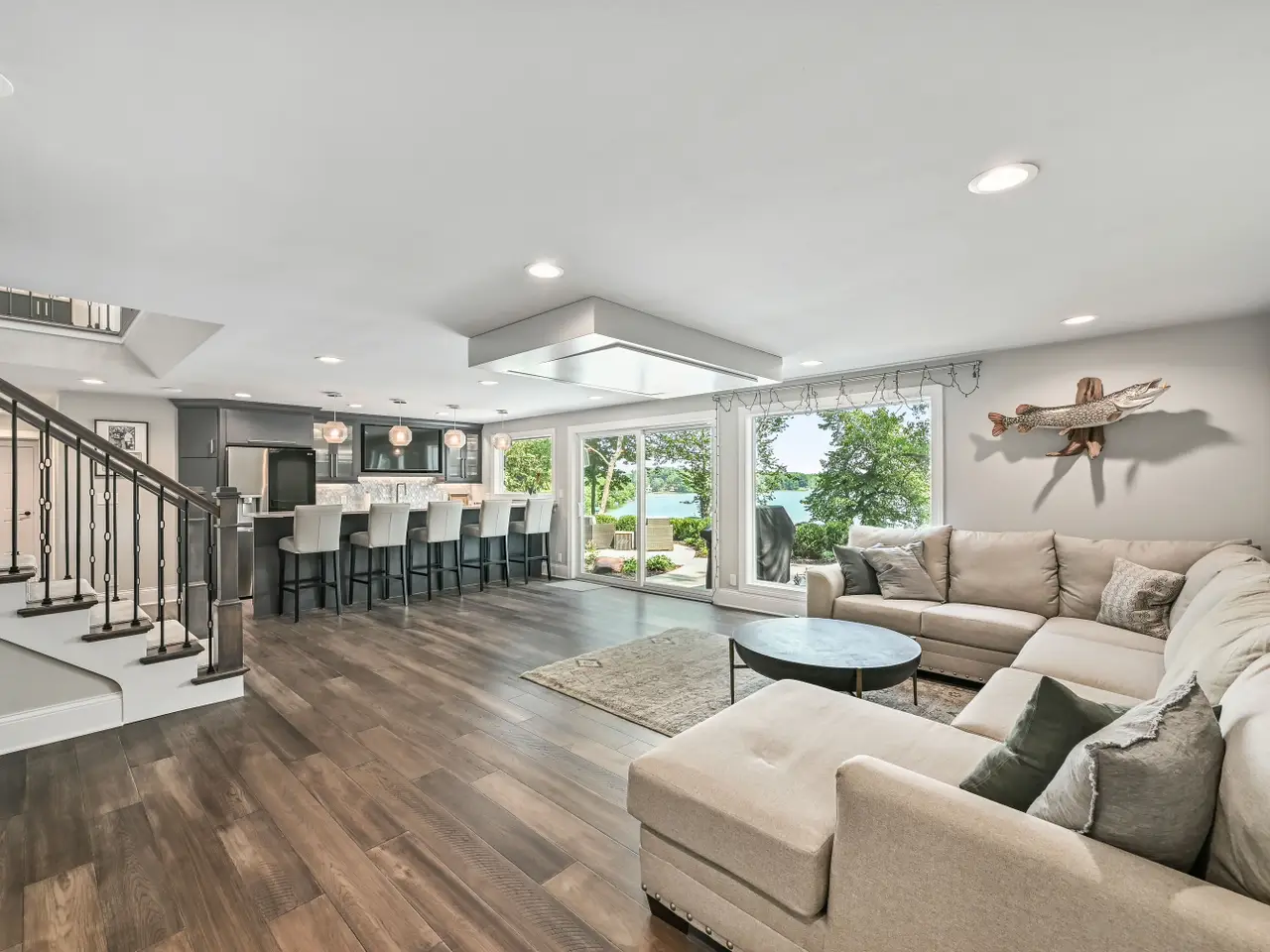 Fully renovated in 2022, this luxurious four bedroom, four and a half bathroom, lakefront residence offers over 3,400 sq ft of beautiful living space on coveted Upper Nashotah Lake. Set on a private .84-acre lot with 250' of pristine frontage, the home showcases elevated design, a bright open floor plan, and sweeping lake views throughout. The chef's kitchen features Fisher and Paykel appliances, quartz counters, and a spacious island. The main level includes a serene primary suite and guest bedroom, while the walkout lower level offers a full bar, second entertaining space, and two additional lake-facing bedrooms. Enjoy the fenced yard, stamped concrete patio, luxury gas fire pit, and permanent Summerset dock and lift for effortless lake living.