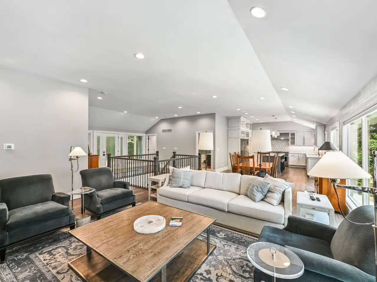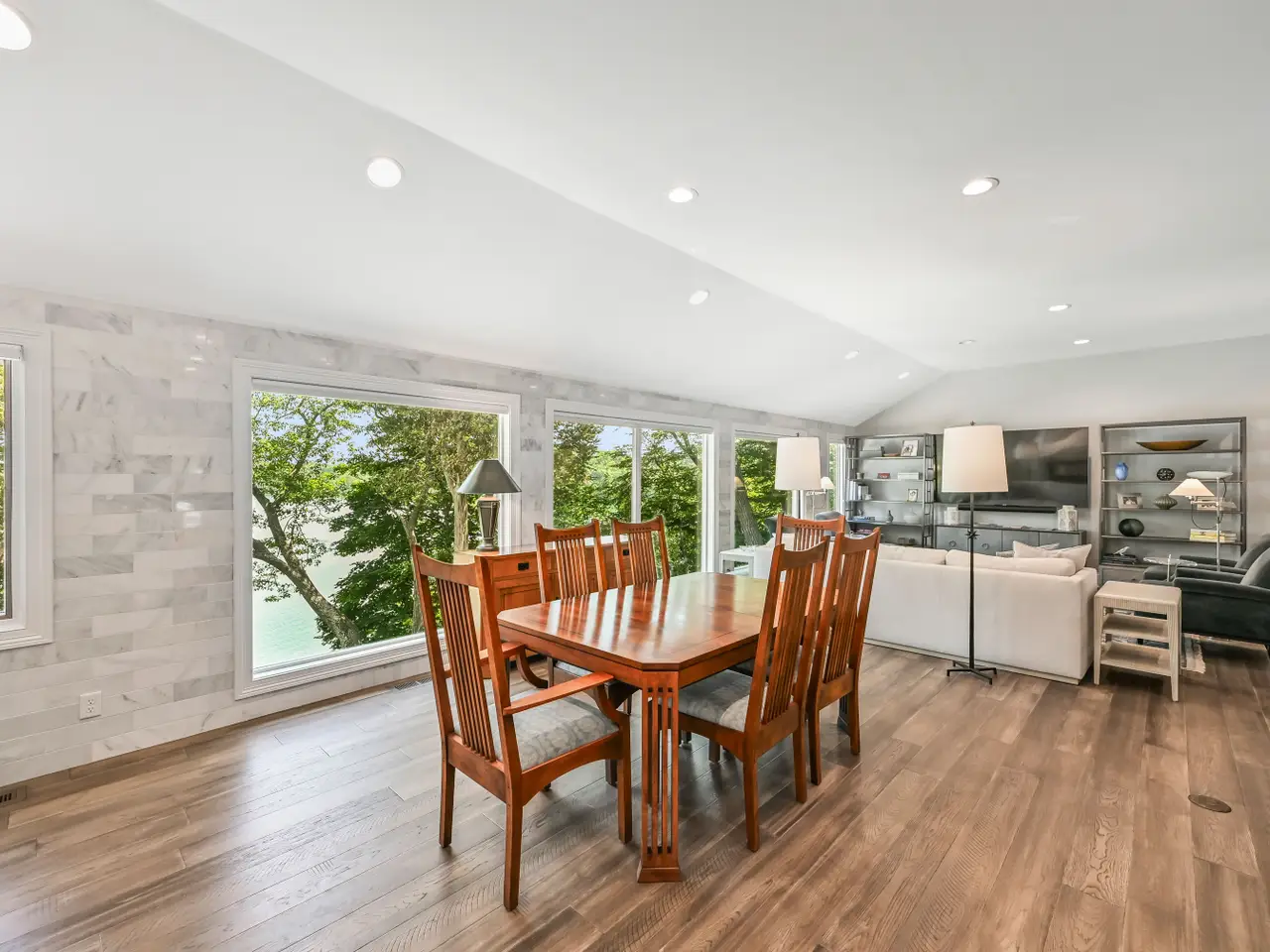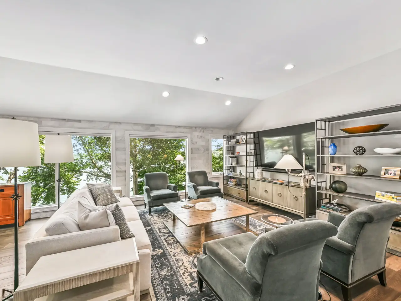 Fully renovated in 2022, this luxurious four bedroom, four and a half bathroom, lakefront residence offers over 3,400 sq ft of beautiful living space on coveted Upper Nashotah Lake. Set on a private .84-acre lot with 250' of pristine frontage, the home showcases elevated design, a bright open floor plan, and sweeping lake views throughout. The chef's kitchen features Fisher and Paykel appliances, quartz counters, and a spacious island. The main level includes a serene primary suite and guest bedroom, while the walkout lower level offers a full bar, second entertaining space, and two additional lake-facing bedrooms. Enjoy the fenced yard, stamped concrete patio, luxury gas fire pit, and permanent Summerset dock and lift for effortless lake living.