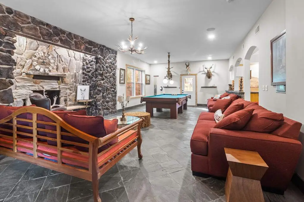 Welcome to one of Spring Grove's most captivating equestrian estates, where luxury, functionality, and natural beauty come together on over 9 acres of wooded and pasture grounds. Designed for those who dream of both refined living and wide-open space, this property is truly a destination. Your first stop is a versatile outbuilding thoughtfully designed with box stalls for small animals, generous storage, a large garage which can hold up to 14 vehicles and a remarkable event space. Complete with a full kitchen, two half baths, and expansive room for gatherings, it's the perfect setting for hosting celebrations, weddings, or private retreats. Opposite that are 2 pastures with their own barns for additional animals. The working farm currently has horses, goats, sheep, alpacas, ducks and chickens and a full time caretaker. The outdoor areas also consist of full size Italian bocce court, volleyball court and large children's playground. The entire property has European style lamp posts throughout which illuminates the entire property from front to back. The main residence, an impressive 9,000 square feet, offers an exceptional lifestyle. With 5 spacious bedrooms and 5 bathrooms, the home is built for comfort and entertainment. The home is built off a ravine which allows it beautiful views for miles of the valley. A full size theatre room invites movie nights at the highest level, while a dramatic wet bar with a custom live-edge wood top sets the stage for evenings with friends. A large party room all decked out in cedar wood can hold parties for up to 150 guests. Hidden behind a speakeasy-style entry lies an impressive wine cellar and tasting room - a true showstopper that exudes sophistication and charm. All custom built wine racks, a 20 foot live edge dining table, and custom built designed ceilings give it that true cave feeling for up to 20 of your friends. House was recently remodeled from top to bottom, all HVAC are new. Roofs have all been redone recently. State of the art whole house water filtration and softeners have recently been installed. Master bath has been recently remodeled with all Italian marble and views for miles from the bedroom. Entire property has been wired for sound, which includes both indoor and outdoor speakers to listen to your favorite music. Owner's private office has been completely restored by wood artisans to bring back the original feel of the wood from many years ago. Every detail is elevated by the backdrop of nature. Backing directly to Chain O'Lakes State Park, the property's entire back line touches the 7000 acre state park. Which offers hunting, fishing, and hiking. This property is truly one a kind offering unmatched privacy and panoramic views that stretch for miles. Whether enjoying the wooded trails, riding your horses across the pastures, or simply watching the sunset from your private retreat, this estate offers a lifestyle that is both extraordinary and rare. Call today for a private showing of this spectacular estate!
