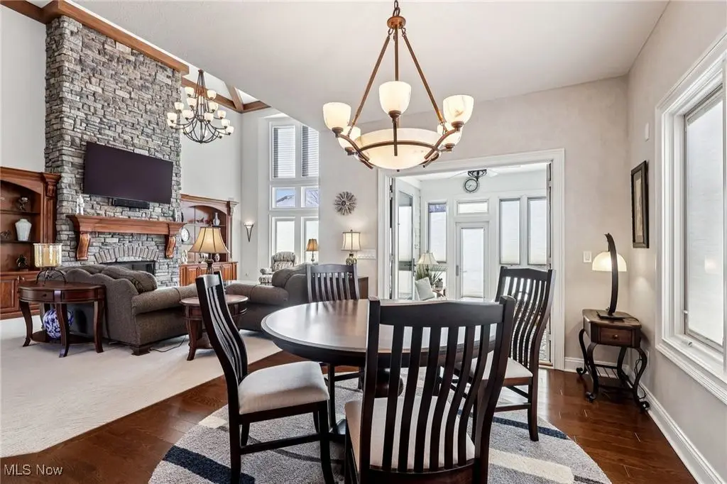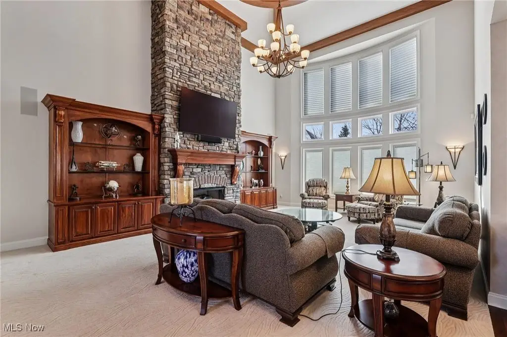 This exceptional one-owner residence was custom designed and masterfully built by Perrino Custom Homes, offering a perfect blend of elegance, comfort, and functionality. The open floor plan is ideal for both entertaining and everyday living.The spectacular two-story great room features an impressive wall of windows, a dramatic fireplace, stunning beamed ceiling, and rich hardwood floors. The space flows seamlessly into the gourmet eat-in kitchen - a chef's dream with a large center island, granite countertops, and premium stainless-steel appliances. Just off the kitchen, enjoy a beautiful enclosed three-season room and an adjoining stone patio, perfect for outdoor dining and grilling.The luxurious first-floor owner's suite includes a spacious walk-in closet and a spa-like shower with a heated floor and designer finishes. A private den/library with a vaulted tray ceiling and custom built-ins offers the perfect work-from-home retreat.Upstairs, a generous loft overlooks the great room and provides additional living space, while two large bedrooms boast large closets and additional walk-in closet and share a beautifully appointed full bath.The lower level offers ample storage and the potential for future recreation or fitness space. Additional highlights include a first-floor laundry/mudroom, hardwood flooring throughout most of the main level, and professionally selected decor throughout.Set on a private, beautifully landscaped lot ideal for gardening and summer entertaining, this home exemplifies quality and craftsmanship. Sterling Lakes is a sought-after gated community featuring lush green spaces, sidewalks, and a serene setting.