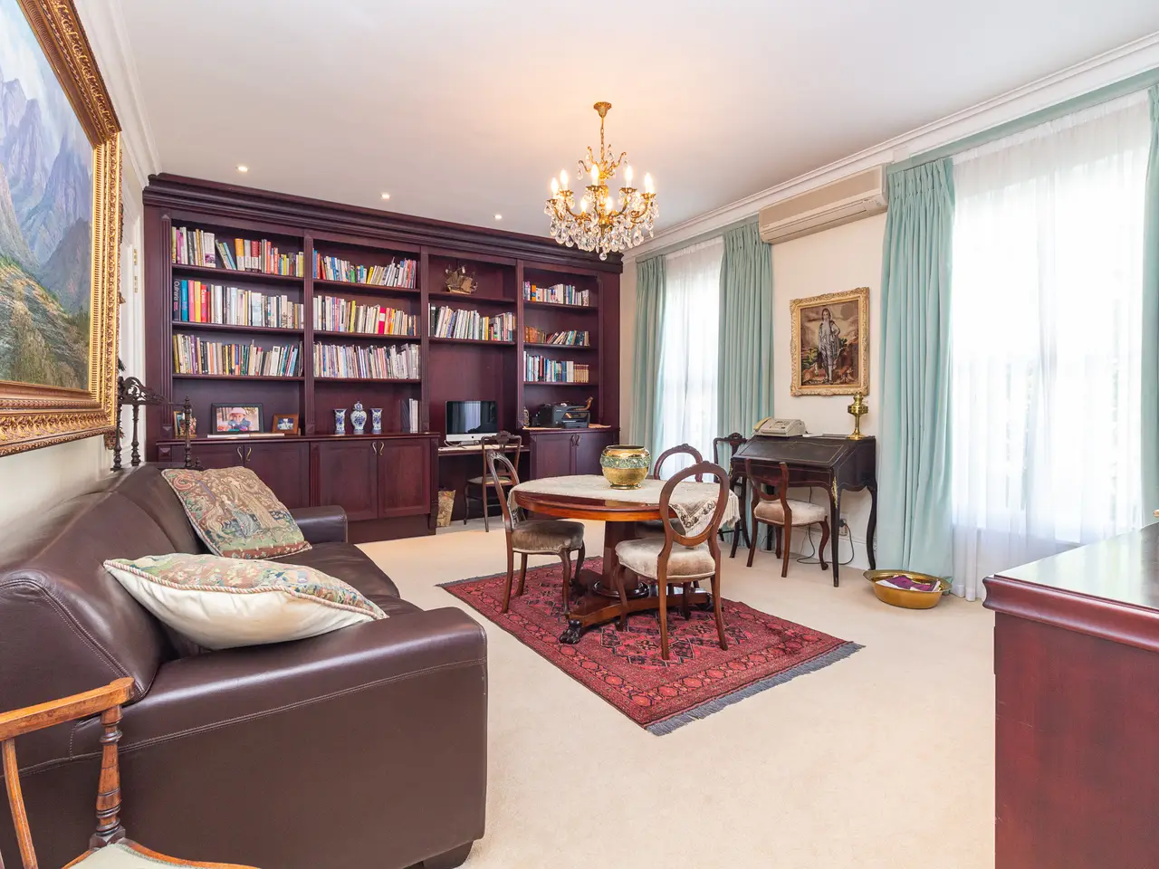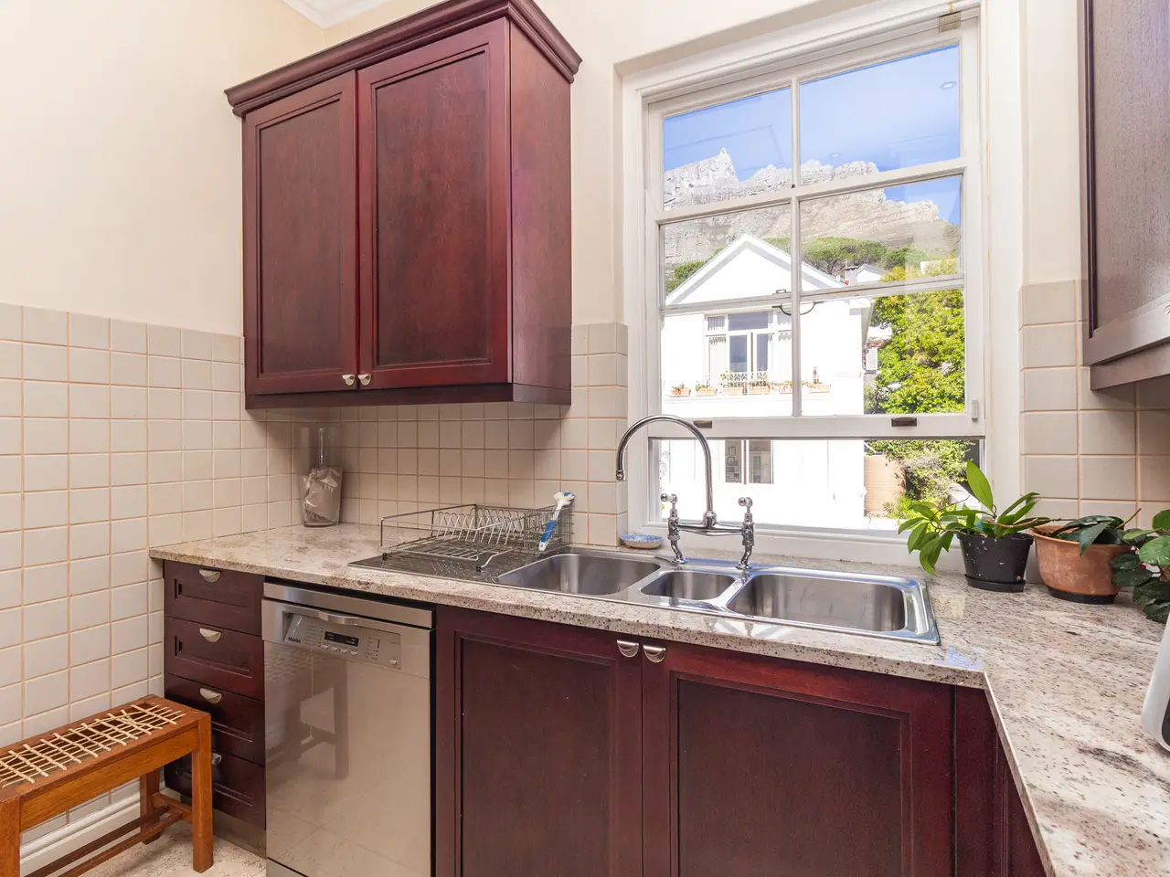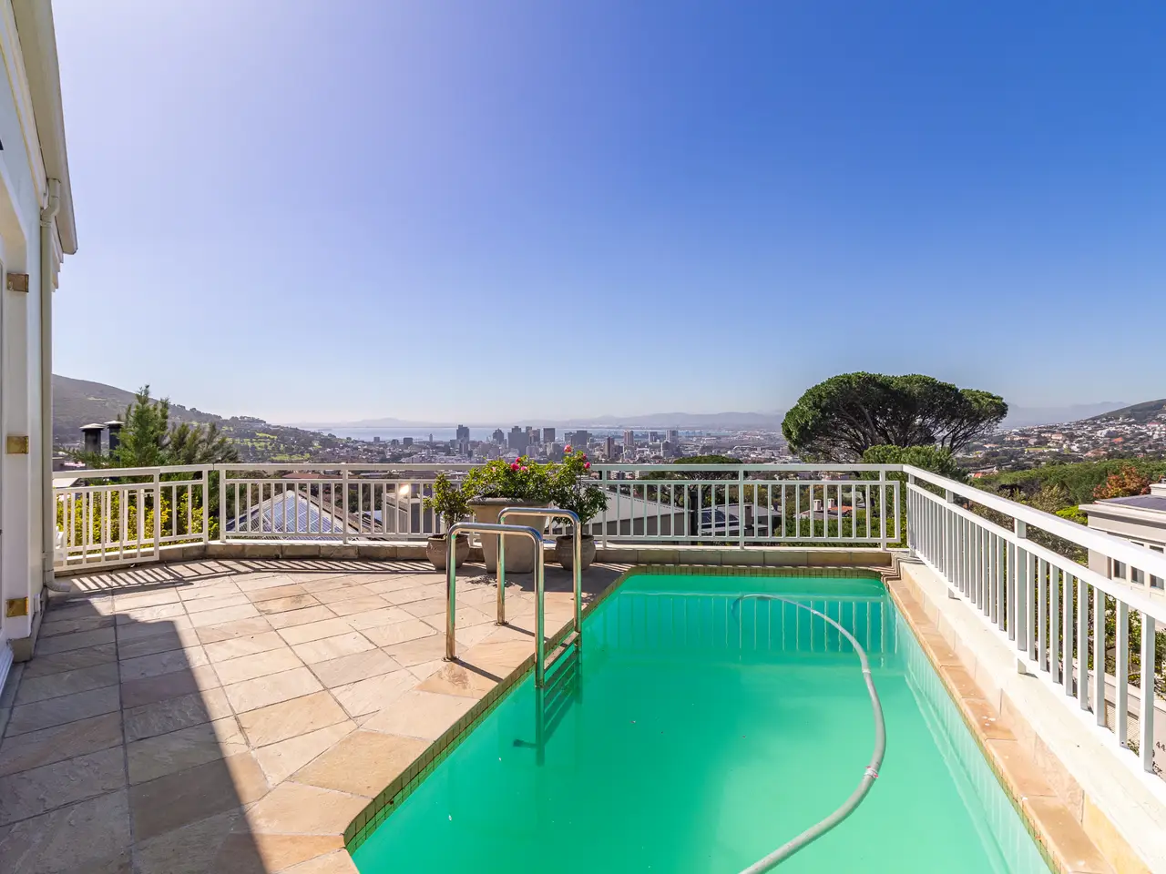 Unique opportunity to acquire this spectacular Georgian style home, which enjoys the security and luxury of situation in exclusive St John's Estate. North east facing, Grand home with high ceilings & solid oak flooring throughout. African Mohogany, Rosewood, Solid Oak & marble fittings. Upper level, spacious open plan living & dining area with Godin marble fireplace. Full length sliding doors open to balcony & swimming pool with panoramic views. Kitchen & Scullery with high quality fittings, African Mohogany counter, ample cupboard space. Luxury main bedroom & full ensuite, also open to balcony with panoramic views. All four spacious bedrooms have oak built in cupboards and en-suites with marble and travertine. Ground floor, three bedrooms, all en-suite. Study room with built in African mohogany & rose wood fittings. Living area with Godin fireplace opens to private, low maintenance garden. Double, automatic garage (108sqm). Laundry area. Flatlet. The total double storey built coverage is approximately 612sqm. 24 hour security and CCTV cameras. Borehole water. Pet friendly. St John's Estate is ideally situated in cosmopolitan, sought after Higgovale, City Bowl, close to Kloof Street restaurants, shops, services & Schools. Next to Kloof Nek Road for quick access to Table Mountain, Atlantic Seaboard, City Centre & Main Highways.