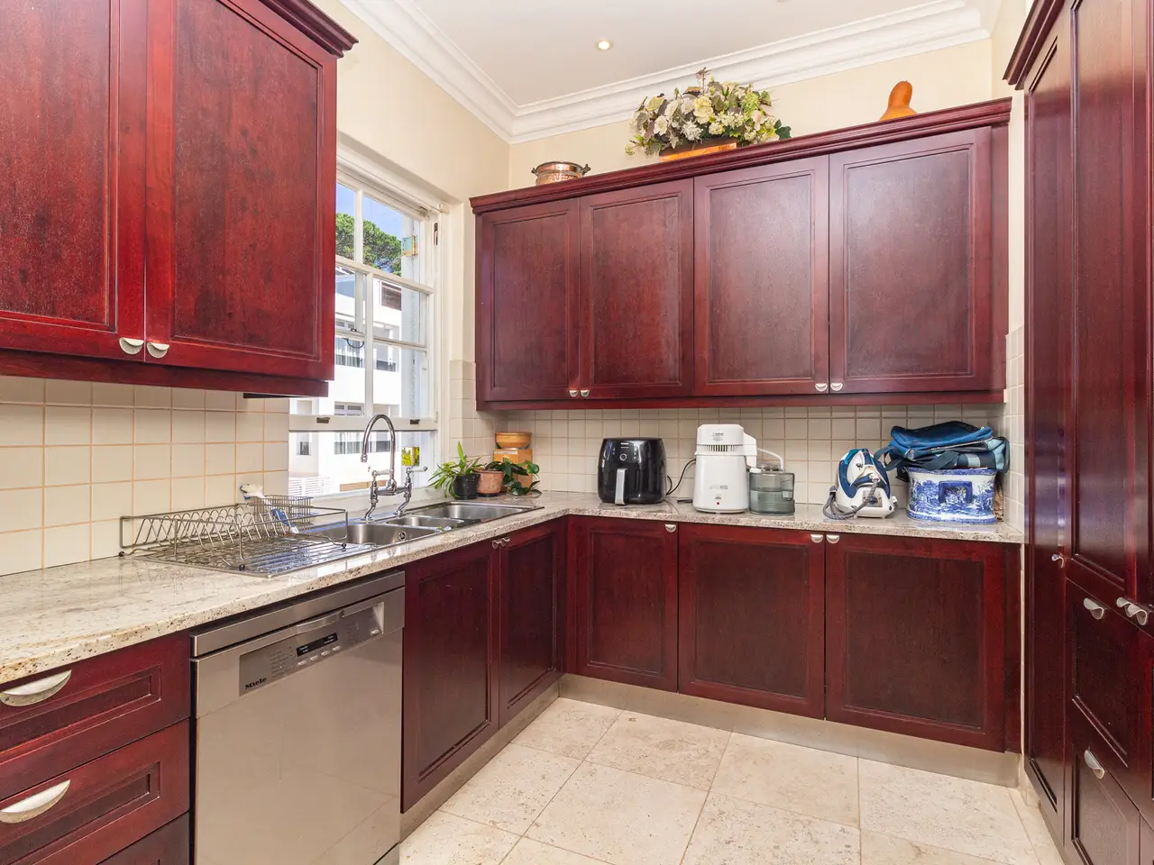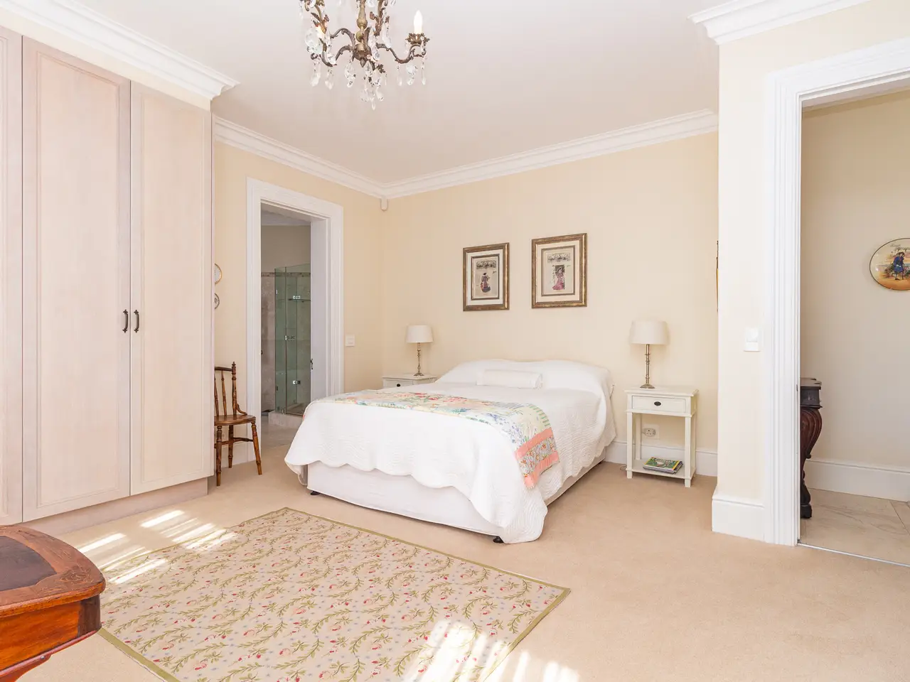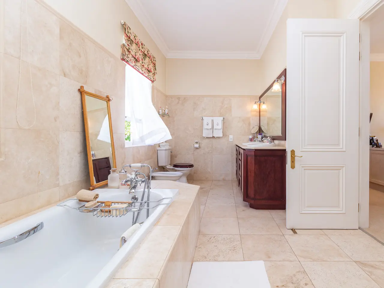 Unique opportunity to acquire this spectacular Georgian style home, which enjoys the security and luxury of situation in exclusive St John's Estate. North east facing, Grand home with high ceilings & solid oak flooring throughout. African Mohogany, Rosewood, Solid Oak & marble fittings. Upper level, spacious open plan living & dining area with Godin marble fireplace. Full length sliding doors open to balcony & swimming pool with panoramic views. Kitchen & Scullery with high quality fittings, African Mohogany counter, ample cupboard space. Luxury main bedroom & full ensuite, also open to balcony with panoramic views. All four spacious bedrooms have oak built in cupboards and en-suites with marble and travertine. Ground floor, three bedrooms, all en-suite. Study room with built in African mohogany & rose wood fittings. Living area with Godin fireplace opens to private, low maintenance garden. Double, automatic garage (108sqm). Laundry area. Flatlet. The total double storey built coverage is approximately 612sqm. 24 hour security and CCTV cameras. Borehole water. Pet friendly. St John's Estate is ideally situated in cosmopolitan, sought after Higgovale, City Bowl, close to Kloof Street restaurants, shops, services & Schools. Next to Kloof Nek Road for quick access to Table Mountain, Atlantic Seaboard, City Centre & Main Highways.