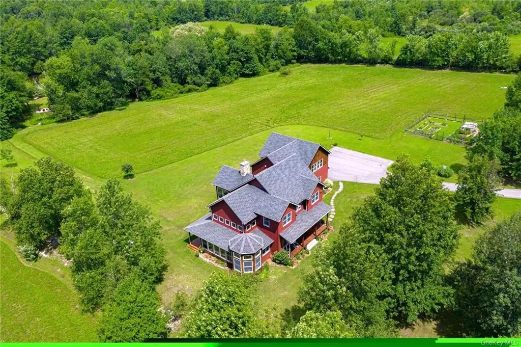 Farm to table paradise, 90 minutes from NYC. Custom built NYSERDA, ENERGY STAR, geothermal home with beautiful rural views and private lake. Three porches and decks, hardscape patio at the lake. Organic vegetable gardens and outbuildings with space for many possible uses. Spacious master suite. Guest wing includes two bedrooms that share a full bath, third bedroom with full en suite bath. Main floor offers chef's kitchen-dining-great room, sunrooms, library, music room, two powder rooms and a shower. High ceilings on all levels and 78 windows. Wood, stone and tile flooring and poured basement walls.Included in the acreage is a building site, perfect for guest house or income property. Nearby are golf courses, horseback riding and a recreational park. Many easy day trips include Storm King, DIA: Beacon, Bethel Woods Center for the Arts, Mohonk Mountain House, Appalachian Trail, West Point, wineries, breweries, distilleries, orchards, farm stands and a 24-hour honor system farm store stocked with local goods.