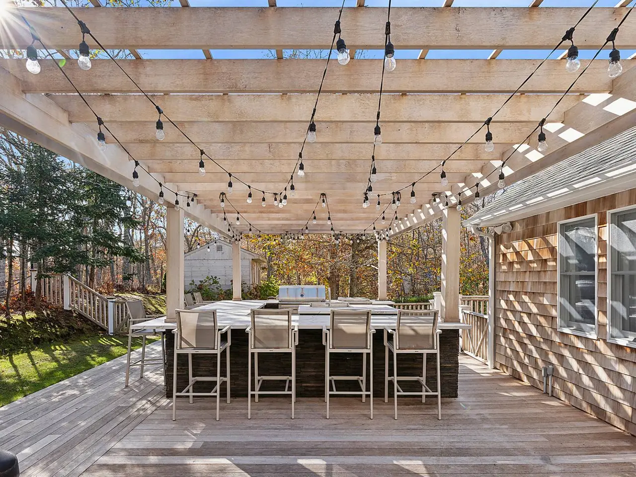 Nestled on an acre in Montauk's Hither Woods, adjacent to over a thousand acres of pristine reserve, this extraordinary home is a private, amenity-filled oasis perfect for both entertaining and luxurious relaxation. The meticulously landscaped property boasts a 4-bedroom (plus bonus room) home, a heated gunite pool, a spectacular outdoor kitchen, and over 3,500 square feet of decks and terraces. Just three blocks from the ocean beach, it's rare to find a turnkey home with such an array of amenities so close to both the ocean and preserved land in Montauk. Spanning over 4,600 square feet across three levels, the home includes an incredible finished walkout lower level designed for entertainment. This space features a professional bar, game room with a full entertainment system, arcade, billiards, a gym, an office, and more-all opening out to the pool area, creating a seamless indoor/outdoor flow. On the first floor, expansive living spaces include a music room, dedicated movie theater, multiple living rooms, a formal dining room, a cozy den, and a gourmet kitchen equipped with state-of-the-art appliances from Wolf and Sub-Zero, plus a spacious breakfast area. This level also hosts a gorgeous primary en-suite with luxurious bath. The second floor houses 3 bedroom suites. The home showcases marble tile, hardwood floors in a herringbone pattern, expert millwork, and masonry throughout---all arranged in perfect harmony. The entire home, along with the exterior lounging spaces and pool, features a Sonos Audio System. Every inch carefully designed for comfort, convenience, and luxury. The outdoor areas are crafted for social gatherings and thoughtfully integrated with the interiors. A 20' x 40' pool is surrounded by an expansive bluestone terrace flanked by a gorgeous stone wall. A custom pergola adorned with wisteria shelters the stunning professional outdoor kitchen, which features Cambria countertops and stainless steel Lynx appliances. A koi pond with a waterfall lies farther beyond. Extensive landscape lighting adds to the overall ambiance. Endless terraces and decks provide ample seating and gathering spaces for parties of up to 200 guests. Privacy is ensured with a full privet hedge and electronic gate. Additional amenities include a generator, a brand-new septic system (larger than needed anticipating future expansion) four heating/AC zones, and new state-of-the-art boilers. There is also a permit in place to expand the home, including adding a garage, office, and expanding one of the second-floor bedrooms to become another primary suite with its own bathroom. Expansion plans in place. This turnkey oasis is just moments from the ocean in Hither Hills, offering unparalleled luxury in Montauk. Listing ID: 917717