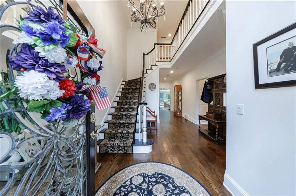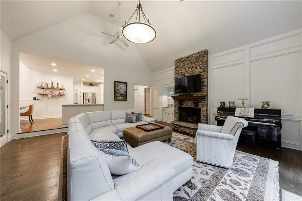 Welcome to this elegant hard-coat stucco Estate home, ideally situated on a serene and quiet cul-de-sac in the prestigious COUNTRY CLUB OF THE SOUTH. A charming exterior with stone accents and a classic beveled glass front door set the tone for the warmth and sophistication that awaits inside. Step into the grand two-story foyer, where natural light and timeless elegance greet you. The formal dining room, adorned with a bay window, provides the perfect setting for both intimate dinners and large-scale entertaining. The spacious Great Room is the heart of the home, featuring vaulted ceilings, a wall of windows, a fireplace with floor to ceiling stack stone, and French doors leading to the main-level porch. Designed for everyday living and seamless entertaining, the open-concept kitchen flows into the breakfast area and Great Room, with easy access to the screened porch-an ideal retreat for morning coffee or evening relaxation. The main-level primary suite is a true sanctuary, complete with a cozy sitting area, two-sided fireplace, and private access to the porch. Upstairs, you'll find three generously sized bedrooms: one with an en-suite bath and two sharing a well-appointed adjoining bath, all with abundant closet space. The fully finished terrace level is an entertainer's dream, offering a second kitchen, large family room, office, yoga/exercise room, guest bedroom, and full bath. Step outside to the covered terrace-level porch, featuring a custom stay-dry gutter system-perfect for enjoying the outdoors in any weather. This move-in ready home offers luxury, comfort, and lifestyle-all within one of Atlanta's most sought-after gated communities. Residents enjoy resort-style living with 24/7 manned security, a Jack Nicklaus-designed golf course, clubhouse, swim and tennis facilities, and a welcoming neighborhood atmosphere.