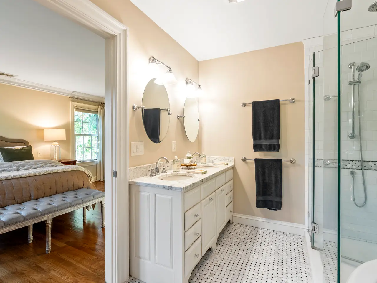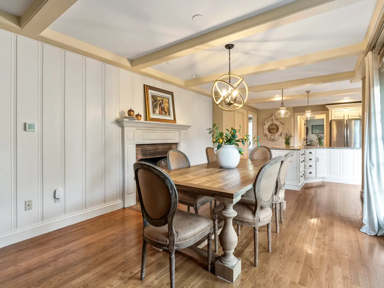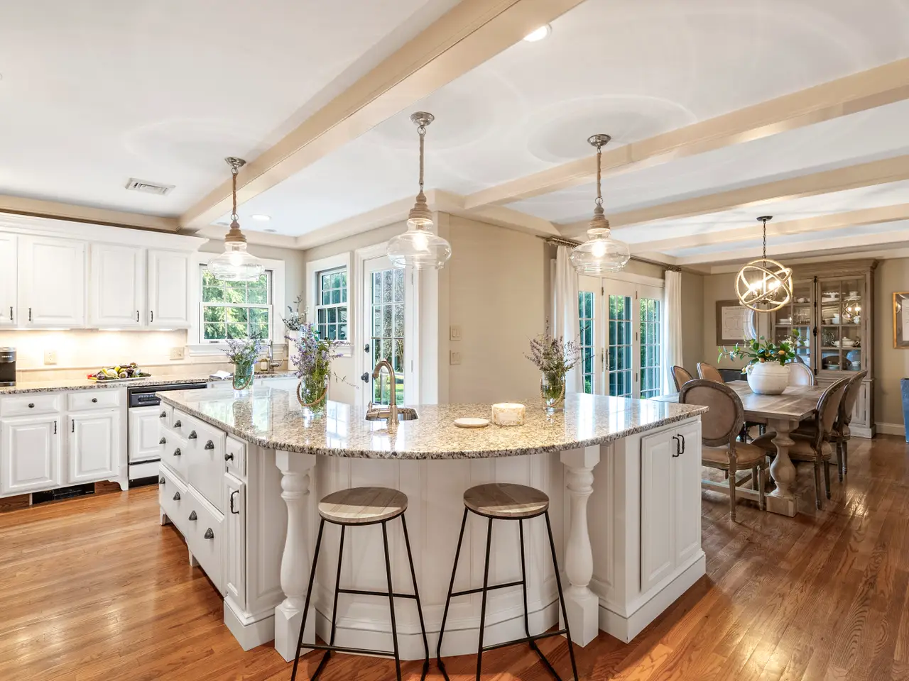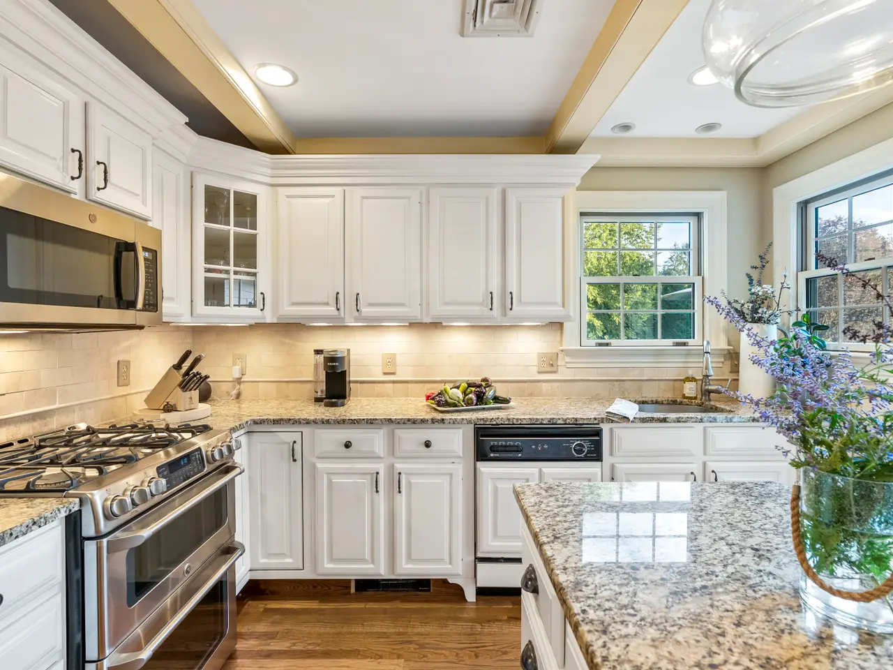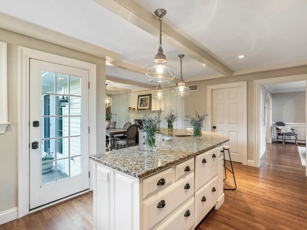 Extensive trim and molding throughout set this stunning custom home apart from any other. Every corner highlight extraordinary trim, detailed architecture, and unmatched craftsmanship. 25 meticulously crafted coffered ceilings, elegant wainscoting, multi-tiered crown molding, arched entryways, and custom inset cabinetry - a level of detail nothing short of phenomenal. Located in the coveted Red Hill neighborhood, homes rarely come on the market. Buyers often reach out to owners to inquire about selling. The home's incredible curb appeal is matched by beautifully landscaped grounds featuring a bluestone patio, outdoor TV, stone walls, fire pit, fountain, vegetable garden, and landscape lighting. Inside, there are three fireplaces that anchor the home's inviting atmosphere, while the custom kitchen offers an oversized island with second sink, two refrigerator drawers, and spacious pantry. Flowing together, the formal living and dining rooms-with a charming wood-burning fireplace-create a perfect setting for entertaining. The first-floor primary suite is exquisitely appointed, with a walk-in closet and a beautifully remodeled bath. The home office is thoughtfully designed with custom shelving, inset cabinetry, and French doors. Upstairs, a renovated full bath serves the secondary bedrooms. 650 sq. ft. finished walk-out lower level provides versatile space for entertaining, playroom, or home. Carefully crafted for both elegance and daily living, this home is truly exceptional.