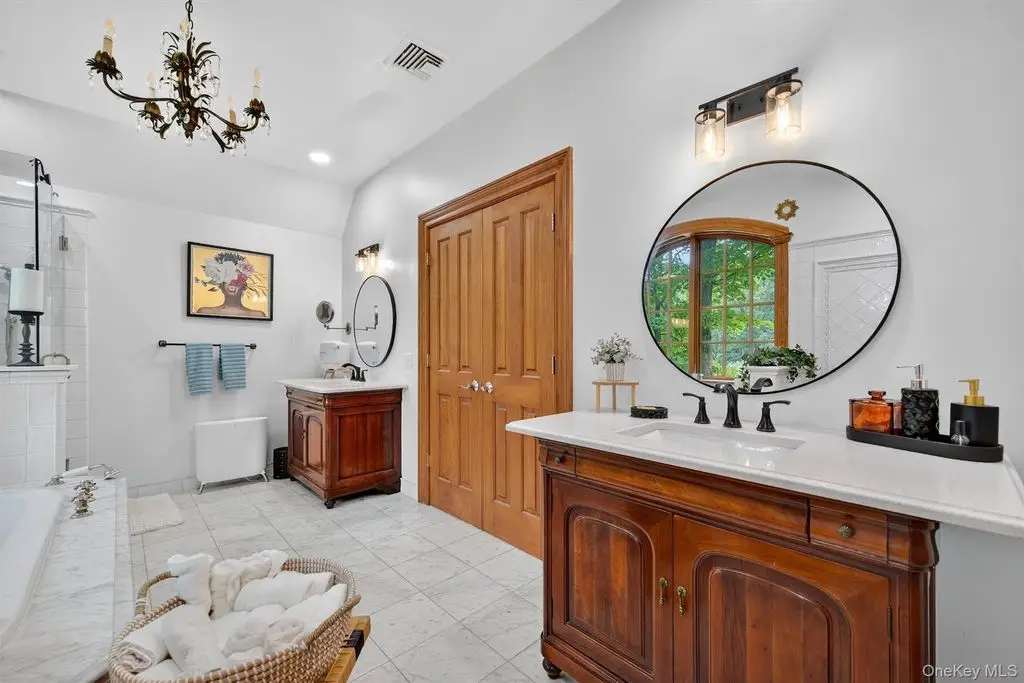 Welcome to LE CHATEAU des VERTS - Lives like a ranch, entertains like a castle. Discover a slice of the French countryside, perfectly perched in the Hudson Valley. Inspired by the rolling hills of Provence and meticulously crafted with timeless elegance, this one-of-a-kind home is known to its neighborhood residents as The Castle on the Hill. It's more than a house; it's a tranquil retreat for those seeking an escape from the city, without sacrificing style or convenience. Nestled on over an acre of serene, maturely landscaped grounds, Le Chteau des Verts offers a true sanctuary just 30 miles north of Manhattan. The design immediately captivates you as you arrive, with a grand two-story turret and custom arched windows accented by slate-blue shuttersa nod to the classic beauty of French architecture. Step through the double front doors into an inviting foyer. The radiant floors guide you through the sprawling first-floor living area, where natural light pours in from every window, creating a warm, airy atmosphere. To the left, the formal dining room is perfectly positioned for memorable gatherings, with east-facing windows that capture the beauty of the Hudson Valley sunrise. The heart of the home is the French-Country eat-in-kitchen. Here, custom cabinetry and woodwork, along with pull-out spice drawers on either side of the five-burner stove, blend practicality with elegance. The turret space provides the ideal nook for a circular breakfast table, while the center island offers additional seating and prep space. For unwinding or entertaining, the home features two elegant living rooms, each with its own fireplace. Walls of French glass doors illuminate these spaces, offering seamless views and access to your backyard oasis, complete with a heated, in-ground saltwater pool. This is where you'll find yourself on summer afternoons, soaking in the sun and enjoying a peaceful moment. The North Wing of the home, or the Owner's Wing, is a private escape. A nearby second bedroom, ideal for a nursery or home office, features its own set of French glass doors leading to the garden. The Owner's suite is a haven of relaxation, with high ceilings and another set of French doors that amplify the natural light. It leads to an ensuite bathroom with dual vanities, a luxurious jacuzzi tub, and a custom shower. A walk-in closet with built-ins completes this wing. Continuing to the west wing of the home, a half-bathroom, laundry room, and a spacious bonus room offer flexibilityperfect for a billiards room, library, or secluded living area. Upstairs, two generous guest bedrooms share a full bathroom, ensuring comfort and privacy for visitors. An unfinished space also leaves room for additional quarters. The walkout lower level provides a versatile living space with a full bath. A large room, currently used as a walk-in closet, has endless potential for a jaw-dropping hobby spacefrom a private wine cellar to a state-of-the-art recreation room with a golf simulator. A full gym and an attached three-car garage complete this incredible home. This is more than a property; it's a lifestyle you've been dreaming of.