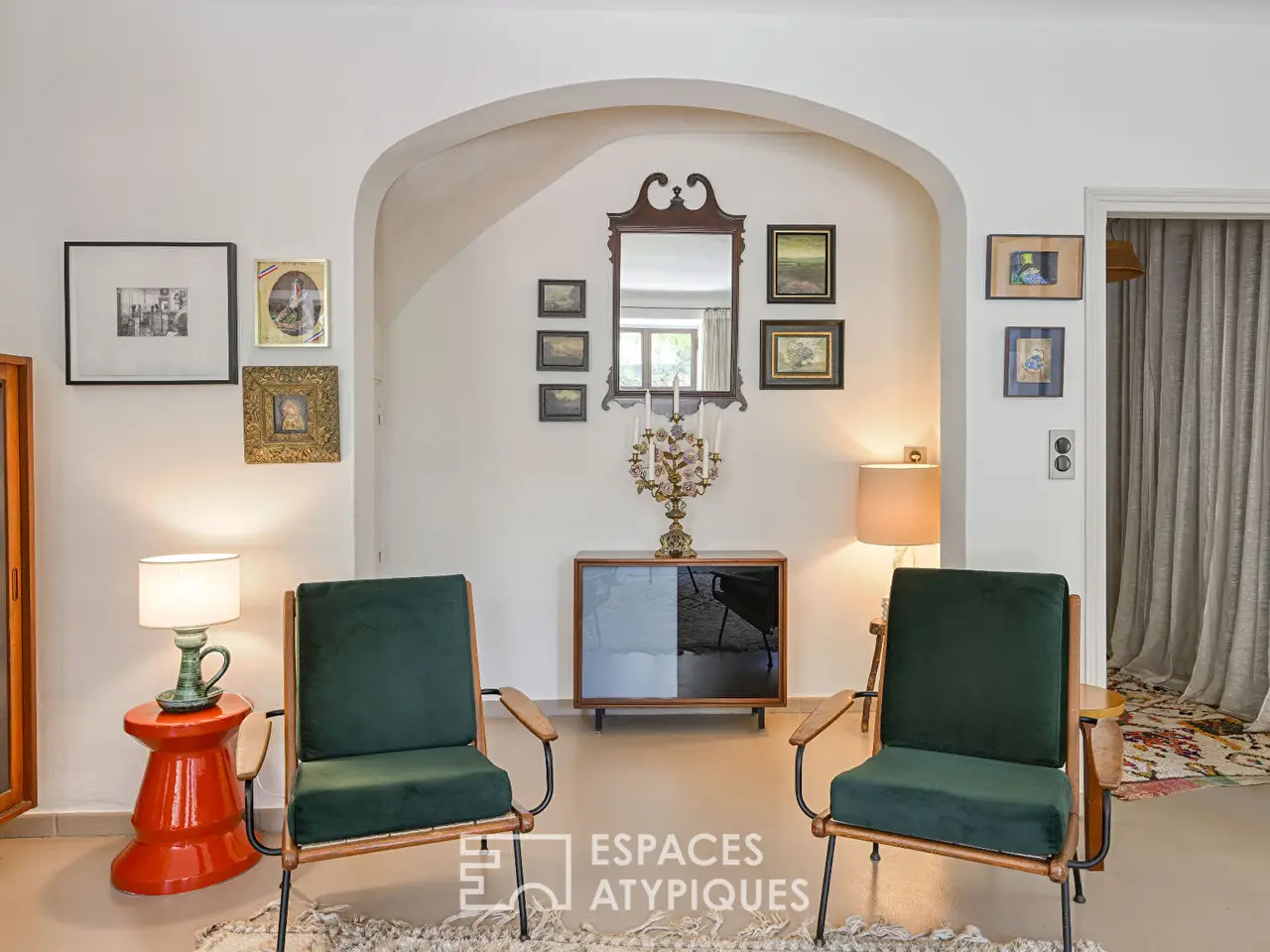 Entering through a discreet alleyway is like stepping into a true Provencal haven where every detail tells a story. This little gem, both authentic and carefully renovated, spreads its bright and welcoming spaces over several levels, for a fulfilling family life or an exceptional second home. The modern kitchen, bathed in natural light, invites conviviality and sharing. The living room, the heart of the house, seduces with its antique fireplace decorated with a wood-burning stove, offering a warm atmosphere in all seasons. Large French windows open onto an intimate and peaceful garden, where stone and vegetation blend harmoniously, ready to accommodate a pond according to your desires. A cozy winter dining room completes this level, ideal for cozy evenings or a quiet office. The upper floor houses two beautiful suites of over 20 sqm, bright and comfortable, true havens of peace. On the top floor, the exceptional experience continues with a rare and enchanting living space: a vast master suite with a spacious bedroom, a TV lounge opening onto a Tropezian terrace with panoramic views over the village rooftops and the surrounding countryside. A separate spiral staircase leads to an adjoining room, now a library, which can be converted into a bedroom with bathroom and toilet. The latter benefits from independent access via a magnificent stone staircase served by the entrance hall, offering perfect autonomy and a unique charm. A separate workshop in a former barn completes this property, which can be converted into a garage, artist's studio, games room or leisure space depending on your plans. Finally, the ground floor includes a technical room dedicated to the central heating boiler and a small wine cellar, meeting the practical and technical needs of the house. This rare residence elegantly combines Provencal authenticity and contemporary requirements, ideal for peaceful village life or a charming residence in Provence. ENERGY CLASS: E CLIMATE CLASS: E Estimated average amount of annual energy expenditure for standard use, based on energy prices for the year 2023: between 3250 and 4250 euros Information on the risks to which this property is exposed is available on the Georisques website: www.georisques.gouv.fr REF. 950EAA Additional information * 6 rooms * 4 bedrooms * 1 bathroom * 2 shower rooms * Floor : 2 * 2 floors in the building * Outdoor space : 248 SQM * Parking : 2 parking spaces * Property tax : 2 407 € Energy Performance Certificate Primary energy consumption e : 204 kWh/m2.year High performance housing