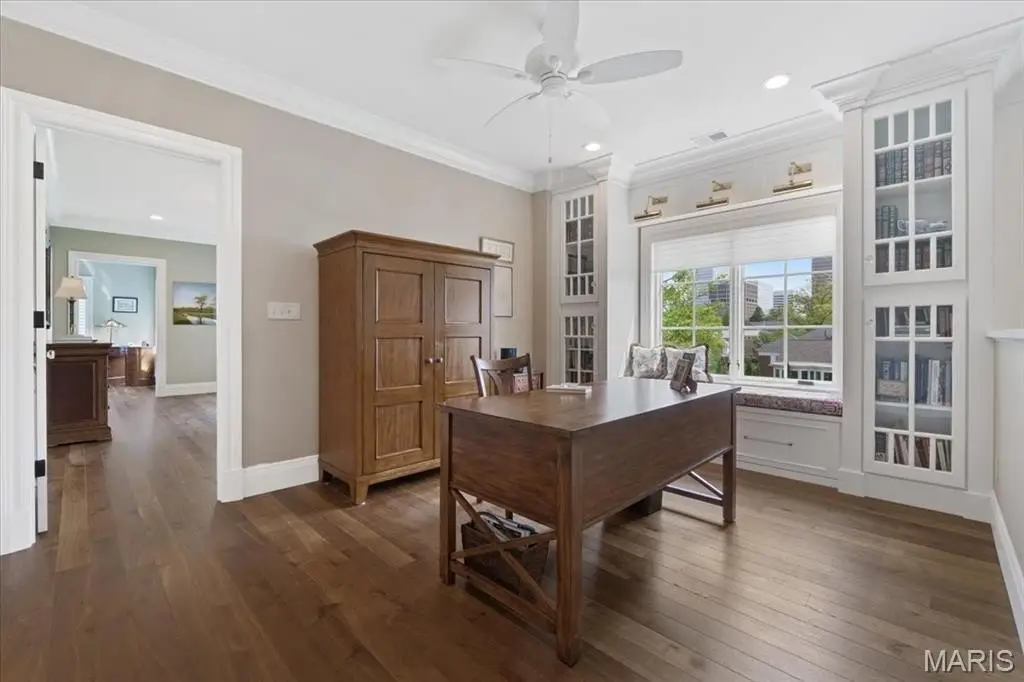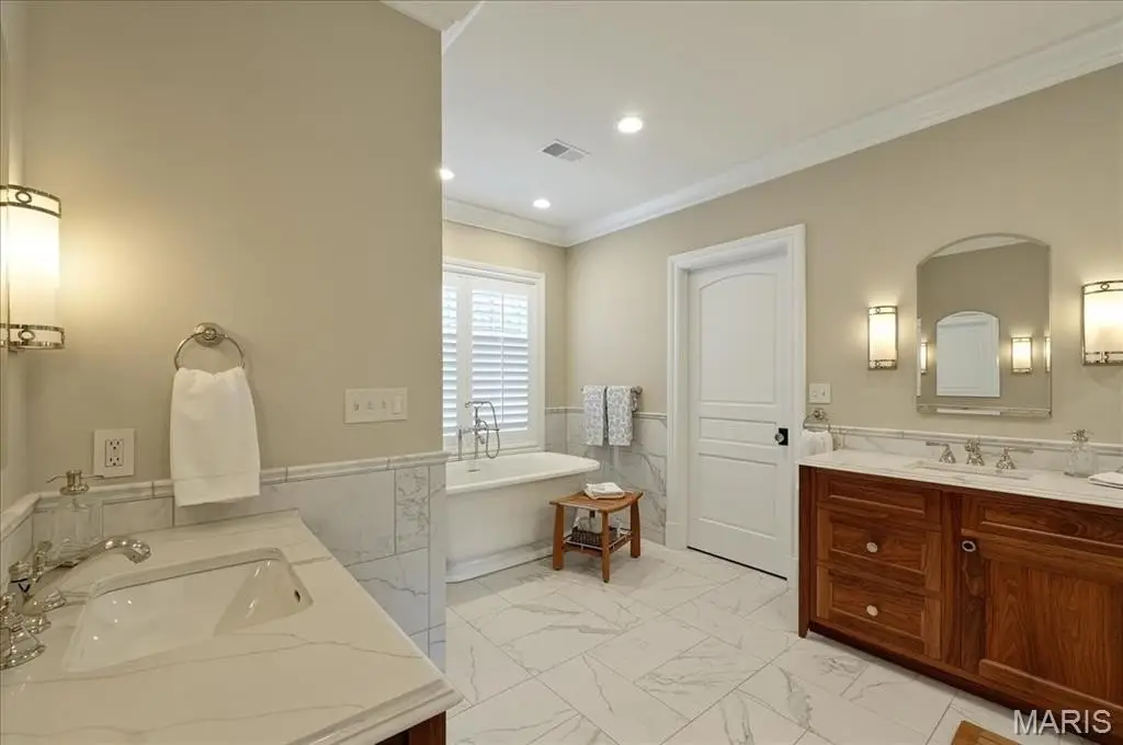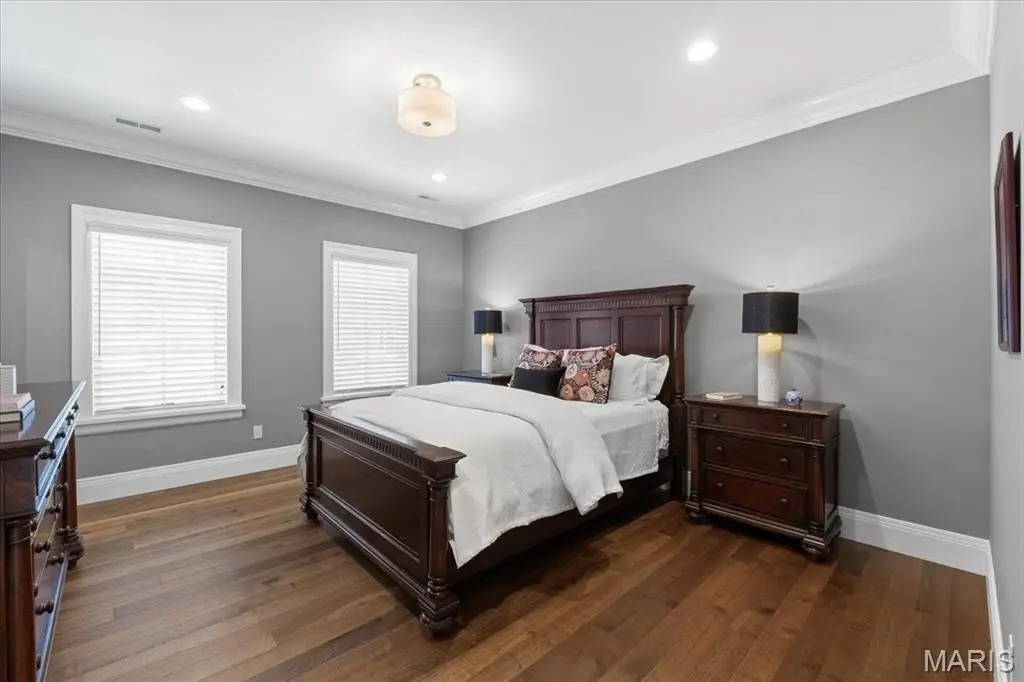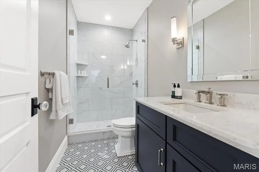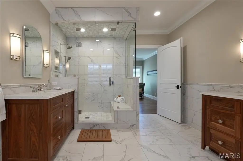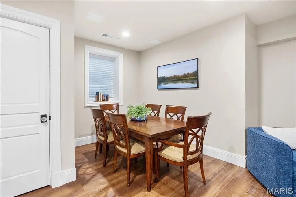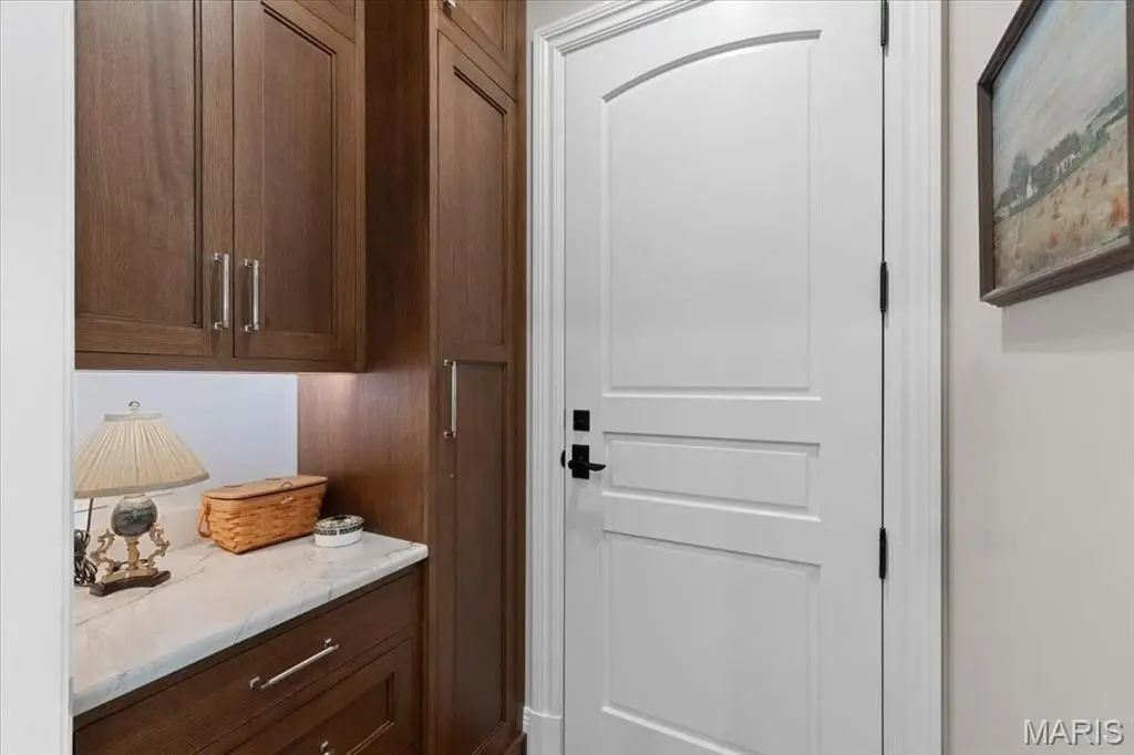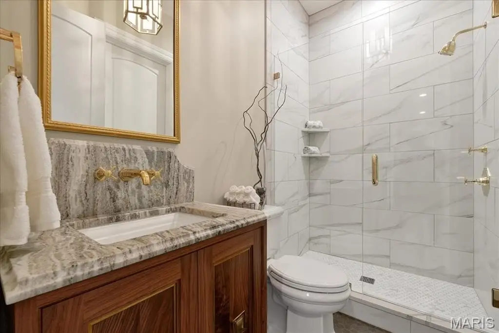 Constructed of brick and limestone, this newer home evokes the timeless charm of historic architecture while blending harmoniously into the surroundings of Old Town Clayton. Designed with impeccable attention to detail, the home boasts European oak floors, detailed moldings, and 10-foot and 9-foot ceilings on the main and second levels, offering refined comfort throughout. The gracious living room with a gas fireplace flows into a spacious dining area and a custom kitchen featuring rift-sawn Plato cabinetry, Sub-Zero and Wolf appliances, and a custom hammered stainless steel hood. The serene primary suite upstairs includes a versatile adjacent room, a large walk-in closet, and a luxurious bath with a soaking tub, steam shower, Vaughn sconces, and Robern cabinets. A second ensuite bedroom boasts restored Vitrolite tile, while a third bedroom has a direct access full bath. Completing the upper level is an oversized laundry room and a loft with leaded glass cabinetry and a window seat with views to downtown Clayton. A large family room with a wet bar, full bath, bedroom, and second laundry is found on the lower level. Additional features include geothermal HVAC, attached two-car and detached one-car heated garages, and an elevator shaft ready to serve all floors. Across from Taylor Park and within walking distance to Clayton’s shops and dining, this home offers luxury, location, and lifestyle. Optional adjacent duplex available for expanded living or investment.
