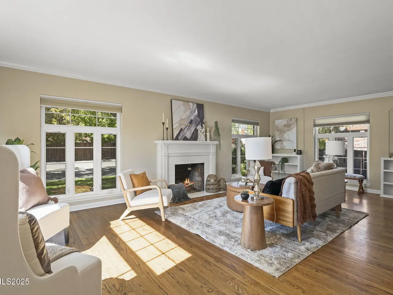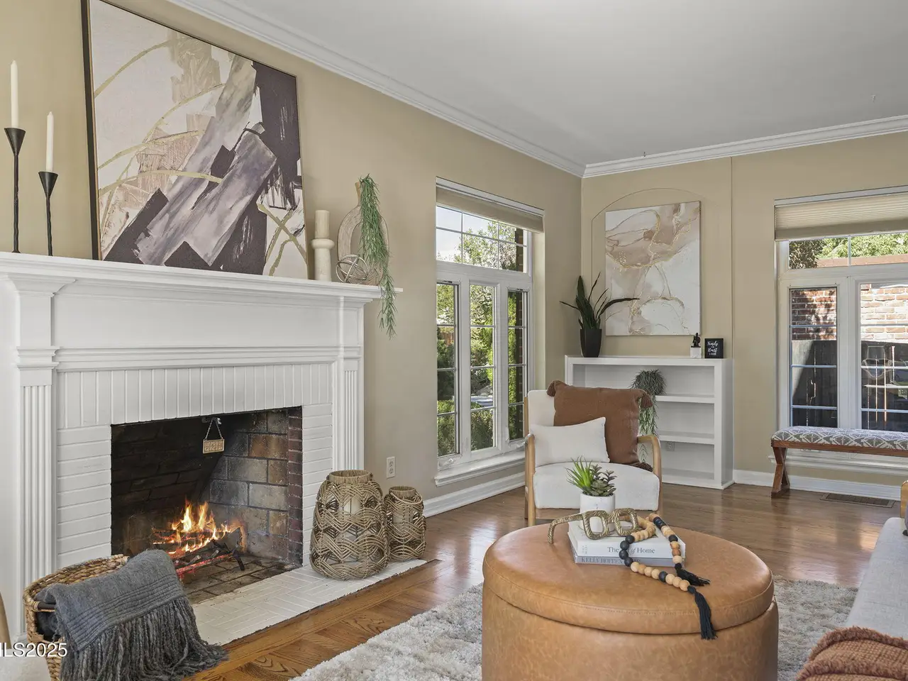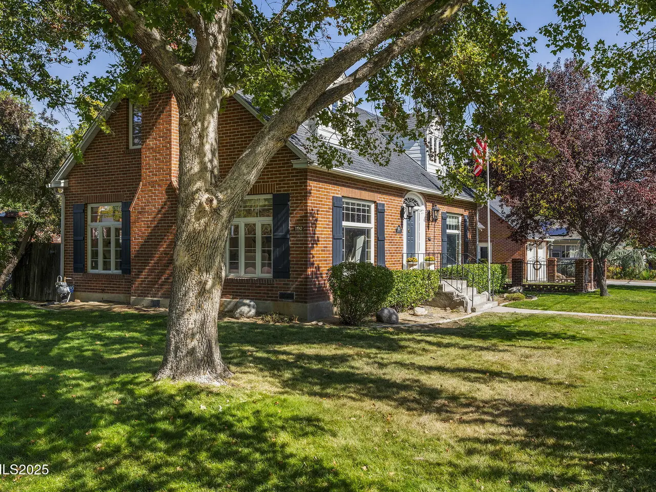 Situated on a quiet corner of a tree-lined street equidistant from the Nevada Museum of Art, Virginia Lake, and Midtown's restaurants and shops, 1190 Manor Drive offers the best of Old Southwest living: established yet vibrant, character-filled yet practical. • Thoughtfully cared for and lovingly maintained, this **3-bed, 3-bath, 2,592-sq-ft home** is a rare example of how a home can evolve while keeping its heart intact. • Don't miss the chance to live here this fall—watch the trees outside your windows shift from bright green to burnished gold and settle by the wood-burning fireplace as cooler days arrive. • **Move-In Ready** This classic brick Colonial Revival has been thoughtfully renewed, ensuring that what defines the home—its warmth, craftsmanship, 1940s architecture, character, and quiet beauty—remains intact. • Over the decades, each owner has meticulously maintained and updated the home's systems, from the 2021 furnace, A/C, and water heater to the fully remodeled kitchen and Ecobee smart-thermostat system. • Plaster detailing, crown molding, and built-in nooks represent the era's character. • Even the smallest elements—the built-ins, mail slot, and telephone inset—reflect enduring care and preservation. • **Inside** The floor plan balances privacy and functionality. • On the main level, the front door opens to an L-shaped staircase with its original balustrade and a graceful curtailed step framed by an arched threshold. • To the left, sunlight filters through tall windows onto gleaming hardwood floors in the living room, where a wood-burning fireplace anchors the generous space. • To the right, the dining room, featuring wainscoting and a graceful chandelier, opens naturally to the remodeled kitchen, which showcases quartz countertops, a Wolf gas range, thoughtful cabinetry with pull-outs and soft-close drawers, and a brick accent wall lending warmth and authenticity. • Vaulted ceilings with exposed beams lift the space, while the eat-in nook's window seat overlooks the front yard's mature landscaping, which bursts into vivid gold and red each fall. • A main-level bedroom and full bath offer convenience for guests or single-level living, while upstairs, two dormered bedrooms with built-ins and angled ceilings capture a sense of coziness and charm and bookend another full bath. • Both bathrooms blend modern tile and fixtures with classic styling in shades of white and gray—refined, not trendy. • The basement extends the home's versatility with a generous flex space easily accommodating a family room, gym, or studio. • A bonus room provides privacy for an office or creative workspace, complemented by a three-quarter bath and a tidy laundry area with modern appliances and ample storage. • **Outside** The detached two-car brick garage provides extra storage or potential workshop space. • A covered deck with white rafters filters sunlight in shifting patterns and connects directly to the kitchen, creating an easy flow for indoor-outdoor entertaining. • Beyond, the property opens into a private brick and flagstone courtyard framed by redwood planters, lush vines, and mature trees. • An ivy-covered pergola anchors the outdoor dining area, while a dog run tucked along the side yard offers convenience without sacrificing aesthetics. • Each space invites use across the seasons—morning coffee in the dappled shade, dinner gatherings under string lights, or quiet reading beside the raised garden beds. **Every season brings its own moment of beauty here—and this one-of-a-kind home is ready for you to make them all your own.**