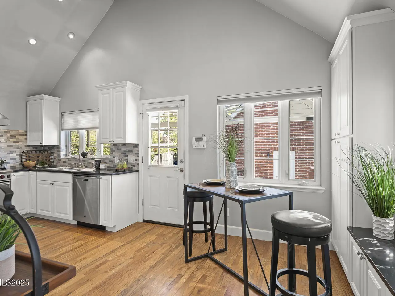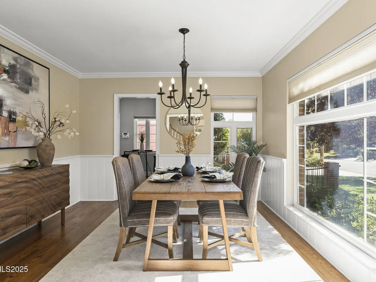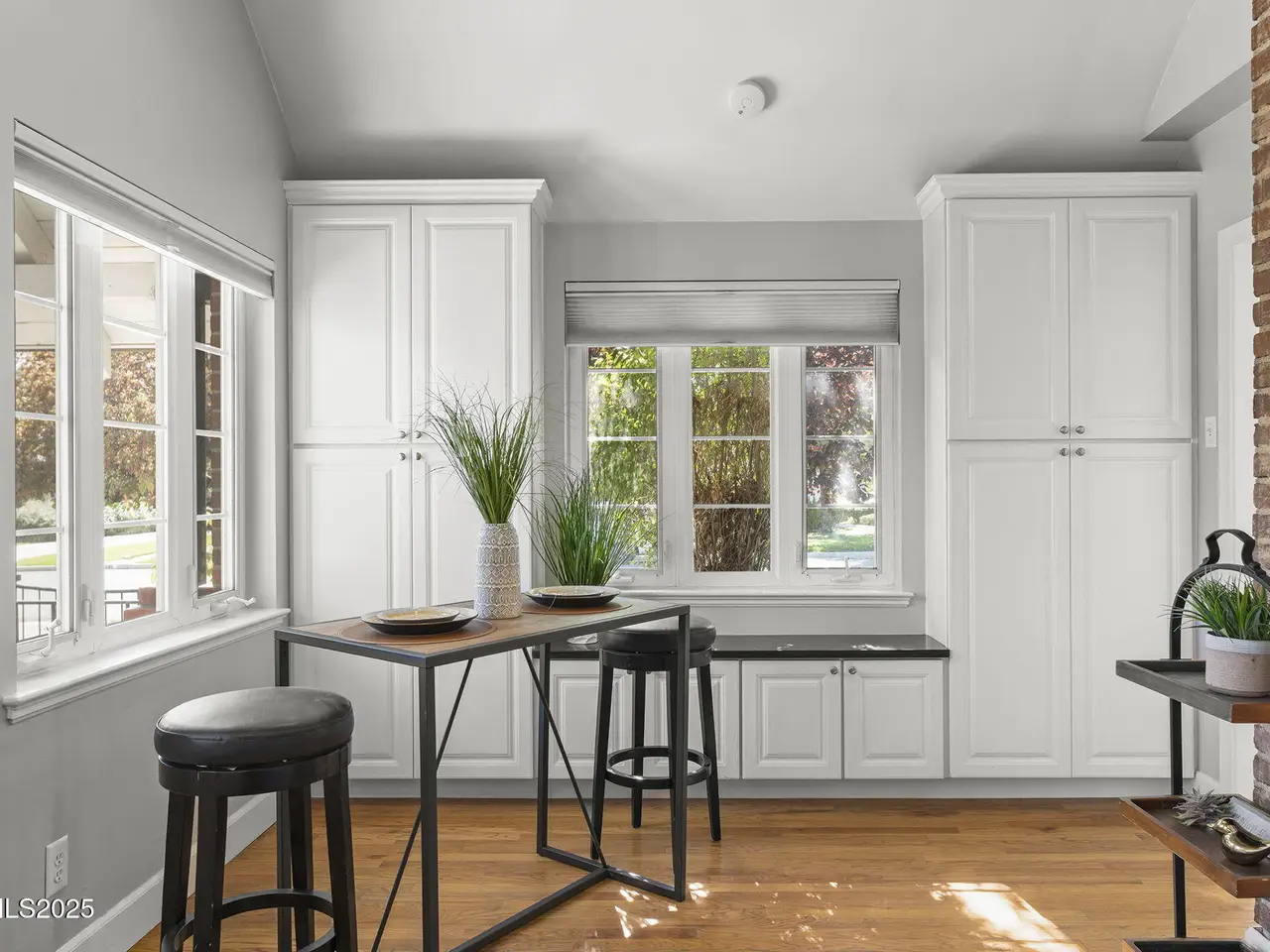 Situated on a quiet corner of a tree-lined street equidistant from the Nevada Museum of Art, Virginia Lake, and Midtown's restaurants and shops, 1190 Manor Drive offers the best of Old Southwest living: established yet vibrant, character-filled yet practical. • Thoughtfully cared for and lovingly maintained, this **3-bed, 3-bath, 2,592-sq-ft home** is a rare example of how a home can evolve while keeping its heart intact. • Don't miss the chance to live here this fall—watch the trees outside your windows shift from bright green to burnished gold and settle by the wood-burning fireplace as cooler days arrive. • **Move-In Ready** This classic brick Colonial Revival has been thoughtfully renewed, ensuring that what defines the home—its warmth, craftsmanship, 1940s architecture, character, and quiet beauty—remains intact. • Over the decades, each owner has meticulously maintained and updated the home's systems, from the 2021 furnace, A/C, and water heater to the fully remodeled kitchen and Ecobee smart-thermostat system. • Plaster detailing, crown molding, and built-in nooks represent the era's character. • Even the smallest elements—the built-ins, mail slot, and telephone inset—reflect enduring care and preservation. • **Inside** The floor plan balances privacy and functionality. • On the main level, the front door opens to an L-shaped staircase with its original balustrade and a graceful curtailed step framed by an arched threshold. • To the left, sunlight filters through tall windows onto gleaming hardwood floors in the living room, where a wood-burning fireplace anchors the generous space. • To the right, the dining room, featuring wainscoting and a graceful chandelier, opens naturally to the remodeled kitchen, which showcases quartz countertops, a Wolf gas range, thoughtful cabinetry with pull-outs and soft-close drawers, and a brick accent wall lending warmth and authenticity. • Vaulted ceilings with exposed beams lift the space, while the eat-in nook's window seat overlooks the front yard's mature landscaping, which bursts into vivid gold and red each fall. • A main-level bedroom and full bath offer convenience for guests or single-level living, while upstairs, two dormered bedrooms with built-ins and angled ceilings capture a sense of coziness and charm and bookend another full bath. • Both bathrooms blend modern tile and fixtures with classic styling in shades of white and gray—refined, not trendy. • The basement extends the home's versatility with a generous flex space easily accommodating a family room, gym, or studio. • A bonus room provides privacy for an office or creative workspace, complemented by a three-quarter bath and a tidy laundry area with modern appliances and ample storage. • **Outside** The detached two-car brick garage provides extra storage or potential workshop space. • A covered deck with white rafters filters sunlight in shifting patterns and connects directly to the kitchen, creating an easy flow for indoor-outdoor entertaining. • Beyond, the property opens into a private brick and flagstone courtyard framed by redwood planters, lush vines, and mature trees. • An ivy-covered pergola anchors the outdoor dining area, while a dog run tucked along the side yard offers convenience without sacrificing aesthetics. • Each space invites use across the seasons—morning coffee in the dappled shade, dinner gatherings under string lights, or quiet reading beside the raised garden beds. **Every season brings its own moment of beauty here—and this one-of-a-kind home is ready for you to make them all your own.**