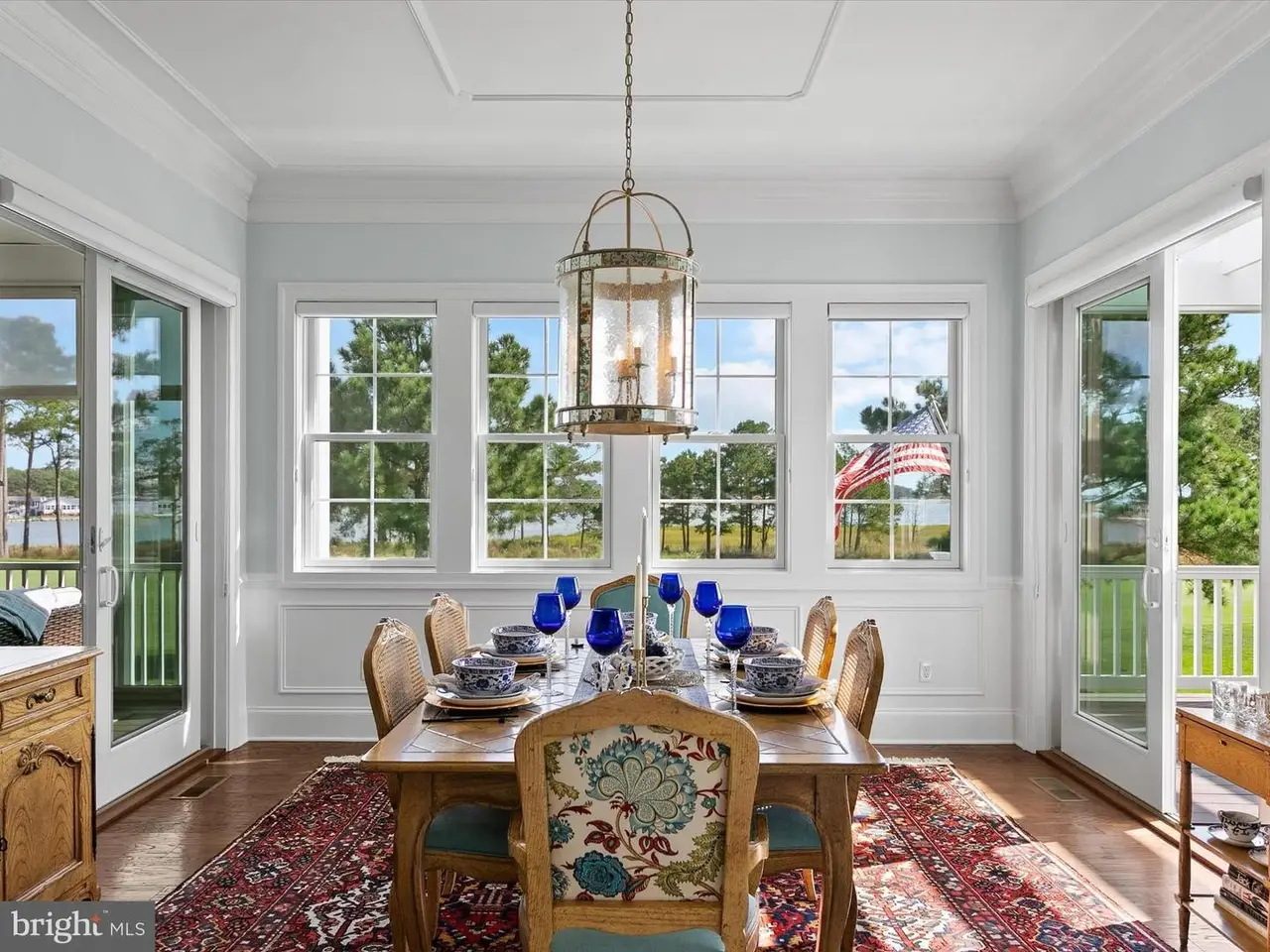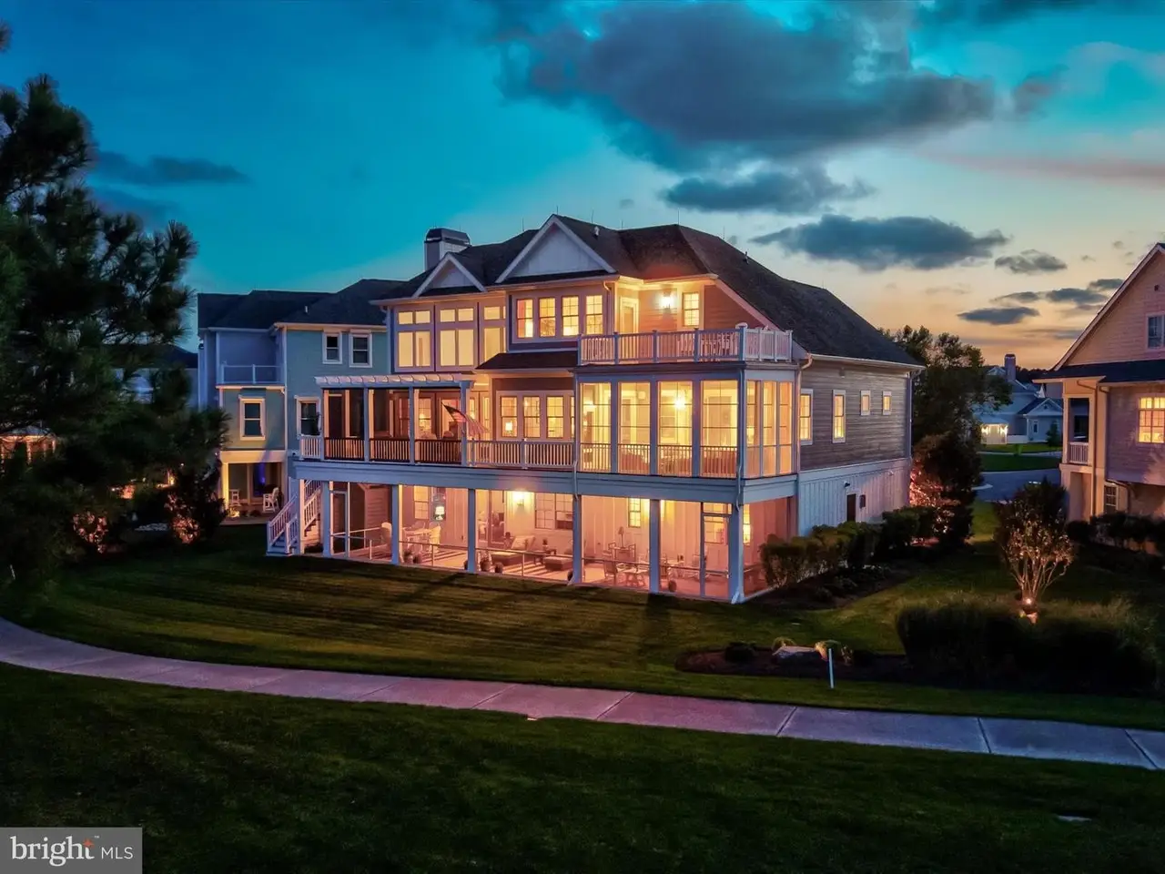 An Exquisite Bayfront Residence with Championship Views, A Coastal Sanctuary in The Peninsula Welcome to 27725 Sunwalk Blvd, an Echelon-built masterpiece in the prestigious Sanctuary enclave of The Peninsula on the Indian River Bay. This custom luxury home embodies coastal sophistication, timeless design, and masterful craftsmanship, with panoramic waterfront views that set an unrivaled backdrop for daily living and entertaining. Perched on one of the community's most coveted lots, the home commands 180-degree vistas of the Indian River Bay, the iconic Inlet Bridge, Lingo Creek, and the signature 8th hole of the Jack Nicklaus golf course. From nearly every room and vantage point, sweeping views unfold, where sunrises dance across the water, bald eagles soar overhead, and the rhythms of boating, kayaking, and paddleboarding animate the horizon. Designed for entertaining, the home offers five outdoor decks, including a spectacular 60-foot screened porch with swings, rockers, chaise lounges, and dining space. A second-level deck with a covered pergola invites alfresco meals, while the third-floor deck is the perfect perch for sunset cocktails with views as far as the eye can see. Inside, an expansive 25' x 35' family room, complete with a custom bar, fireplace, and seamless connection to the porch, provides a gathering place equally suited for lively celebrations or quiet evenings by the fire. The great room, formal dining room, and loft offer additional spaces for hosting and relaxation, while the indoor/outdoor Delaware room, with easy-glide vinyl windows, extends the entertainment season throughout most of the year. Every detail of the home has been carefully curated. The interiors are professionally designed with European and Asian influences, blending bespoke wallpapers, custom headboards, and elegant draperies into a cohesive and sophisticated palette. Architectural finishes such as dramatic coffered ceilings, layered crown moldings, judges paneling, and hand-scraped hardwood floors underscore the home's refinement. Built-in cabinetry, French doors with crystal knobs, custom closets, and exquisite lighting, from sparkling chandeliers to designer pendants, further elevate the interiors. The gourmet kitchen is a chef's delight, featuring cafe Series appliances, ceiling-height cabinetry with glass-front accents and custom lighting, a built-in wine chiller, and stone-tiled backsplash, all arranged with style and functionality in mind. The adjoining dining spaces and server counters ensure seamless entertaining. Retreat to the luxurious primary suite, where a spa-like bath with a clawfoot slipper tub promises indulgence. The 3-seasons room extends the suite with a serene retreat framed by water views. Additional bedrooms, each with custom closets and elegant design, offer comfort for guests and family alike. Beyond beauty, the home is meticulously maintained and enhanced with thoughtful upgrades, including Anderson windows and doors, a custom elevator, extensive recessed lighting, whole-home music with ceiling speakers, two fireplaces with striking mantels, a security system, and abundant storage. The homes interiors and exterior have been freshly painted in 2025. Outdoor spaces are equally refined, with professional landscaping by a renowned architect, bluestone garden pathways, custom stonework, up-lighting, and shaded porches that invite relaxation. Even the garage has been upgraded with a four-foot extension, epoxy flooring, and climate-controlled storage. For the golf enthusiast, Reserve Golf Membership is eligible to be transferred with purchase of the home. 27725 Sunwalk Blvd., is more than a home, it is a lifestyle defined by beauty, refinement, and connection to both nature and community. A rare opportunity to claim one of The Peninsula's most remarkable residences, this bayfront sanctuary redefines coastal resort living.