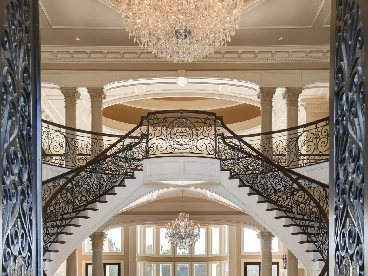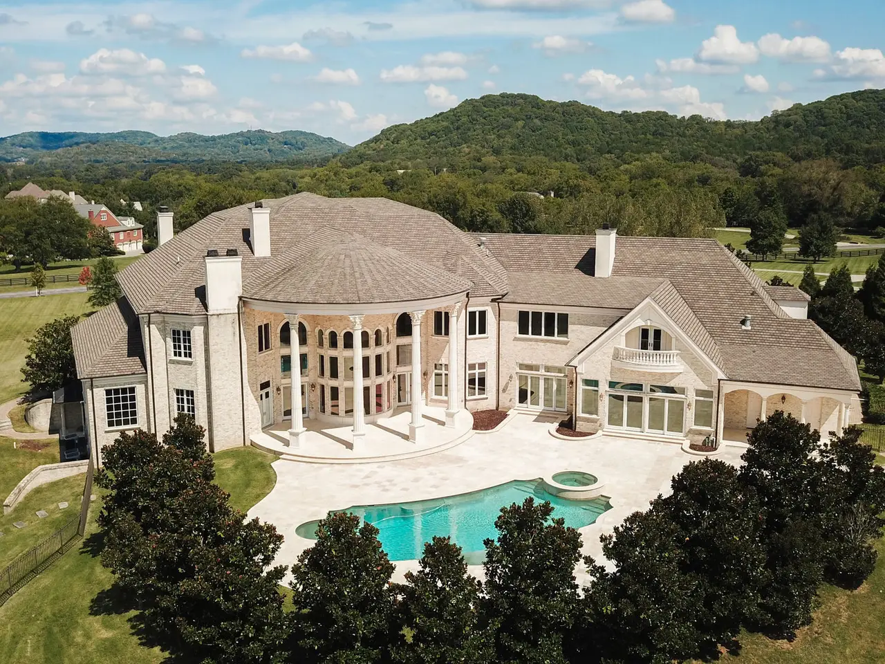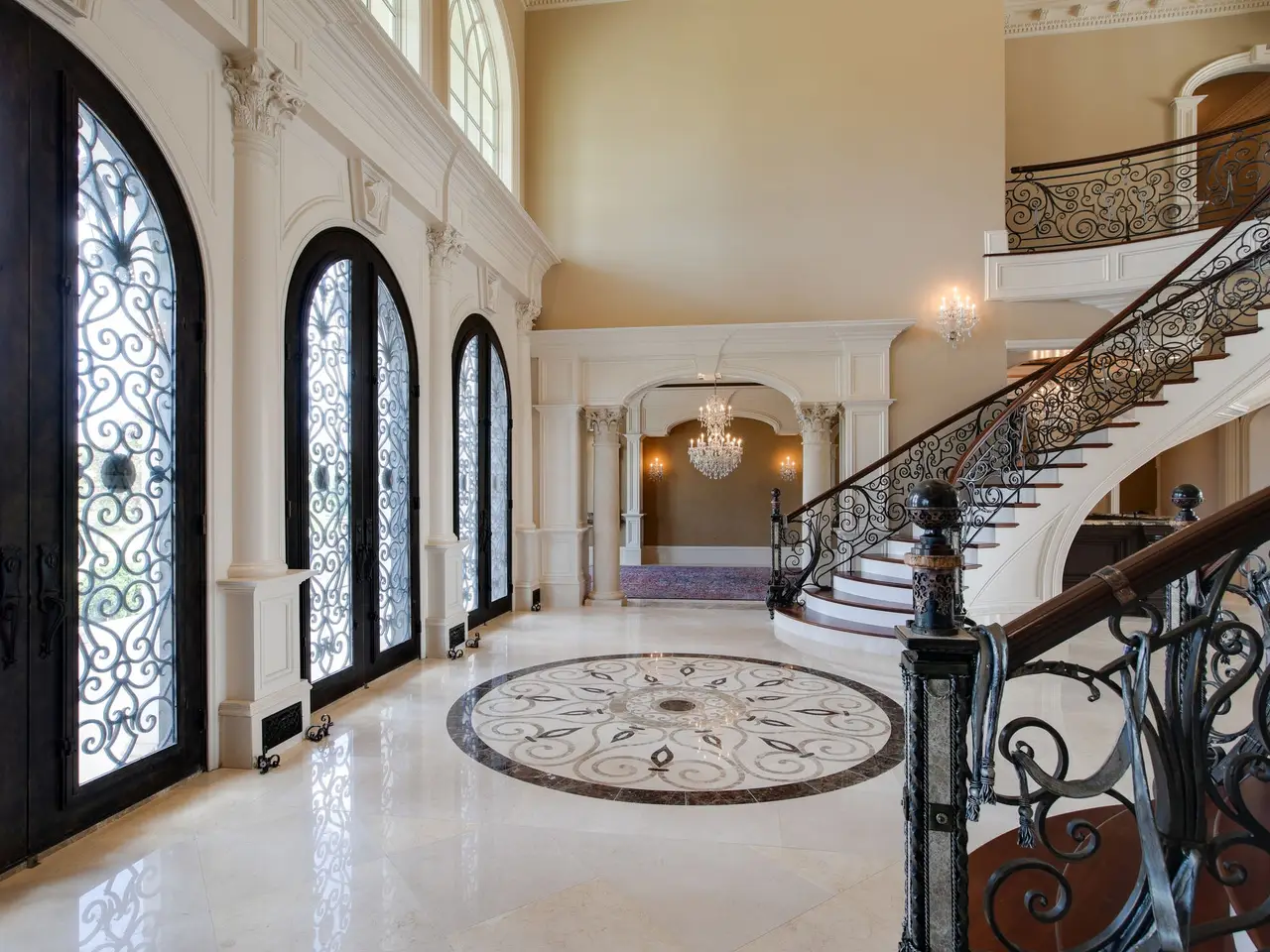 Villa Del Canto is a breathtaking 22,743-square-foot luxury estate nestled in the picturesque hills of Franklin, TN. This architectural masterpiece seamlessly marries Neoclassical opulence with Beaux-Arts influences, creating a stunning visual symphony. Adorned with 100 exquisite chandeliers and hand-painted ceilings, the home features six spacious bedrooms and eight lavish bathrooms, each designed for comfort and elegance. With nine fireplaces and soaring 30-foot ceilings, every corner of this estate exudes an unparalleled grandeur. Culinary enthusiasts will revel in the three gourmet kitchens, each equipped with top-of-the-line appliances and designed for both functionality and style. The sports bar and state-of-the-art theater promise endless entertainment options, ensuring that every gathering is memorable. The exquisite ballroom, perfect for hosting lavish events, invites guests to dance the night away, while the sophisticated wine cellar caters to connoisseurs with its curated selection. Completing this unparalleled residence is a stunning 40,000-gallon pool and a six-car garage, showcasing custom finishes that redefine luxury living. After years of meticulous design and planning, the visionary behind Villa Del Canto embarked on a journey to create his dream home on four sprawling acres in Williamson County. With a desire to blend modern elegance with the natural beauty of the landscape, he painstakingly crafted every detail, from the grand entrance to the intricate custom ironwork.