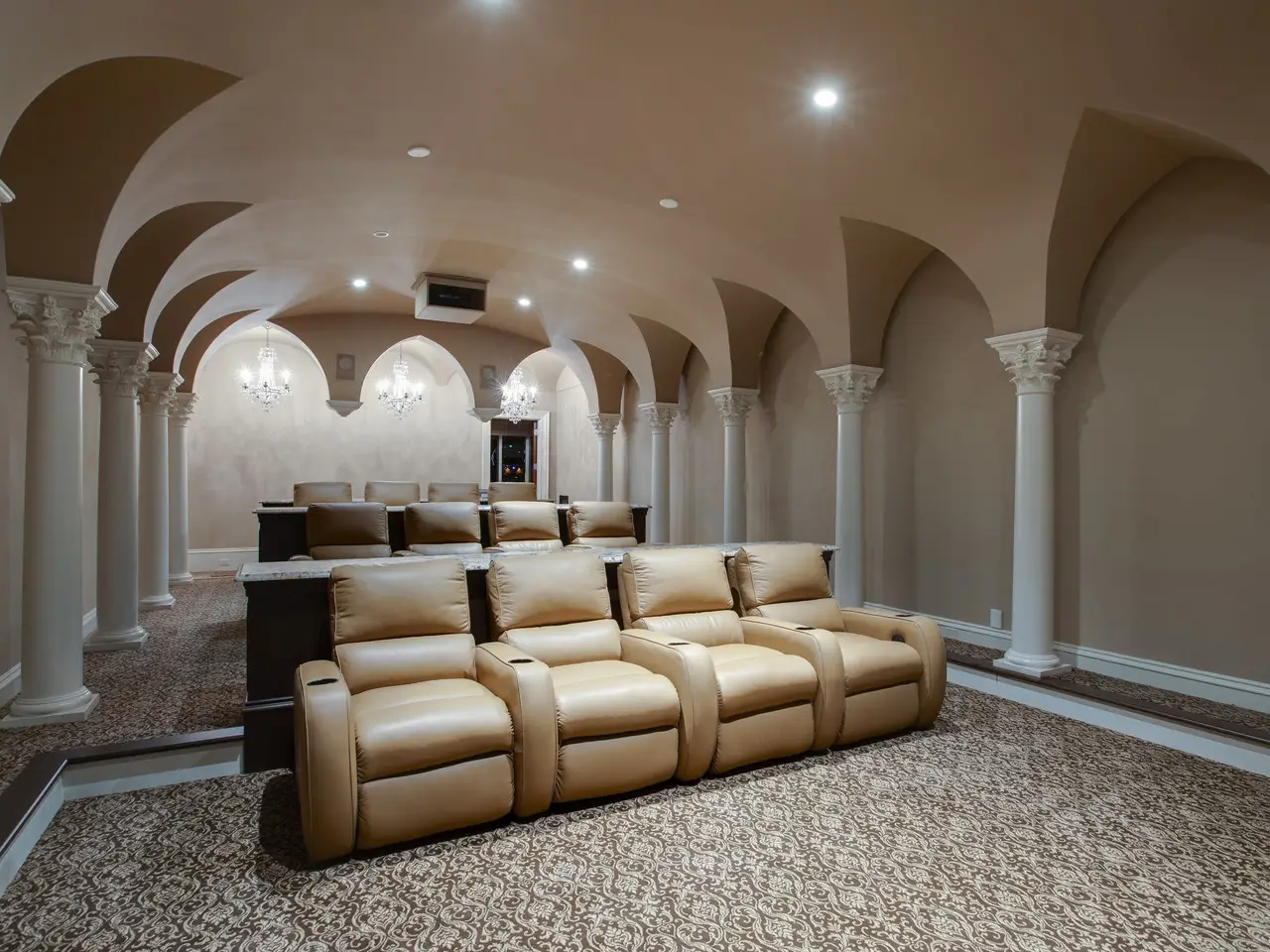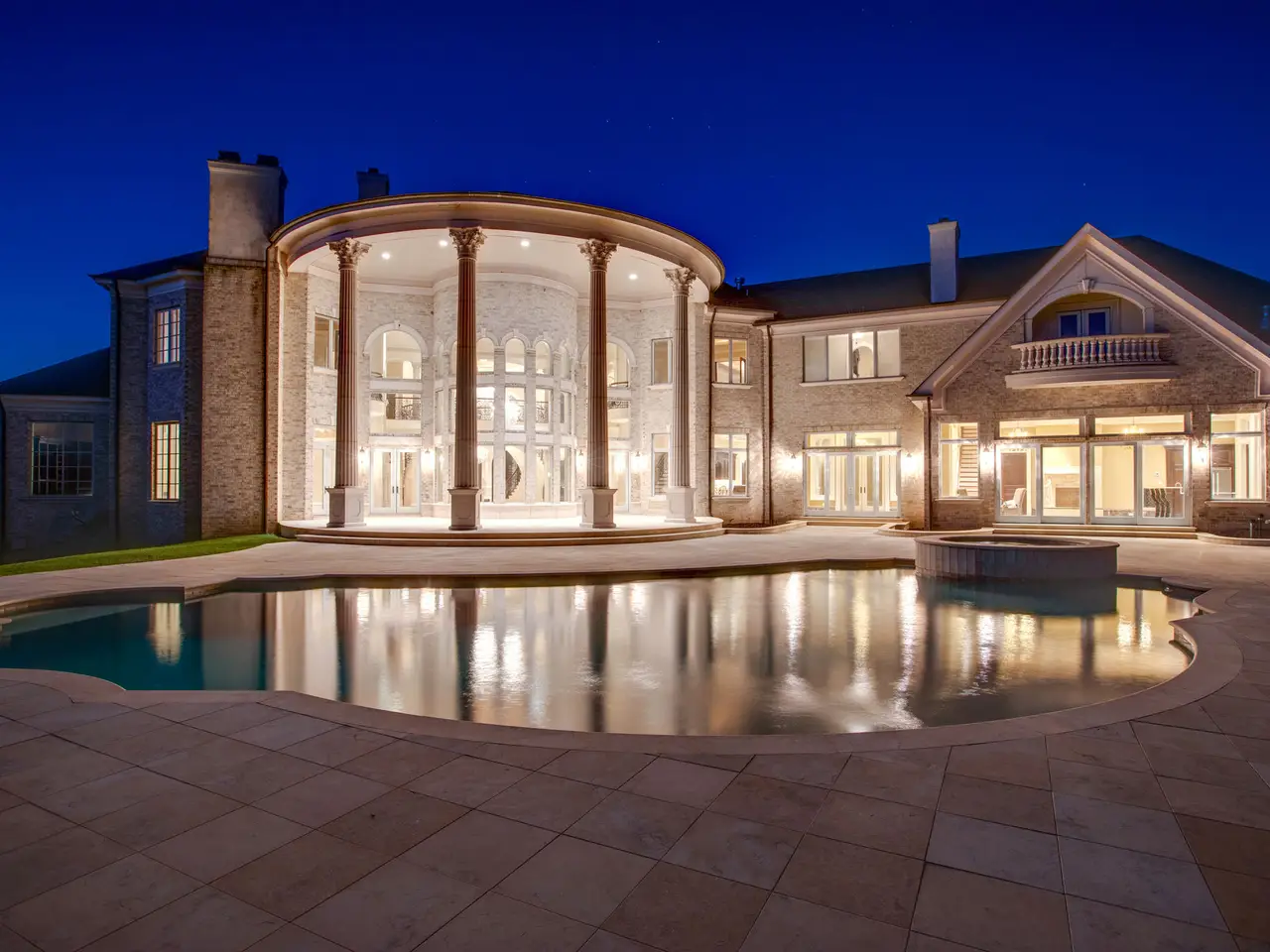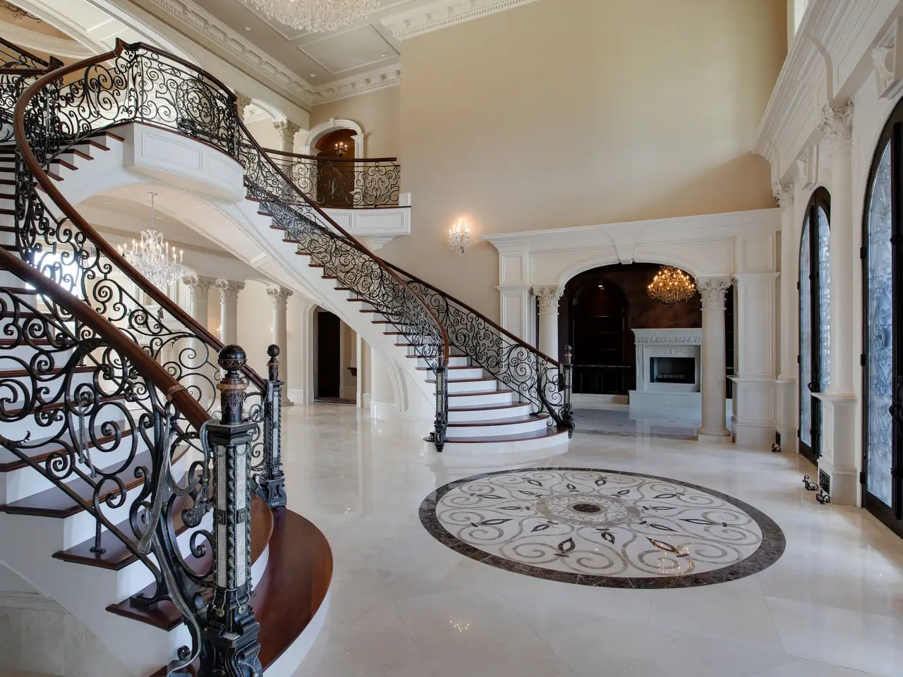 Villa Del Canto is a breathtaking 22,743-square-foot luxury estate nestled in the picturesque hills of Franklin, TN. This architectural masterpiece seamlessly marries Neoclassical opulence with Beaux-Arts influences, creating a stunning visual symphony. Adorned with 100 exquisite chandeliers and hand-painted ceilings, the home features six spacious bedrooms and eight lavish bathrooms, each designed for comfort and elegance. With nine fireplaces and soaring 30-foot ceilings, every corner of this estate exudes an unparalleled grandeur. Culinary enthusiasts will revel in the three gourmet kitchens, each equipped with top-of-the-line appliances and designed for both functionality and style. The sports bar and state-of-the-art theater promise endless entertainment options, ensuring that every gathering is memorable. The exquisite ballroom, perfect for hosting lavish events, invites guests to dance the night away, while the sophisticated wine cellar caters to connoisseurs with its curated selection. Completing this unparalleled residence is a stunning 40,000-gallon pool and a six-car garage, showcasing custom finishes that redefine luxury living. After years of meticulous design and planning, the visionary behind Villa Del Canto embarked on a journey to create his dream home on four sprawling acres in Williamson County. With a desire to blend modern elegance with the natural beauty of the landscape, he painstakingly crafted every detail, from the grand entrance to the intricate custom ironwork.