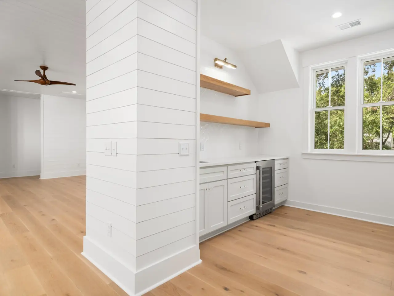 Southern charm exudes from this classic lowcountry home which envelopes you with warmth upon entry. Steps away from shopping and dining in the quaint Old Village area. Only a short 5 minute drive to Sullivans Island beach. Once inside, you will notice the beautiful light that bounces off the huge oak trees scattered over the property. The gourmet kitchen offers a cabinet panel fridge and Thermador appliance package and large island. Just off the kitchen is a beautiful built-in cocktail or coffee bar. The pantry/scullery is quite large and also hosts a brand new Samsung washer and dryer. This area is perfect for hiding all those kitchen appliances and offers tons of storage and prep space for special events/catering. The office is a nice area for working or a quiet place to read a book.The great room offers a fireplace for warm cozy nights and rainy days and is flanked by built-in shelves and cabinets. This home offers dual primary suites so take your pick! The ensuite baths are luxurious and take note of the custom tile showers, luxurious soaking tubs and private Bidet. The enormous second level primary retreat offers multiple options such as, multiple twins, two queens or king and a sitting area. This home features a very large flex room upstairs and a fantastic wet bar with fridge and coffee bar. There are two more bedrooms upstairs with a shared Jack and Jill and is quite spacious with extra built in cabinetry. The yard is shady and has a brand new custom fence. Notice the fire-pit for those chilly nights. This home is equipped with landscape irrigation.The rear deck hosts a fireplace and dining alfresco. This home carries two Rinnai tankless water heaters, and dual thermostats one for each level. Be sure to take a look at the floorplan in the document section to view the layout of this large 4,518 square foot home. The driveway is wide for easy in and out and the front yard offers a special car park with space for 2 additional parking options. This brand new beautiful home is complete and offers immediate occupancy for the new home owner.