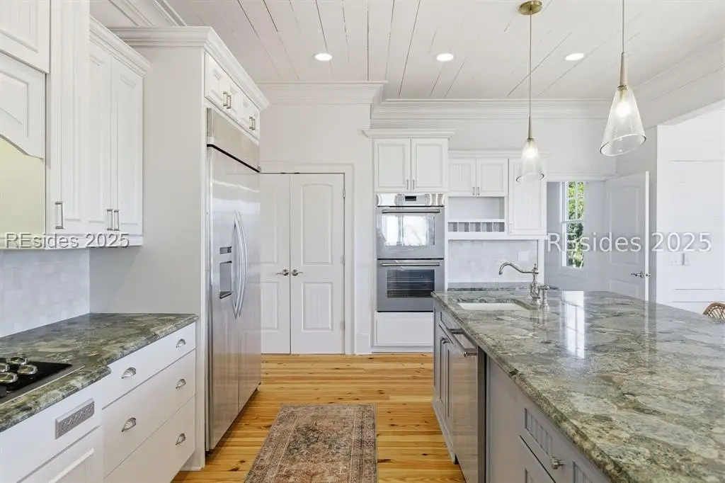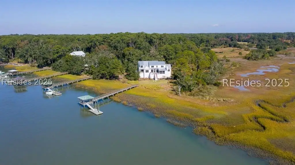 Experience the ultimate in Lowcountry luxury and privacy at this exceptional waterfront home on Daufuskie Island, located in the exclusive community of Bloody Point. Commanding sweeping, unobstructed water views across the Cooper River to Savannah and Tybee Island, this remarkable residence is one of the rare few on the island to enjoy year-round sunsets from both the home and the private deep-water dock. A builder's personal home, this house was beautifully remodeled in 2024 and features 5 bedrooms, 4 full bathrooms, and 2 half bathrooms, all showcasing high-end designer finishes and curated lighting throughout. The chef's kitchen is a true centerpiece, boasting premium appliances, custom cabinetry, and a generous island perfect for both culinary creations and relaxed gatherings. Every detail, from the refined fixtures to the hand-selected furnishings, has been thoughtfully chosen to elevate the home's modern coastal aesthetic. The open-concept living and dining areas seamlessly flow to a large screened-in porch complete with a fireplace--ideal for enjoying cool evenings and expansive river views. Outdoors, a serene patio offers the perfect spot for alfresco dining or morning coffee. The property is further enhanced by its rare private, deep-water dock on the Cooper River, offering direct water access and the potential to install a boat lift for carefree days on the water. A short golf cart ride brings you to one of the most secluded and pristine beaches in South Carolina, where miles of untouched sand await. Optional Haig Point membership extends the lifestyle experience even further, offering world-class amenities including the Rees Jones Signature Golf Course, tennis and pickleball courts, waterfront dining, an equestrian center, fitness facilities, and 24/7 ferry and water taxi service to Hilton Head and Harbour Town. Perfect as a primary residence or serene second home, this is an unparalleled opportunity to own a true sanctuary on a bridgeless island--where nature's beauty, refined luxury, and authentic island living effortlessly converge.