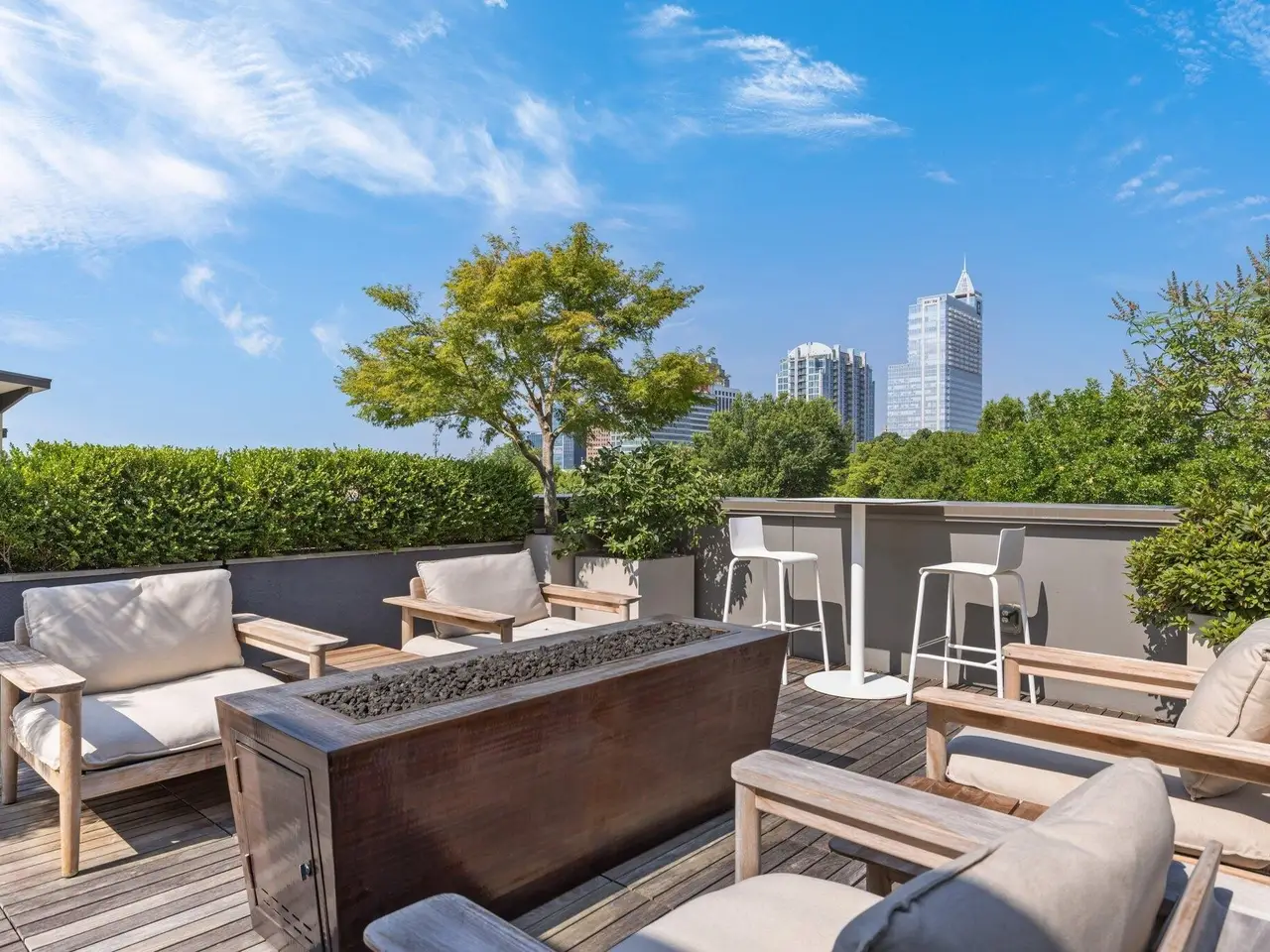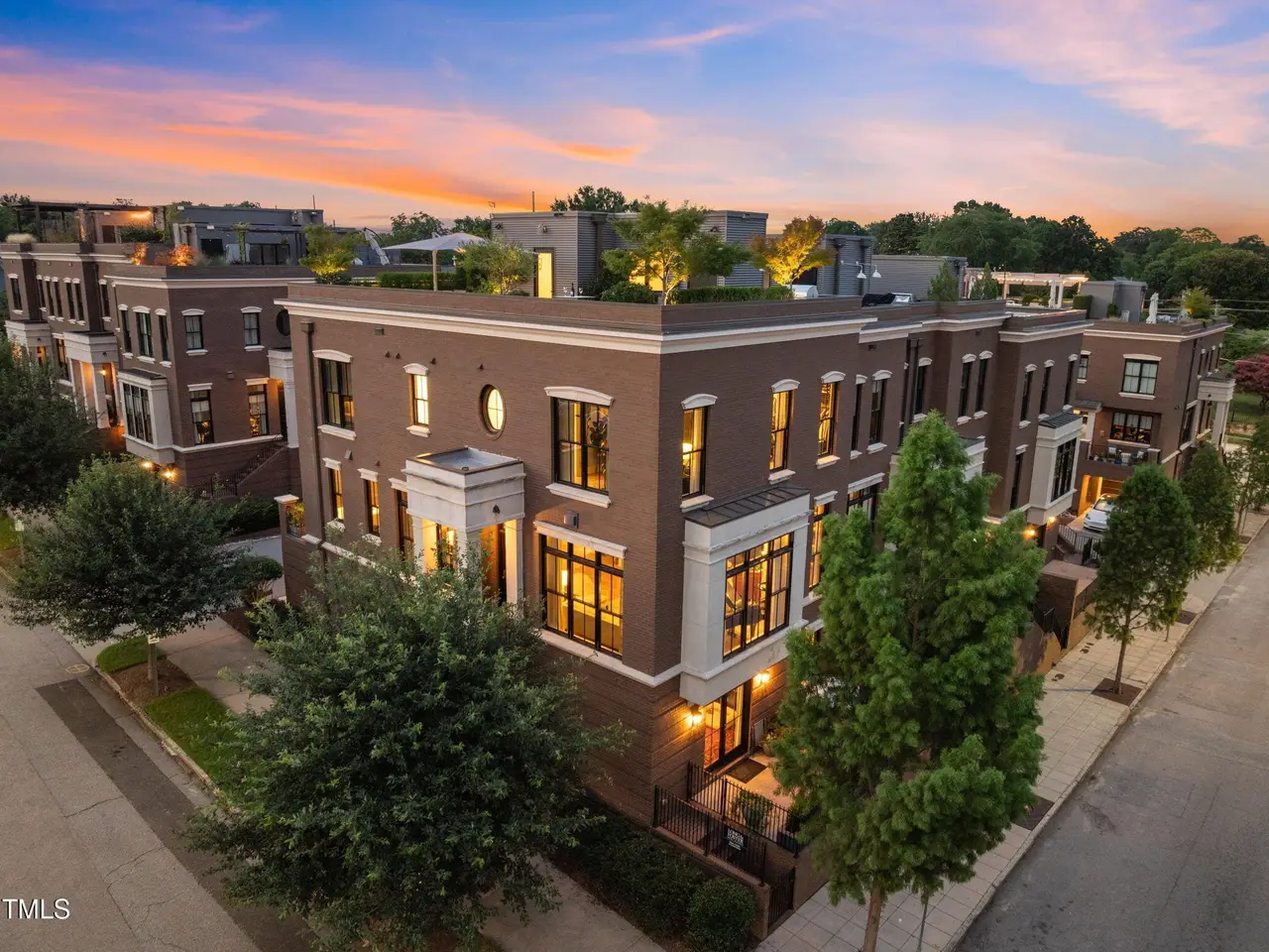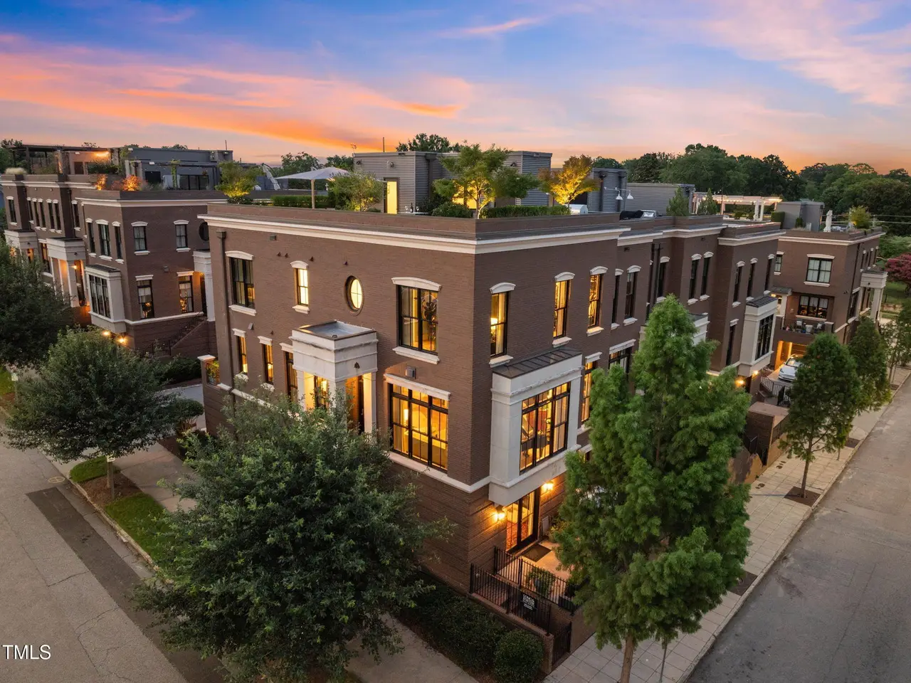 Stunning all brick custom built Brownstone in the heart of Downtown Raleigh, enjoy this light and bright end unit with unobstructed city skyline views from the private rooftop terrace, convenient access to all floors by a private elevator, multiple outdoor spaces surrounded by wrought iron fencing for added privacy, you'll love the chef-inspired kitchen featuring a massive marble top island, hidden refrigerator and freezer and top of the line Thermadoor appliances, quartz countertops and custom pantry cabinet with roll-out shelving, 10 ft. ceilings on the main level to elevate the space, hardwood floors, Sonos speakers, smart thermostats, remote controlled shades, central vacuum, a modern home security system, this home offers 4 bedrooms and 3.5 baths, a private office with built-ins, the primary suite includes dual walk-in closets & a spa-style bath, gorgeous staircase with accent lighting, 2-car garage w/ EV charging station & epoxy floor, Wolf grill station on rooftop, this Brownestone is one of the most thoughtfully designed homes in the area, offering luxury finishes throughout, breathtaking views and unbeatable walkability to all that Downtown Raleigh has to offer, Outdoor furniture & custom window treatments convey