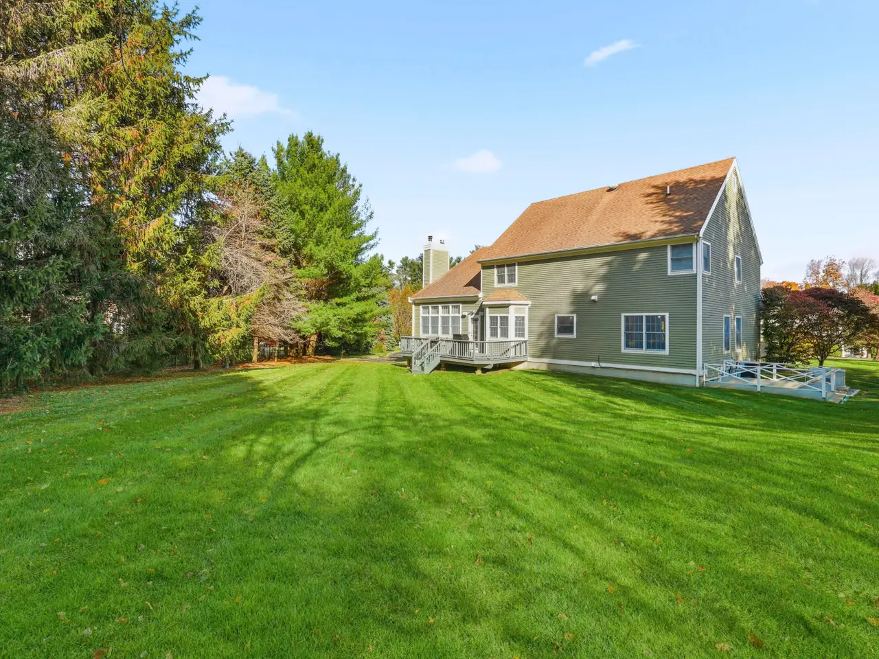Michelle Estates: Welcome home to this Classic 4-bedroom Center Hall Colonial situated on a beautiful level lot with an inviting rocking chair front porch located on a quiet cul-de-sac. Inside you'll find a spacious and thoughtfully designed layout featuring a formal living room, a formal dining room and an updated kitchen with stainless appliances, center island, ample cabinetry and breakfast area. Adjacent to the kitchen is a fabulous family room with high ceilings, fireplace, back staircase, access to laundry room and door to private deck over looking bucolic level back yard perfect for gardening, relaxing and playing. A den/home office adjacent to a full bath is an added main level feature. Upstairs the spacious primary bedroom includes an en-suite bath and large walk-in closet. Three additional bedrooms and hall bath with access to back staircase complete the second level. The fully finished lower level with CO offers a versatile space perfect for a media room, home office, exercise area or recreation room. A full size sliding glass door from lower level opens to the yard providing an easy access to outdoors. This walkout lower level is both functional and flexible- a true extension of this home. Located in a sought after neighborhood this special home offers a safe and quiet setting just minutes from schools, parks and local amenities-a true gem for anyone seeking suburban serenity. Award winning Katonah/Lewisboro Schools and minutes form Ward Pound Ridge Reservation for miles of hiking trails .An added bonus is a full house Generac generator it keeps you comfortable and connected!
