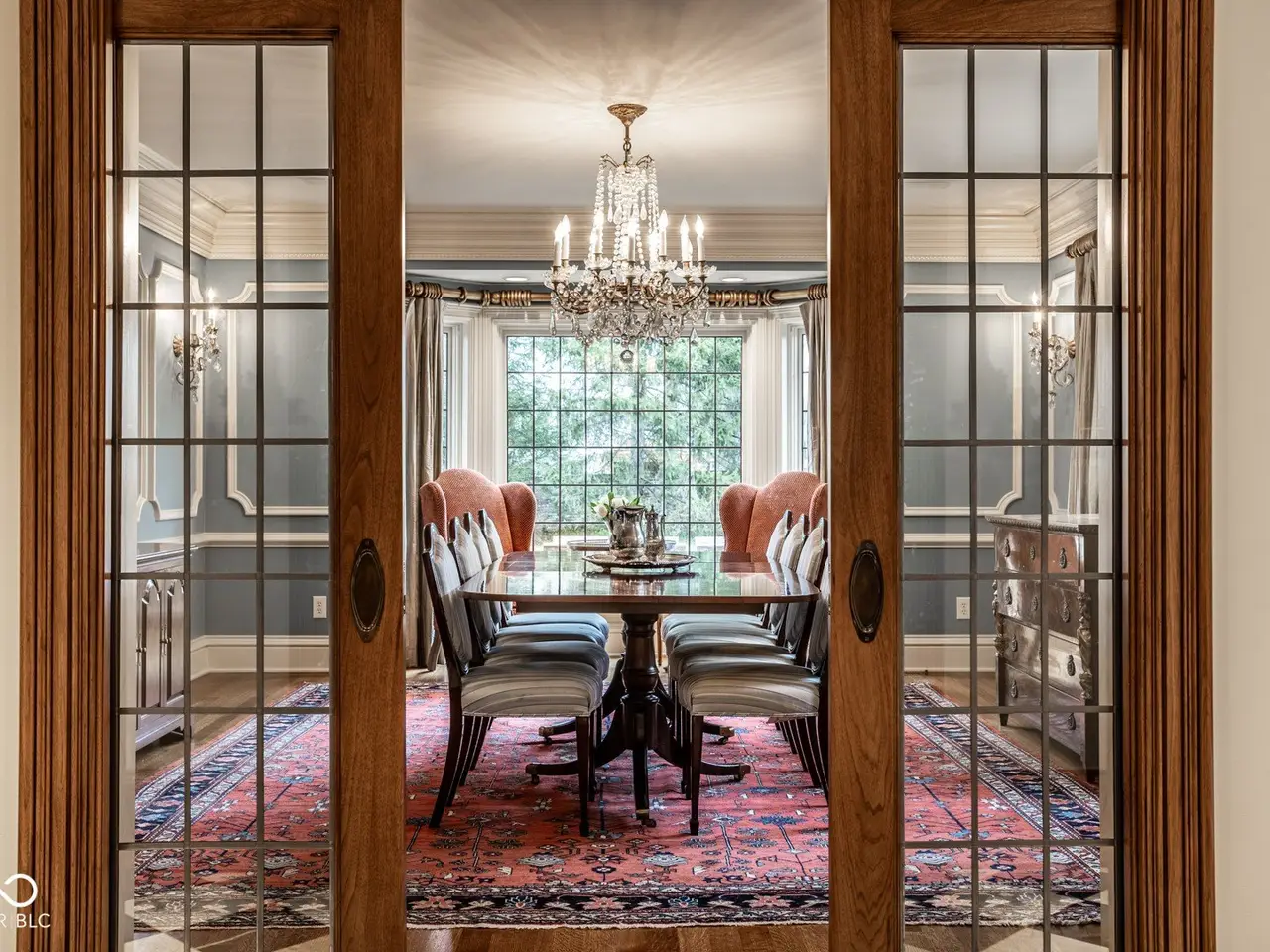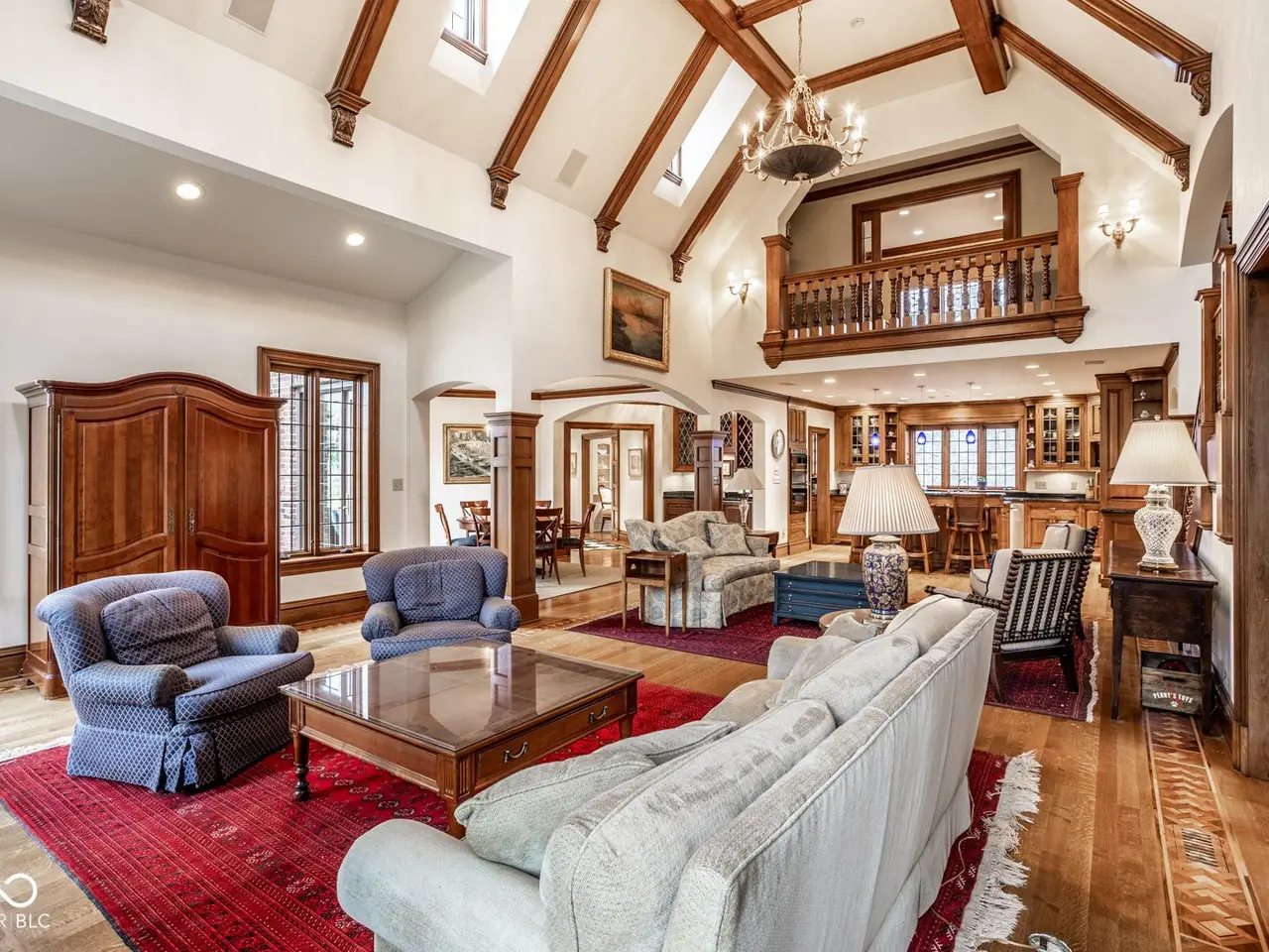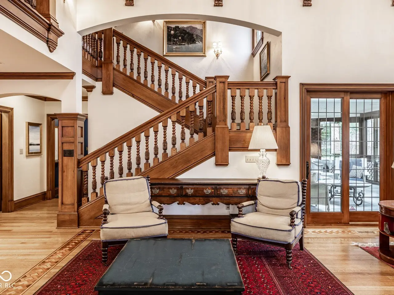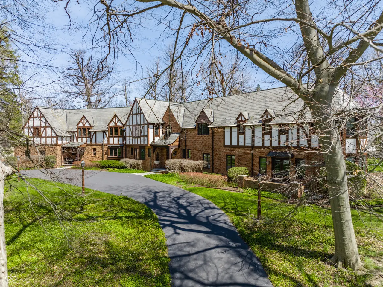 Situated in the heart of Williams Creek along prestigious North Pennsylvania Street, this exquisite Tudor Revival estate spans a breathtaking 1.71 acres. A picturesque approach - crossing a gently flowing creek - sets the tone for the experience that awaits. Thoughtfully envisioned by RWA Architects and Julie O'Brien Design and masterfully crafted by renowned builder Leonard Watson, every inch of this home speaks to timeless craftsmanship and intentional design. Upon entry, the spiral staircase sets an elegant tone, while rich architectural details - from leaded glass windows to intricate millwork and hand-laid hardwood inlays - create a sense of warmth and authenticity. The soaring two-story great room, featuring coffered ceilings and clerestory windows, offers a grand yet welcoming space meant for unforgettable gatherings. Designed with seamless indoor-outdoor living in mind, the great room opens to both a spacious screened-in porch with a skylight and a beautifully appointed patio, complete with a cozy outdoor fireplace - perfect for quiet evenings with family and friends. The main level primary suite serves as a secluded retreat, offering peaceful views of the meticulously manicured grounds. Upstairs, each secondary bedroom boasts its own private en-suite bath and distinctive charm. A versatile playroom caters to all ages, featuring a basketball court and dedicated arts and crafts space. The finished lower level provides additional room for entertainment, whether it's a game of pool or a cozy movie night. Additional highlights include a four-car garage with extra storage, main and second-floor offices, dual laundry rooms, a whole-home generator, a durable slate roof, and so much more. This exceptional home offers a rare opportunity to own one of Williams Creek's finest estates.