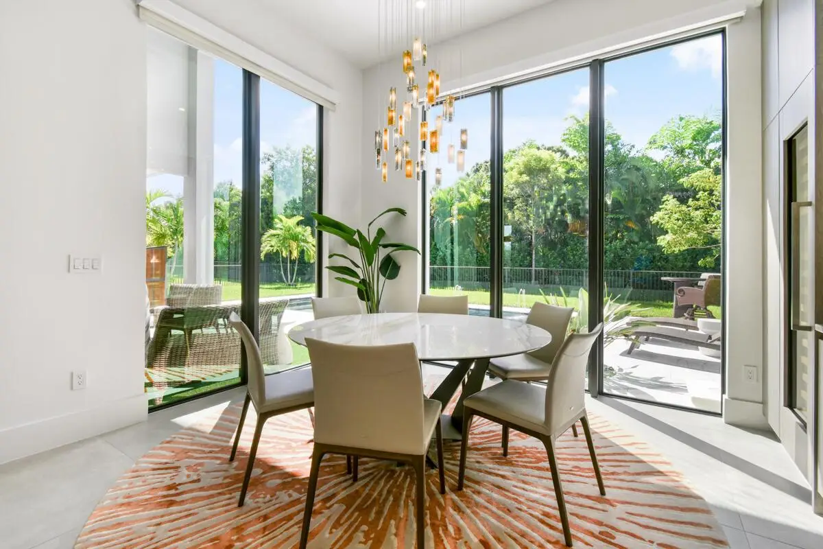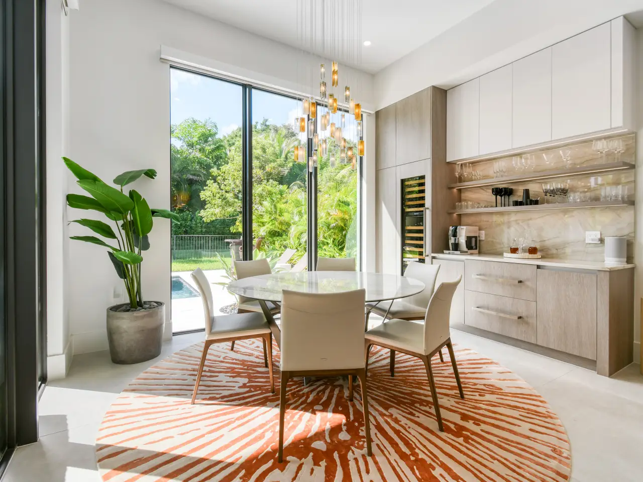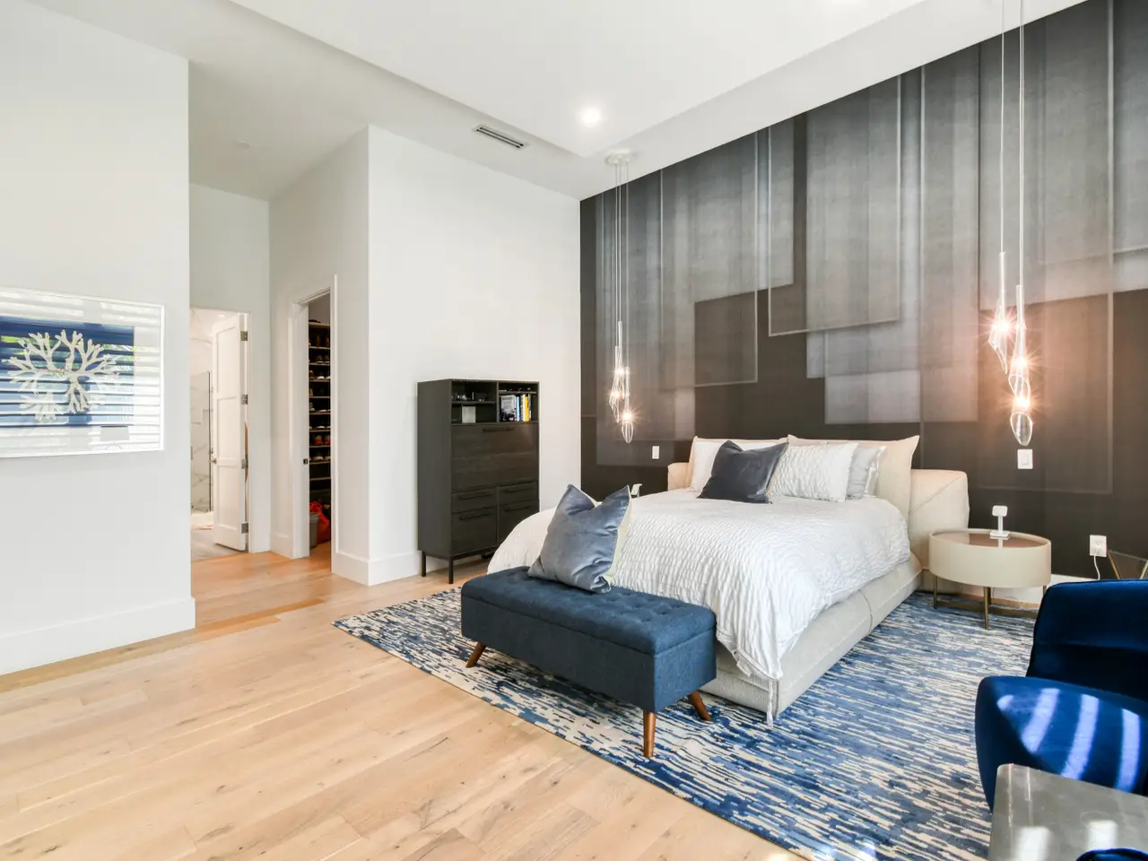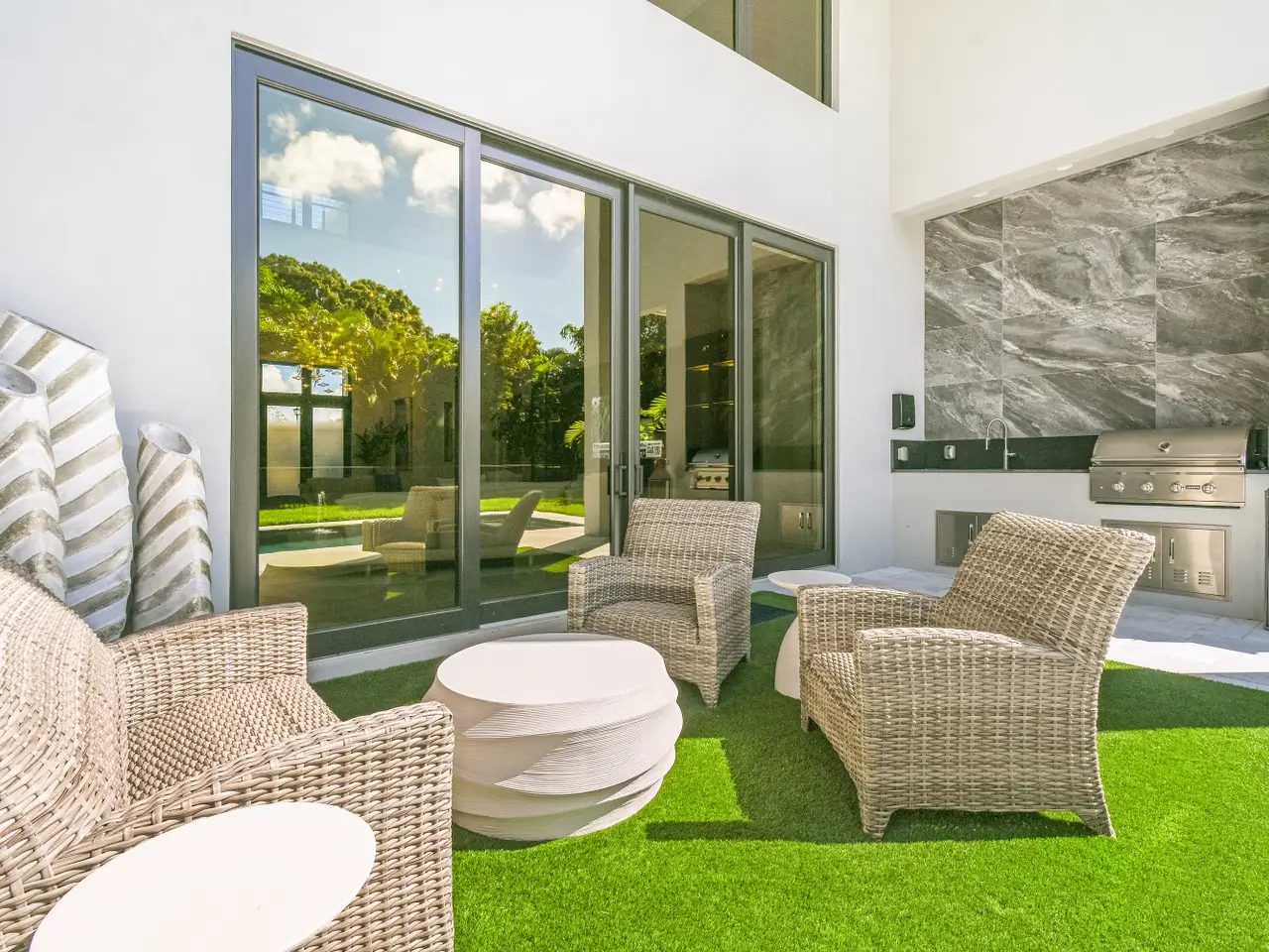 Step into elegance the moment you arrive at 18432 Symphony Court, where luxury and design meet in perfect harmony. This stunning Jupiter estate is the epitome of refined living, meticulously crafted with upscale finishes and timeless sophistication.From the grand entryway, you're greeted by imported designer chandeliers from Italy, suspended gracefully from soaring 25-foot ceilings. These radiant centerpieces illuminate a custom, backlit Italian wall unit with floating shelves, set against a stunning silk wallpaper backdrop, offering a dramatic yet elegant welcome.The open-concept layout is anchored by ravishing 48'' x 48'' porcelain tile flooring that flows throughout the main level.