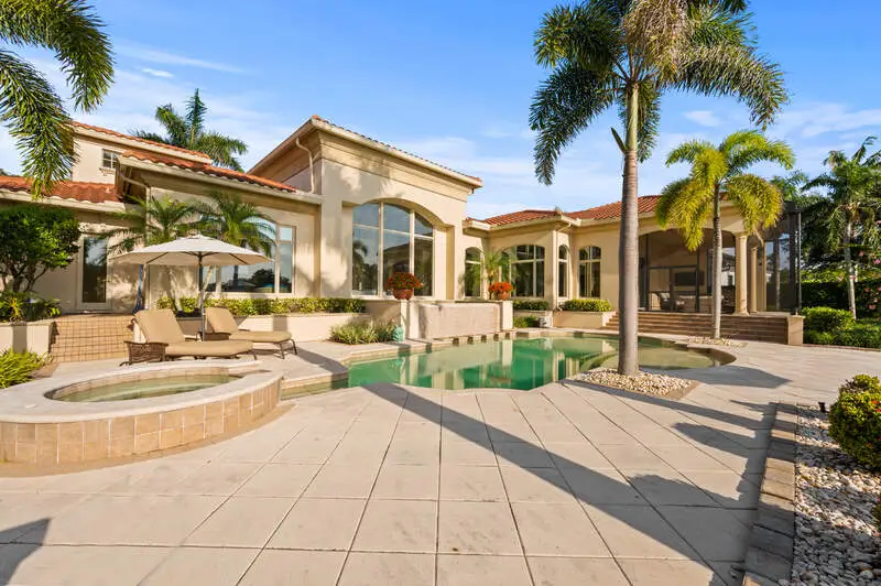 TRANSFERABLE GOLF MEMBERSHIP AVAILABLE! Skip the waitlist and pay only a transfer fee! Ideally situated in the prestigious community of Quail West, this impressive residence offers a thoughtful floor plan complemented by expansive outdoor living spaces including a screened lanai and spectacular golf and sunset views. The luxurious primary suite is uniquely designed with dual en suite bathrooms connected by a shared sitting area creating a tranquil retreat of privacy and comfort. Three additional guest suites offer plenty of space for visitors too. Perfect for entertaining, the open-concept great room flows seamlessly into the chef-inspired kitchen, which features an oversized island, breakfast bar, dual prep sinks, and a walk-in butler's pantry complete with a beverage refrigerator. From terrazzo flooring and tray ceilings to a cozy fireplace and dramatic floor-to-ceiling windows, every detail of this home speaks of refined elegance. The screened lanai includes a covered seating area with an outdoor kitchen, and the custom pool-with integrated spa and sun shelf-is strategically positioned to maximize sun throughout the day. The spacious three-car garage provides ample room for vehicles, a golf cart, and all your Florida lifestyle essentials.