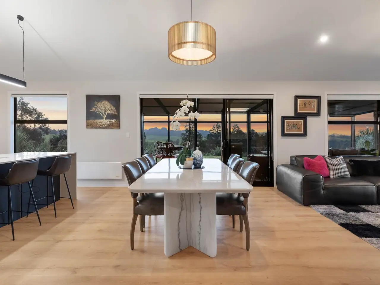 HIGHLY MOTIVATED SELLERS - READY TO RELOCATEQuality built by Build with Titus less than four years ago, this 240 square metre (approx) Axon Panel and Cedar constructed home is located on 3,124 square metres with a flat to contoured gradient. Recently installed electric gates open to a concrete driveway leading to a spectacular architectural home. Its sleek lines and refined form create a refreshingly unique residence where effortless sophistication flows from room to room, spilling outdoors to resort-style entertaining. Covered decks and open air patios wrap around the family living areas and master suite, connecting seamlessly with the heated, north facing mineral pool and its expansive alfresco surrounds.The extras are all here, feature LED lighting, Low-E double glazing, pitched and 2.55m ceilings, data cabling, under-floor heating in the bathrooms. Attractive light-toned timber floors grace the high traffic areas including the exemplary open plan kitchen, an entertainer's delight with engineered stone benchtops, glass splash-backs, waterfall bench and breakfast bar, abundant soft close cupboards and drawers, a 900mm Smeg stove and an excellently out-fitted walk-in pantry. To one side an inviting bar stands ready to serve while behind the kitchen a luxurious media room with a hidden door is the perfect place to relax.Picture windows, sliding doors, and bi-folds flood the adjoining dining and family living areas with natural light. A sun-filled glass conservatory off the living area provides an inviting space to relax and enjoy the glorious countryside views, while also opening out to picturesque dining and supreme entertaining. Making its own artistic statement, the wood storage alongside the full-height built-in fire is both attractive and functional.Four bedrooms include the sun-drenched master with a window wall opening out to one of the numerous decks and those tranquil views. This incorporates an ensuite with wall-hung vanity, under-floor heating, a super-sized shower and an outstanding walk-in robe with make-up station. The further three light-filled bedrooms share a large family bathroom, also with under-floor heating and wall-hung vanity, plus a glass + tile shower and a separate bath. There's a spacious office, a separate powder room with underfloor heating and a laundry with built-ins which shares the large double lock up garage.Outdoors, the pool house includes a bathroom, storage, and a rumpus or studio room, providing versatile additional space. There’s also a wood shed, a pump shed, and a garden shed positioned beside the fully fenced heated mineral pool with its stylish deck and patio recreational surrounds. The perfect relaxation destination! With flair to spare this indoor-outdoor exhibitionist complete with resort amenities has it all!• 4 year old 240m2 (approx) elevated home on 3124m2• Serene views across surrounding rolling countryside• LED lighting, Low-E double glazing. Data cabling• Stunning open plan living. Picture windows, sliding doors & bi-folds• Entertainer's dream kitchen & walk-in pantry. Bar. Media room• Wrap around covered decks & al fresco patios. Glass conservatory • Adjoining poolside recreation, Expansive leisure surrounds• Sparkling heated fully fenced mineral pool• Pool house with bathroom, storage, & rumpus or studio room• Sumptuous master floor under-floor heated ensuite, walk-in robe, patio• + 3 bedrooms with built -in robes. Floor heated family bathroom• Powder room with underfloor heating• Laundry + built-in storage incorporated in garage• Double lock up garage/marine carpet. Extra parking for boat/caravan etc.• Alarm system. 2 x 25000L water tanks• 1.9km to Ararimu School / 21.3km to ACG Strathallan School• 9.3km to motorway access at Ramarama• 37.3km to Auckland Airport / 48.7km to Auckland CBD Auction: 177 King Street, Pukekohe (Branch Office) on Thursday 20 November 2025 at 2:00PM (unless sold prior)