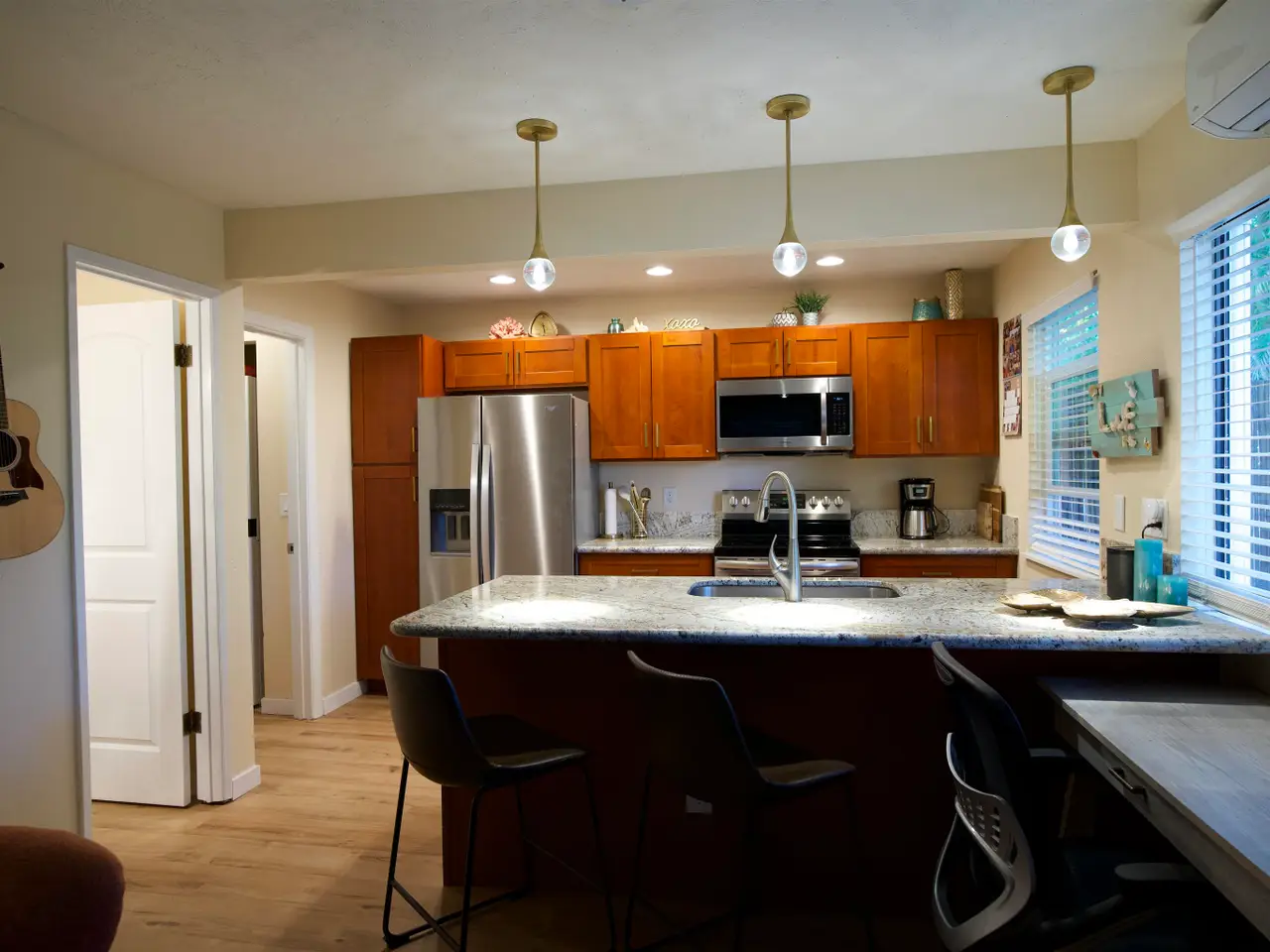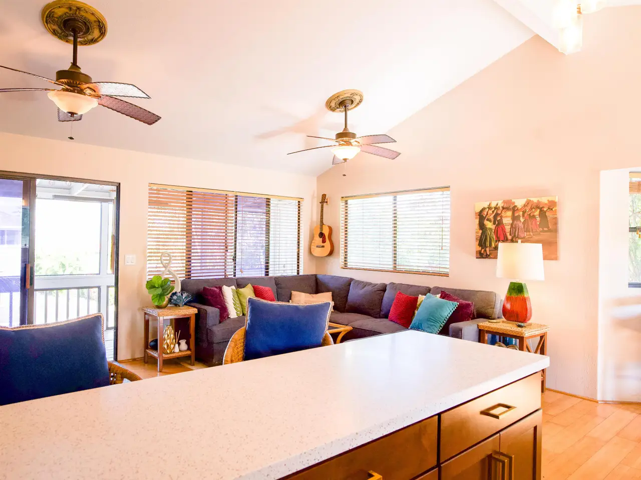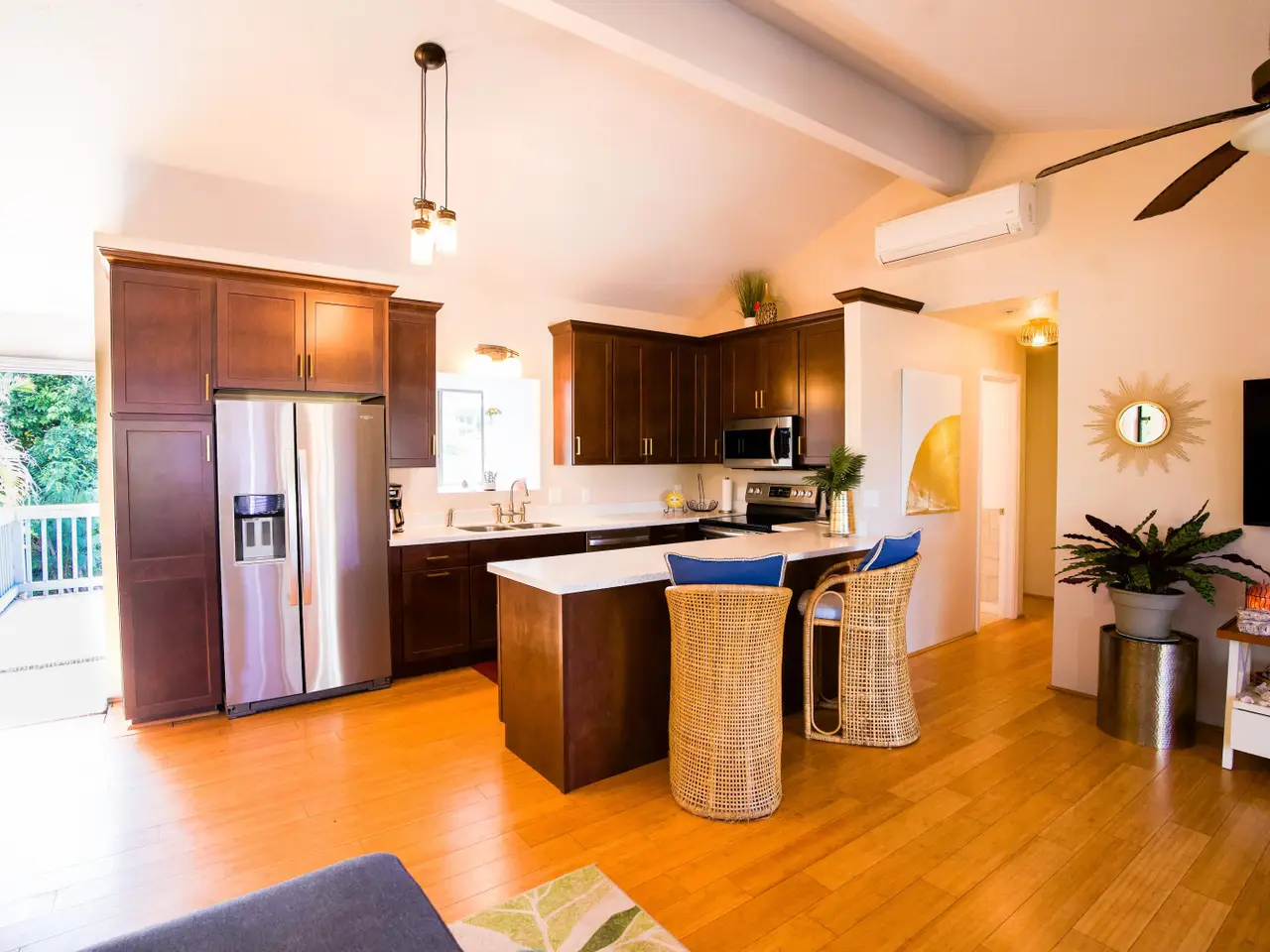 South Maui Dream Home Awaits! Welcome to your idyllic retreat at the end of a peaceful cul-de-sac, where tranquility meets modern living. This beautifully updated home boasts soaring high ceilings and an expansive screened-in porch, providing the perfect space to relax and enjoy the gentle Maui breezes. Designed for both comfort and sustainability, this property features a state-of-the-art photovoltaic system that enhances energy efficiency, complemented by a split system air conditioning to keep you cool year-round. The fenced yard offers a private oasis for unwinding in your own slice of paradise. Bonus feature of this property is the charming one-bedroom, one-bath ohana located downstairs, complete with its own private entry and laundry facilities. This versatile space is perfect for guests, extended family, or as a rental opportunity. Situated just moments away from the world-renowned beaches of South Maui and the luxurious amenities of Wailea, you’ll have easy access to pristine sands, exquisite dining, and boutique shopping—all within a short drive. Additionally, there’s an approved plan for a detached cottage, which can be included in the sale. Embrace the beauty and serenity of South Maui in this exceptional home, where every detail has been thoughtfully considered. Don’t miss your chance to make this dream a reality!