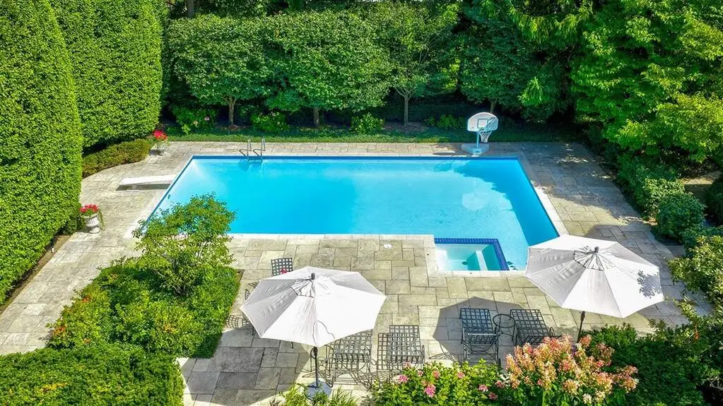 If My Best Friend's Wedding had a sequel...it would be filmed right here. This coastal Colonial estate set on 1.4 acres of lush, manicured grounds on premier Woodley Road offers the ultimate backdrop for timeless North Shore living. Elegant, welcoming, and effortlessly cinematic, it's the kind of home where every day feels like a scene straight out of a movie. A rare generational opportunity, this pristinely cared-for home features over 7,500 square feet of finished space & a floor plan that flows effortlessly from one sunlit room to the next. Wonderful features include a Chef's kitchen that opens to a great room, endless bluestone patios, vibrant gardens, and a sparkling pool oasis, creating an entertainer's dream. Step inside the gracious, light-filled foyer, where your eye is immediately drawn through the elegant living room picture window to the breathtaking private grounds creating instant tranquility. Formal dining room flows gracefully into the heart of the home: an inviting Chef's kitchen where classic design meets casual comfort w/quality custom cabinetry, massive island with seating for 5 and separate breakfast area. Great room accented with skylights and oversized windows naturally brings the outside in. Get cozy around the FP framed by fine built-ins creating the perfect place to unwind as this space is so inviting. To the other end of large first floor is the formal office, the ultimate private retreat with rich wood paneling & built-ins and opens to a cozy sitting room. Best yet, a spectacular sunroom with a full bath and hot tub solarium overlooking the beautiful outdoors. Expansive 2nd floor with five bedrooms including a luxury primary suite with a spacious bedroom, massive walk-in closet & crisp, sunlit white spa bath with dual vanities, soaking tub, and separate shower. 2 family size beds with ensuite neutral baths and the other 2 beds share a hall bath. Full 2nd floor laundry and awesome large play/rec space allows for many other options. Lofted finished space on 3rd level is now storage but can be studio/ 2nd office. The back staircase leads to spacious lower level with second rec room. Completing this exceptional home is a rare 4-car attached garage and an oversized mudroom/utility space waiting for your design touch. Surrounded by enchanted private gardens, sun-drenched interiors, and expansive bluestone patios, 145 Woodley Road captures the essence of quintessential North Shore living-so cinematic, it feels like a movie set... yet it's real, and waiting for you.