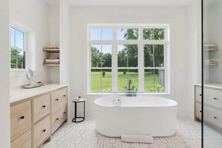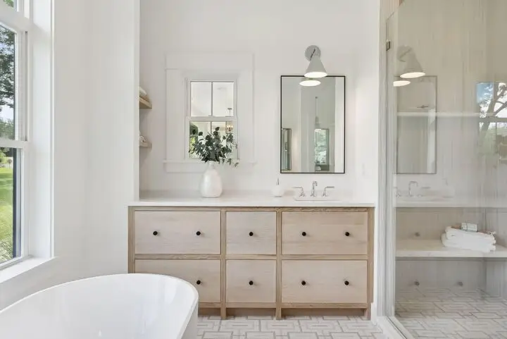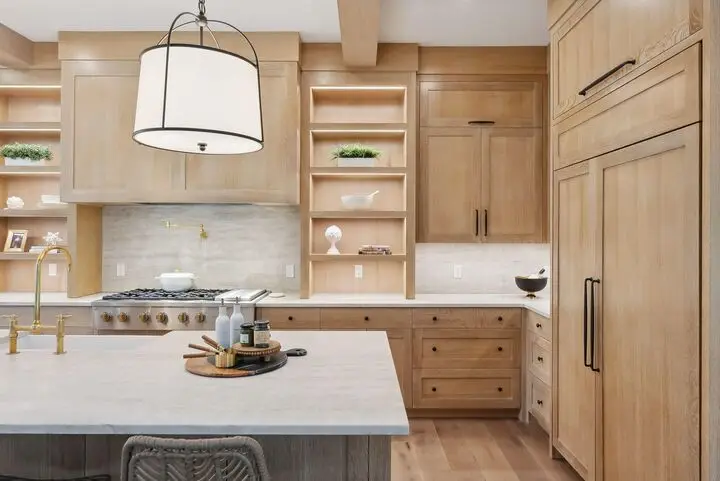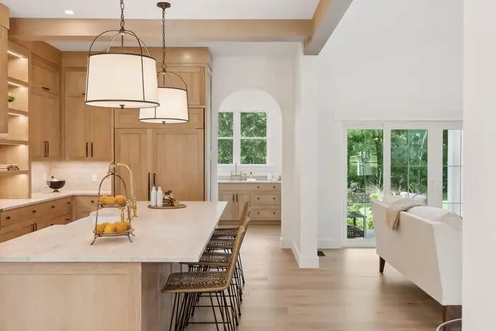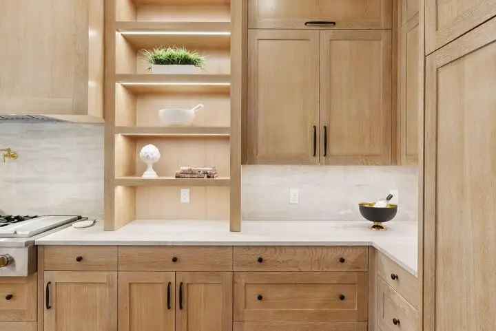 • Custom white oak cabinetry