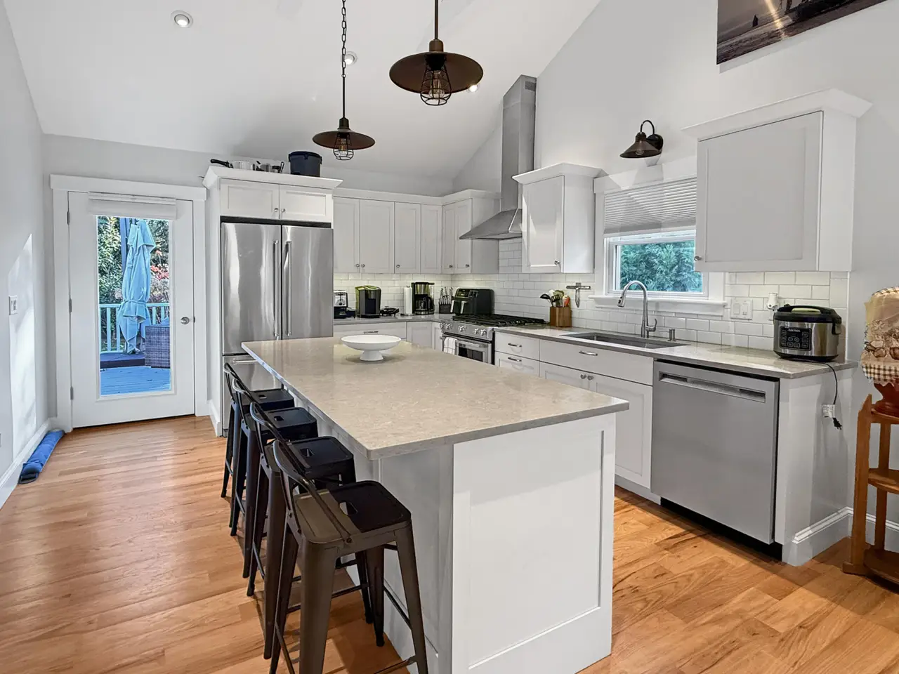 Thoughtful details and high-end finishes shine throughout this four-bedroom, two-bath Vineyard Haven residence. Its versatile layout offers both flexibility and functionality, appealing to buyers seeking a comfortable single-family home or the potential to create a separate accessory dwelling unit. No expense was spared on the beautifully landscaped yard, which features a fire pit, a large storage shed, and raised garden beds. Elegant hardscaping elevates the exterior and provides multiple inviting outdoor living spaces. Located in a quiet neighborhood, the property offers privacy while remaining close to Tashmoo, the boat landing, and downtown Tisbury's shops and restaurants. A home to take pride in.