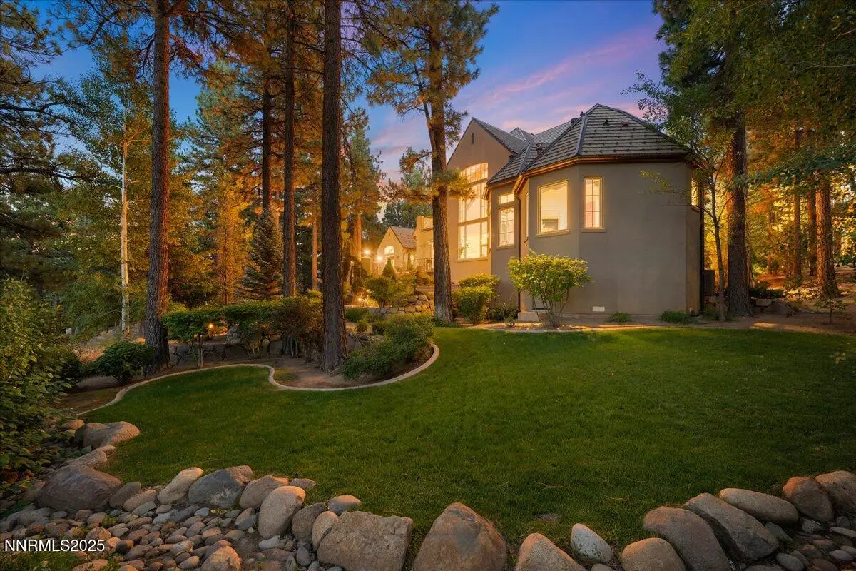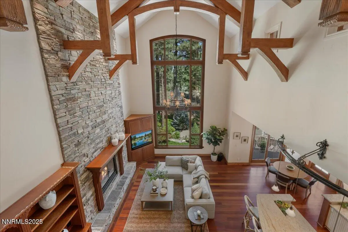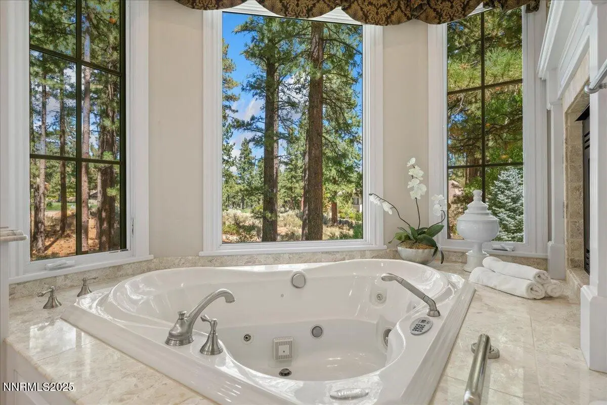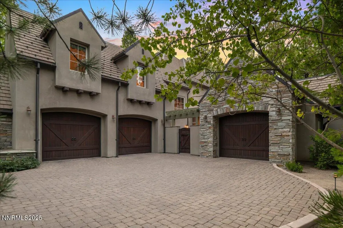 Elegant custom estate in Montreux that sits at the end of a cul-de-sac on the 13th Fairway of the Jack Nicklaus Signature golf course. This home has Hydronic heating on all floors, plus forced air backup. The Great room has 26' custom fireplace and open beam trusses, Brazilian cherry flooring with a new Lutron lighting system. While in the home you are in a beautiful mature forest setting. Main floor has the primary bed/bath, guest suite/bath, living room, kitchen, great room, dining room, laundry room, garages, deck and a Sunroom. Upstairs are 2 bedrooms, 2 bathrooms, office and game room/study. Epoxy floors are in all of the garages. Great floor plan by a renowned local architect.