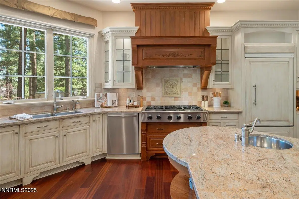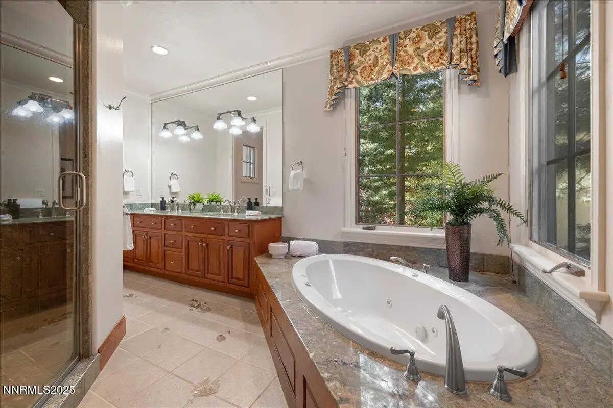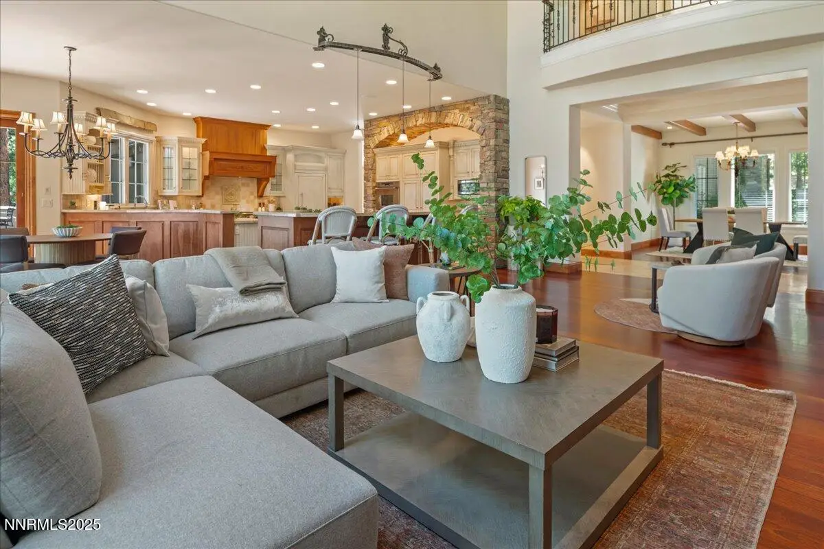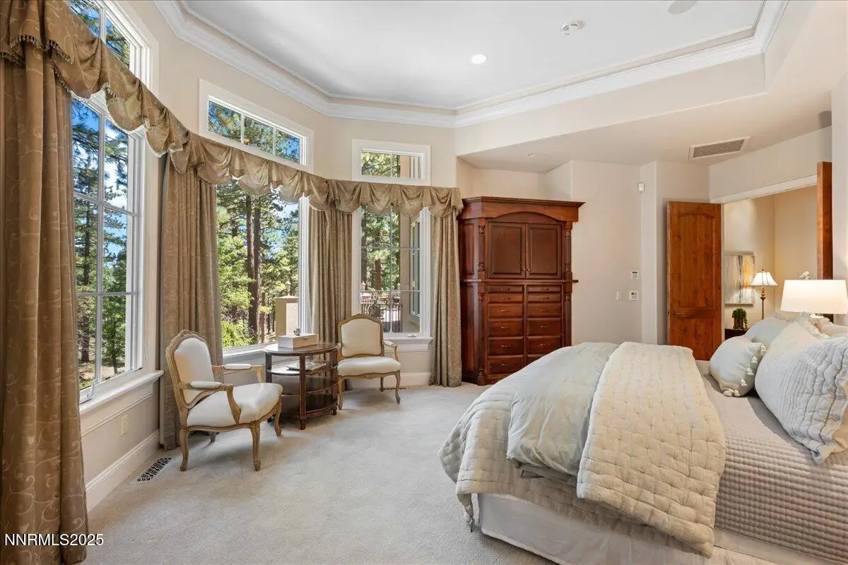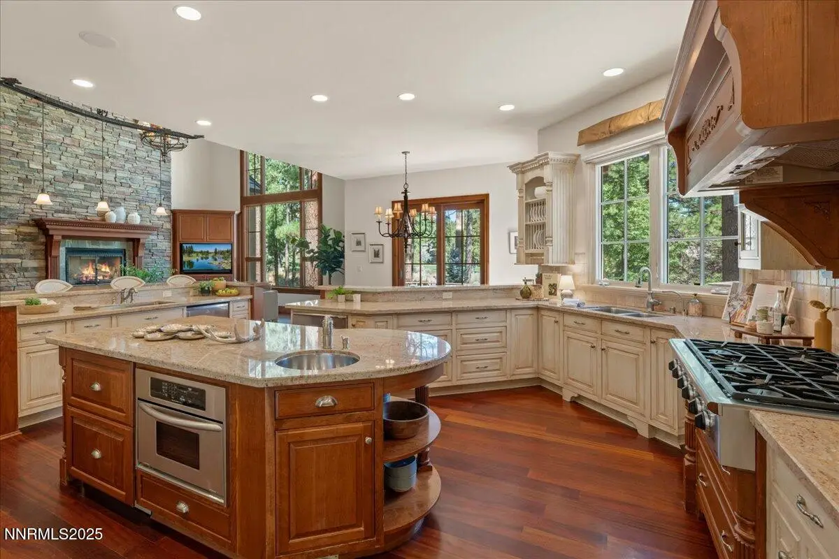 Elegant custom estate in Montreux that sits at the end of a cul-de-sac on the 13th Fairway of the Jack Nicklaus Signature golf course. This home has Hydronic heating on all floors, plus forced air backup. The Great room has 26' custom fireplace and open beam trusses, Brazilian cherry flooring with a new Lutron lighting system. While in the home you are in a beautiful mature forest setting. Main floor has the primary bed/bath, guest suite/bath, living room, kitchen, great room, dining room, laundry room, garages, deck and a Sunroom. Upstairs are 2 bedrooms, 2 bathrooms, office and game room/study. Epoxy floors are in all of the garages. Great floor plan by a renowned local architect.