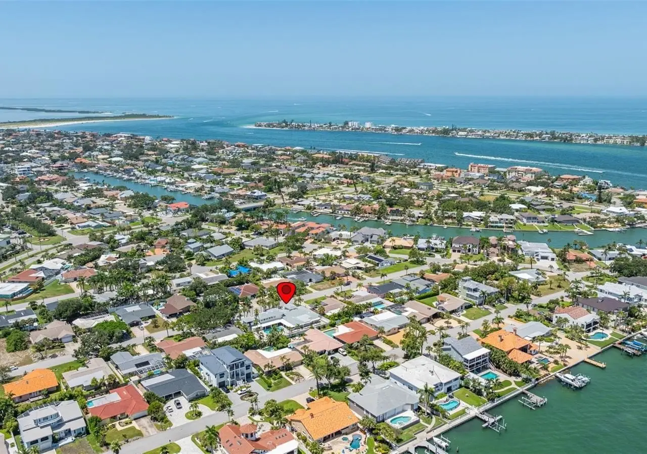Elevated above the street on an expansive double lot, this stately, freshly painted Tierra Verde residence offers stately curb appeal, generous scale, large private pool backyard, and outstanding potential. A paved driveway leads to the inviting porch with entry door and continues onto oversized garage and offers ample surface parking—perfect for showcasing a collection of vehicles. Step into the soaring foyer and discover a home thoughtfully designed for comfort, entertaining, and everyday lifestyle. To the left, a custom theater room seats up to eight. To the right, a private office with built-in closet space and substantial desk easily converts to a fifth bedroom. The open-concept living and family room centers around a stylish wet bar and media wall, flowing seamlessly into a chef-inspired kitchen. Outfitted with dual high-end refrigerators, two dishwashers, a large electric cooktop with chef’s rack, dual sinks, granite countertops, and extensive cabinetry, current dining table seats 12, this kitchen is enormous, functional and impressive. A wall of sliders ready to entertain open to a fully fenced, completely private backyard oasis featuring a sparkling pool, shaded lounging areas, ambient lighting, and an outdoor kitchen. Low-maintenance landscaping front and back allows effortless enjoyment of the lush island surroundings. The conveniently located main-level primary suite features custom built-ins, a walk-in closet, and a spa-style bath with Jacuzzi tub, walk-in shower, and smart commode. A guest bedroom and the convertible office complete the downstairs with a nearby half bath. Upstairs, two spacious guest bedrooms are connected by a loft—ideal as a media space, playroom, or kitchenette—along with a stylish full bath and a large walk-in closet/bonus room. The oversized garage is a standout, offering premium red-and-black craftsman cabinetry, utility sink, ceiling beam for lifting equipment, and space for up to five vehicles. With direct access to the side and rear yard, it’s a dream setup for car collectors or hands-on enthusiasts. With its exceptional privacy, flexible layout, zero hurricane or flood damage, and generous footprint, this residence offers rare value and opportunity in one of Tierra Verde’s most sought-after island communities—ready for a personalized touch to bring it to its full potential. Roof 2023. Located 10 mins from downtown St Pete, 30 mins to TPA, 10 mins to Ft DeSoto Park & Beaches