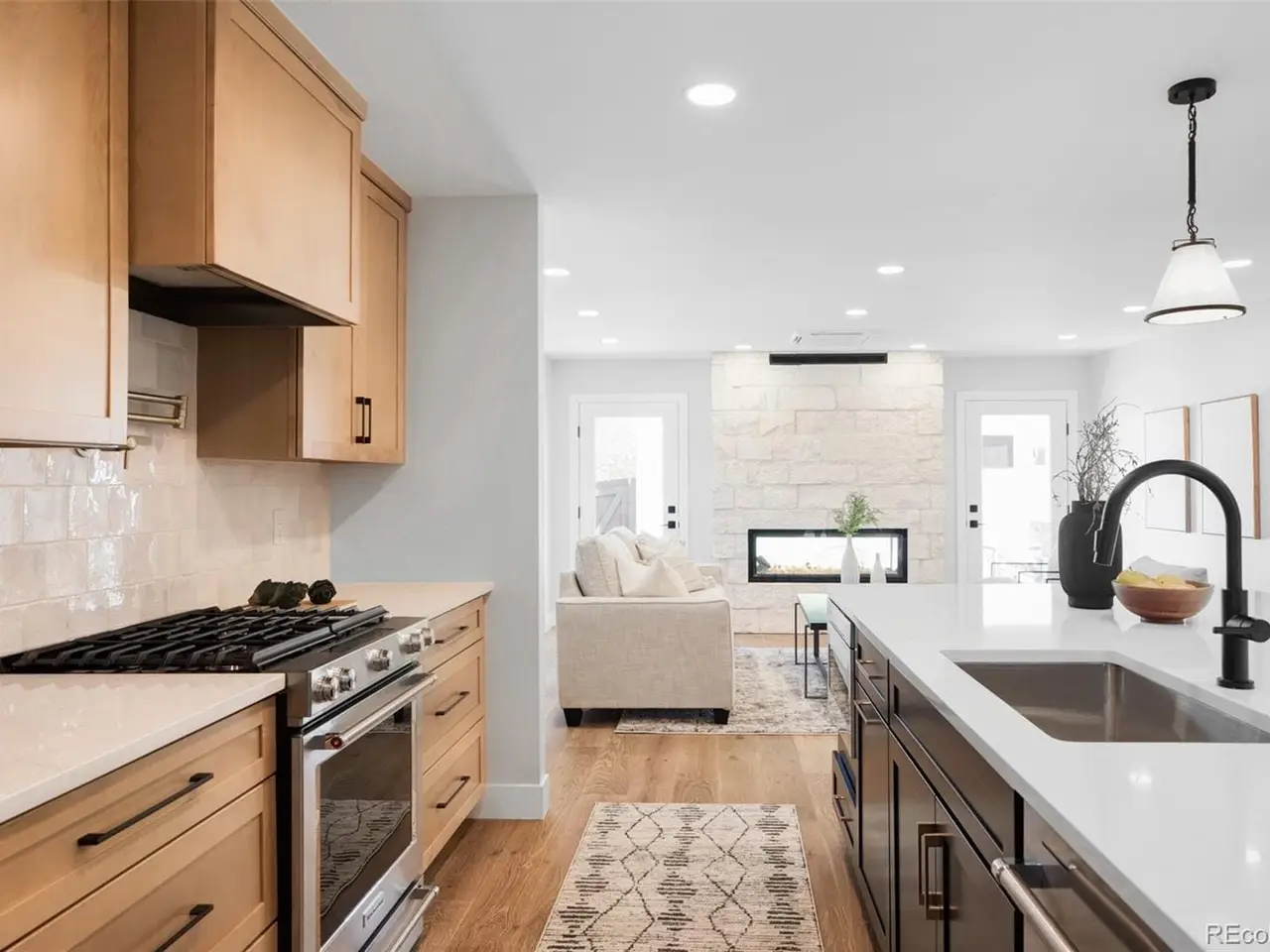 LOWER HIGHLANDS - Rare New Construction Single Family Home in the coveted LoHi with 4 beds, 4 baths and almost 2600 sq ft of ALL ABOVE GRADE living space. Situated just blocks from coffee shops, top Denver restaurants and Highlands retail. * Professionally Designed and Built with a Meticulous Builder * Unique Stone and Stucco Exterior and Interior Layout (truly one of a kind) * Luxurious Living room with double-sided gas fireplace and two doors to the outside patio * Chef's kitchen with pro appliances, custom wood cabinetry, wetbar, and oversized 10' island - perfect for entertaining * Tons of natural light and hardwood floors throughout the main level. * Dining room open to kitchen and living room * Entryway from detached garage has mudroom w/ built in storage and a bench. * Upper level features spacious owner's suite with hardwood floors, private balcony, large walk-in closet & 5-piece bathroom with soaking tub and walk-in shower * Two (2) more bedrooms with full bath on primary suite level * Laundry and storage room on level with bedrooms * Top level has a guest suite, full bathroom, and entertainment space * Roof Deck reinforced for hot tub w/ water and gas hook-ups * Fully Fenced Private Back Patio and Fully Fenced in Front Yard * This designer home comes with an EV charger, 2 balconies / terraces, tons of entertaining space, main level bedroom or office * Hard to find a single family home with this many customer features just blocks from all that the Highlands and LOHI has to offer!