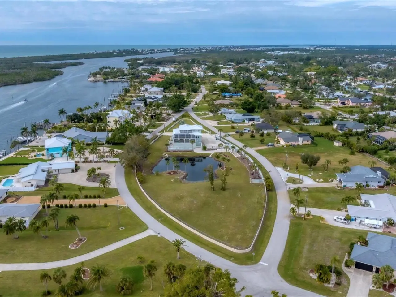 Incredibly rare gated compound in the historic Vanderbilt developed neighborhood of Cape Haze. Beautiful Mediterranean style home is across the street from the Intracoastal Waterway with sensational partial views and a brand new standing seam metal roof. The spectacular property grounds include about 1.76 acres, an expansive circular driveway, oversized three-bay garage, a private manicured lagoon with fountains, a gazebo/picnic area, 2,000 square foot screened lanai with an elevated pool and eight-person spa that affords views of the water, all surrounded by 1,500 feet of privacy wall. The grand interior features about 3,500 square feet, three bedrooms and bathrooms, private office/den, 22 foot ceilings, and a completely renovated kitchen with custom cabinetry. The acreage and zoning allows for a second home to be built or a portion to be subdivided. Much of Hurricane Ian repairs have been completed but there is some drywall, flooring, paint and trim work needed. Its a great situation for someone wanting to have a like-new home with their own custom design style and not have to wait more than two years for a new construction. The elegant neighborhood showcases tree-lined streets with towering banyans and large-acreage properties. A short walk to the Association kayak launch or quick boat trip to the 400 feet of private beach that's next to the Don Pedro State Park. Enjoy the ultimate coastal lifestyle being just minutes from Boca Grande, miles of pristine sandy beaches, three full service marinas, essential shopping, plentiful dining options, dozens of golf courses, and world-class fishing and boating.