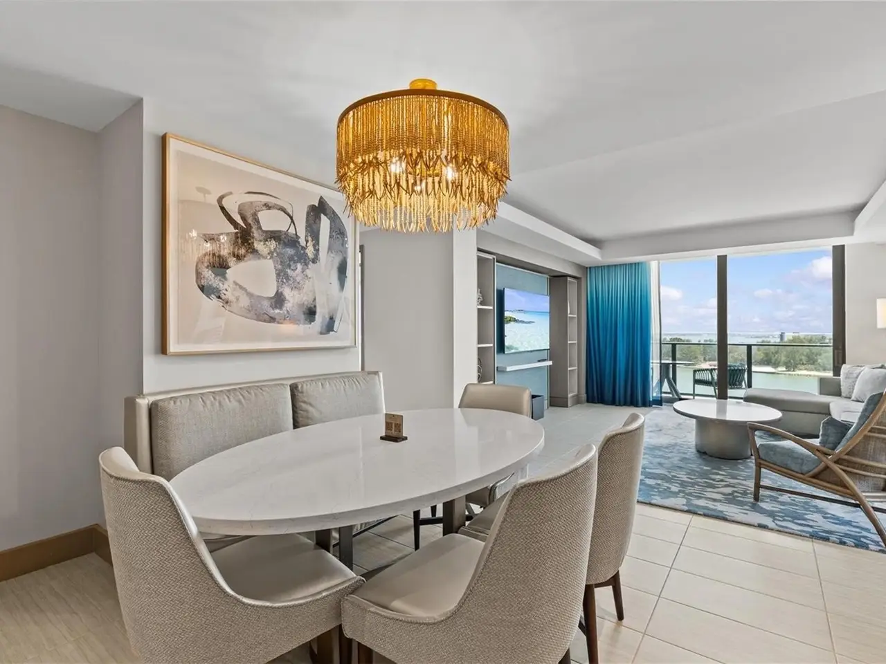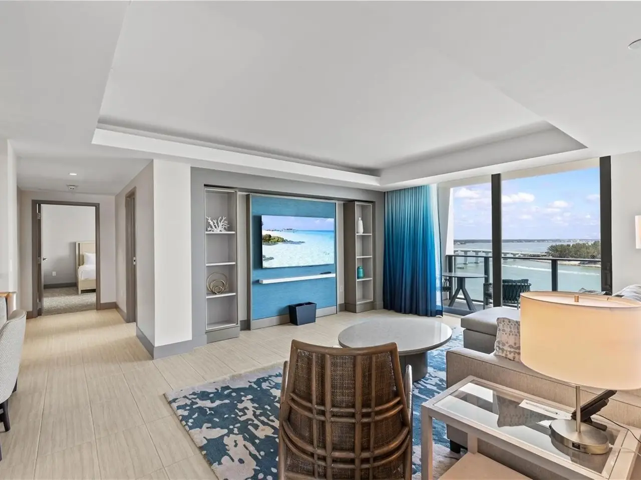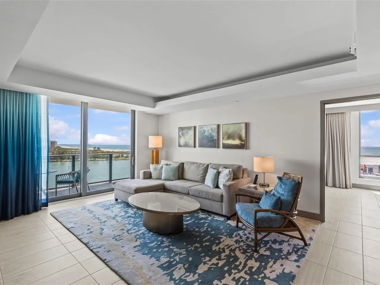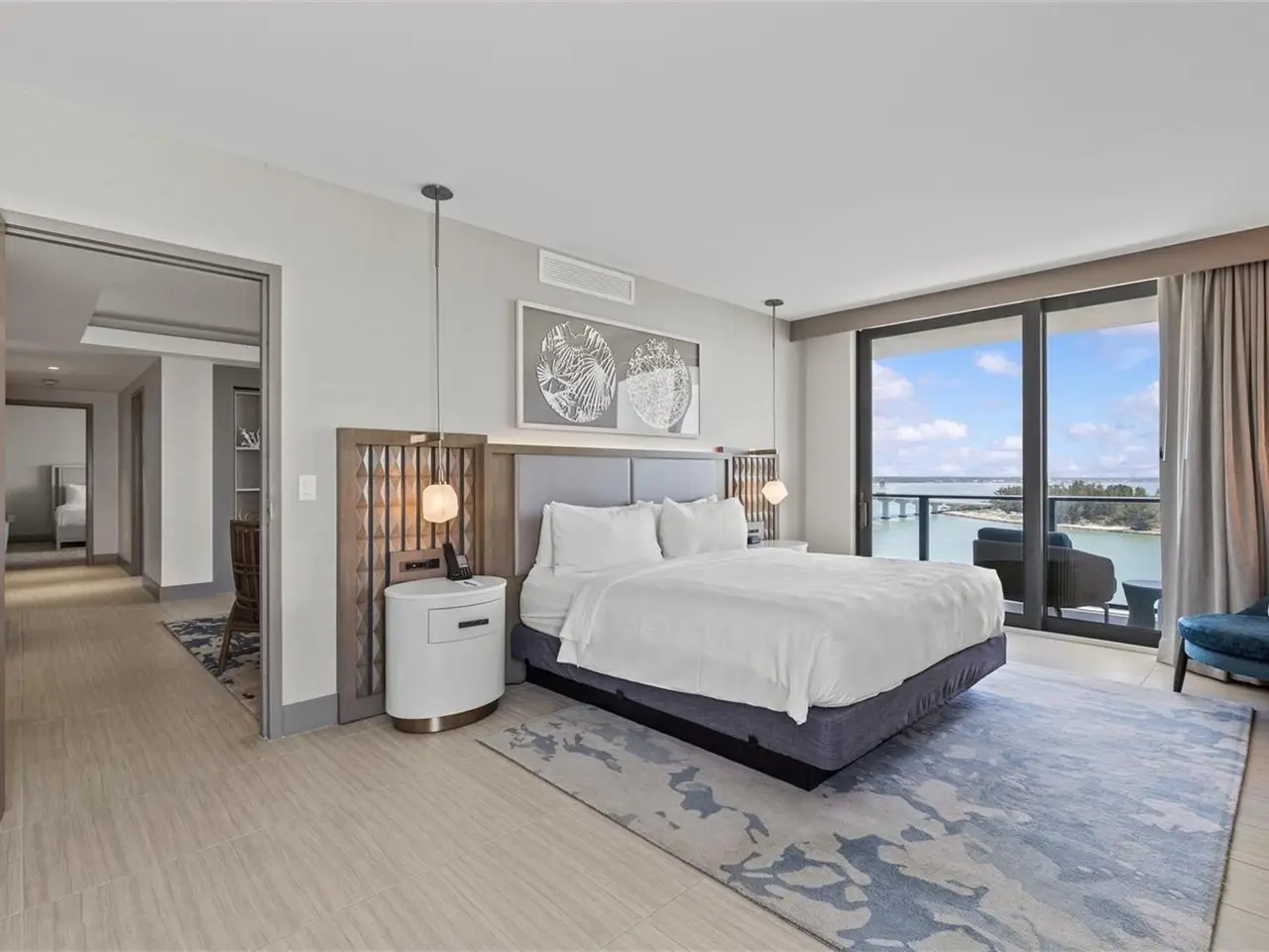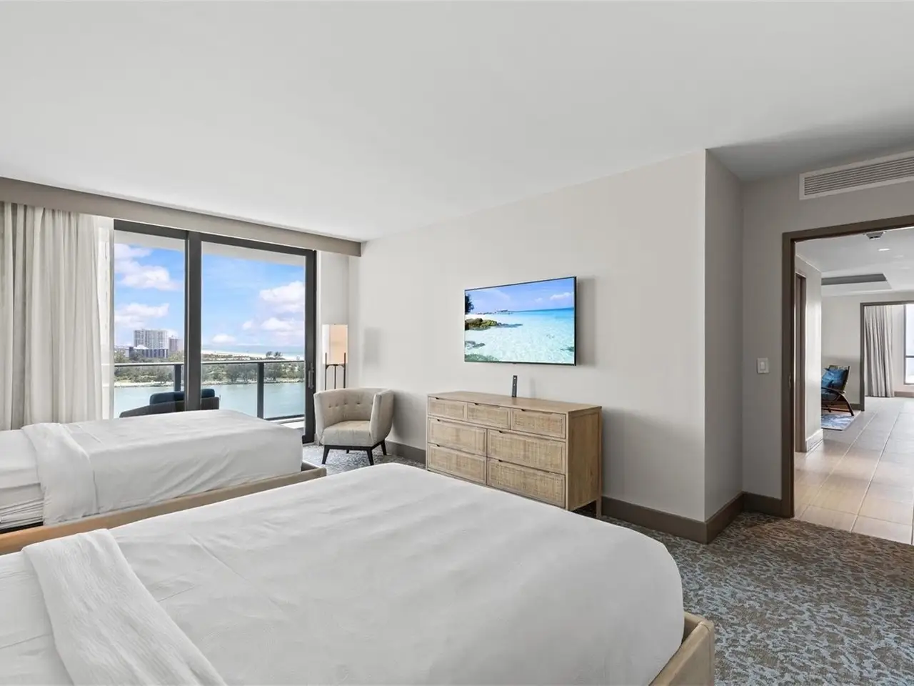 Experience elevated coastal living in this stunning, fully furnished 3-bedroom, 3-bathroom luxury condominium at the luxurious JW Marriott in Clearwater Beach. With sweeping views of the Gulf, this spacious residence blends contemporary design with relaxed coastal charm, offering the ultimate in resort-style living. Step into an open-concept living area adorned with coastal-inspired modern décor, where the sleeper sofa easily transforms into a full-size bed for additional guests. The gourmet 'vacation' kitchen is thoughtfully equipped with high-end appliances, including a refrigerator drawer, freezer drawer, convection microwave, and a full suite of countertop appliances, along with a full-size washer and dryer for added convenience. The primary suite is a luxurious retreat, featuring a king-size bed, spa-style soaking tub, upscale finishes, and breathtaking views of the turquoise waters. The second suite includes a king-size bed and en-suite bath, while the third bedroom offers double queen beds and access to a separate full bathroom — perfect for families or guests. Enjoy exclusive access to JW Marriott’s luxurious amenities, including a private beach with towel, umbrella, and food service, a spectacular rooftop pool with ocean views, multiple dining options, and exceptional resort services. Nestled in one of Florida’s most sought-after beachfront locations, this luxury condo offers an unmatched blend of comfort, style, and convenience — perfect as a vacation home, investment property, or full-time residence. This unit is currently enrolled in the Marriott Rental Program and acts as a suite in the resort; owner has usage rights outlined therein. Please ask for details. This is a hassle-free rental property and generates significant income. Live the JW Marriott lifestyle—where luxury meets the beach.