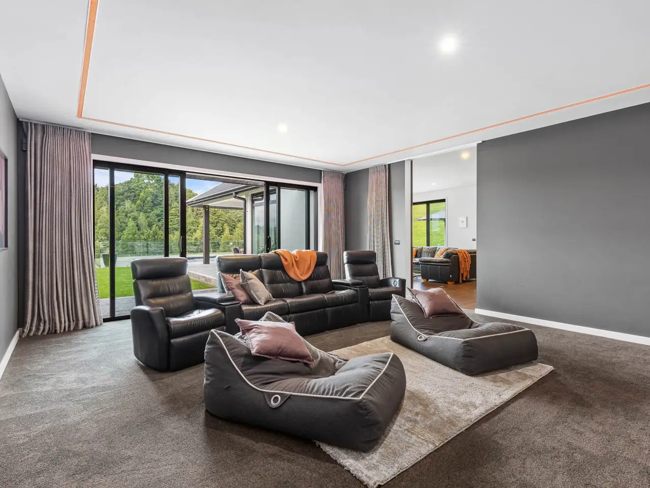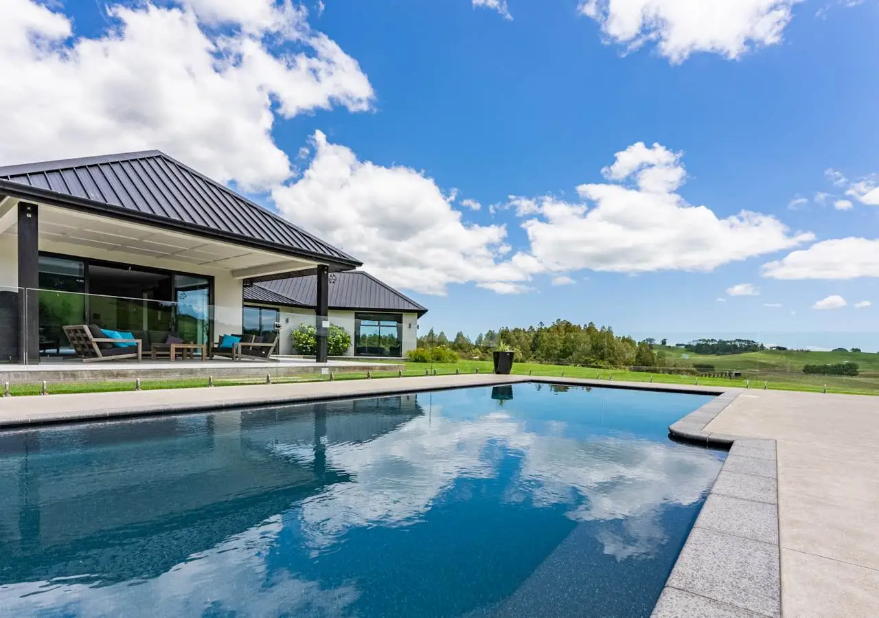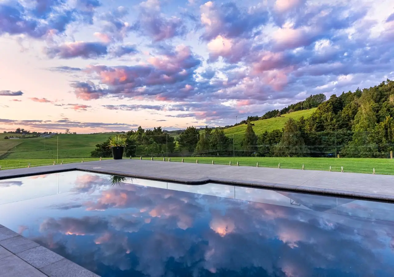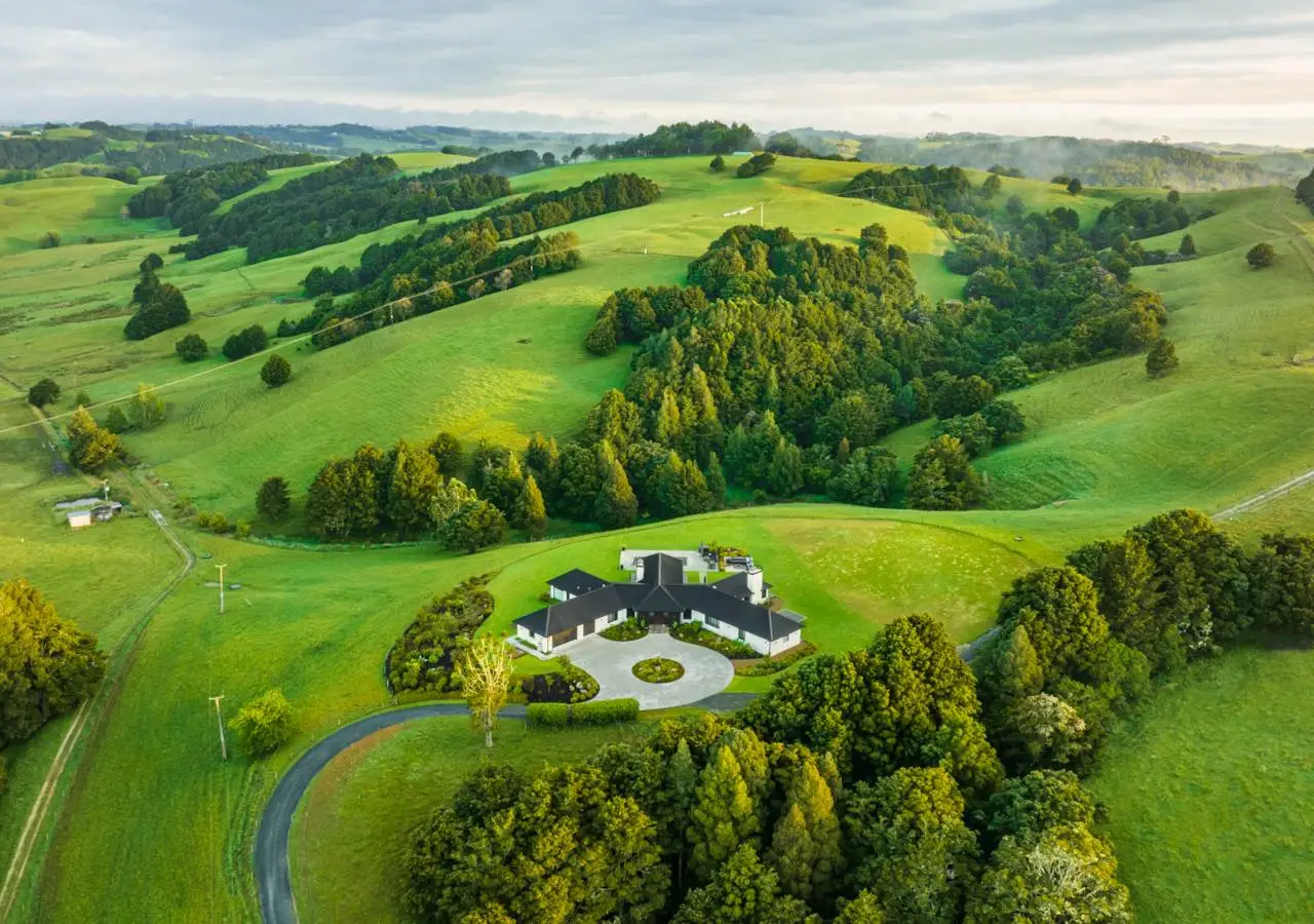 Set on 88 acres of rolling farmland and native bush, this 467m² north-facing architectural residence captures all-day sun and brings a refined modern aesthetic to the New Zealand countryside. Every element - from its timeless materials to its panoramic rural outlooks - has been designed to create a home that feels connected, calm, and effortlessly liveable. Inside, 3-metre-high ceilings and expansive glazing flood the main living areas with natural light and volume. Oak flooring and cedar detailing add warmth to the clean, contemporary interiors, designed for both relaxed daily living and sophisticated entertaining. At the heart of the home lies a Poggenpohl kitchen featuring Gaggenau appliances, two dishwashers, and integrated Liebherr fridges and freezers, complemented by a full scullery for seamless functionality. The open-plan living zones flow effortlessly to generous outdoor terraces, centred around an impressive Otago Schist stone fireplace, each stone thoughtfully placed by hand. Throughout, Vantage Thermal Heart joinery ensures superior comfort and efficiency, while Paffoni Italian tapware throughout adds a touch of European refinement. A dedicated bar with built-in wine and beer fridges enhances the home’s entertaining credentials, while a cinema room with Bose surround sound and electric recliners offers the perfect retreat for quiet evenings in. The master suite enjoys sweeping rural views, a luxurious ensuite, and a spacious walk-in wardrobe. Each additional bedroom opens directly onto private decking, providing a peaceful connection to the surrounding landscape. Outdoors, a 9.5-metre heated freshwater pool, natural stone fire pit, and beautifully landscaped grounds make the most of the home’s sun-soaked position. Beyond, 25 well-fenced paddocks, a large barn, stockyards, and dam-fed troughs make this an ideal working or lifestyle farm. An orchard and vegetable gardens add a touch of self-sufficiency. While the landholding is significant, there are options to lease grazing or have the wider acreage managed externally - allowing you to simply enjoy the beautifully manicured grounds immediately surrounding the home. Located within 20 minutes of Te Arai Links Golf Course, and close to Forestry, Te Arai and Mangawhai beaches as well as Matakana, Warkworth, and Wellsford, this property offers privacy, scale, and sophistication - all within easy reach of the coast and city. No expense has been spared in creating this extraordinary home - your chance to own a truly exceptional slice of New Zealand. Will be sold plus GST (if any). Contact James Doole to arrange your private viewing.