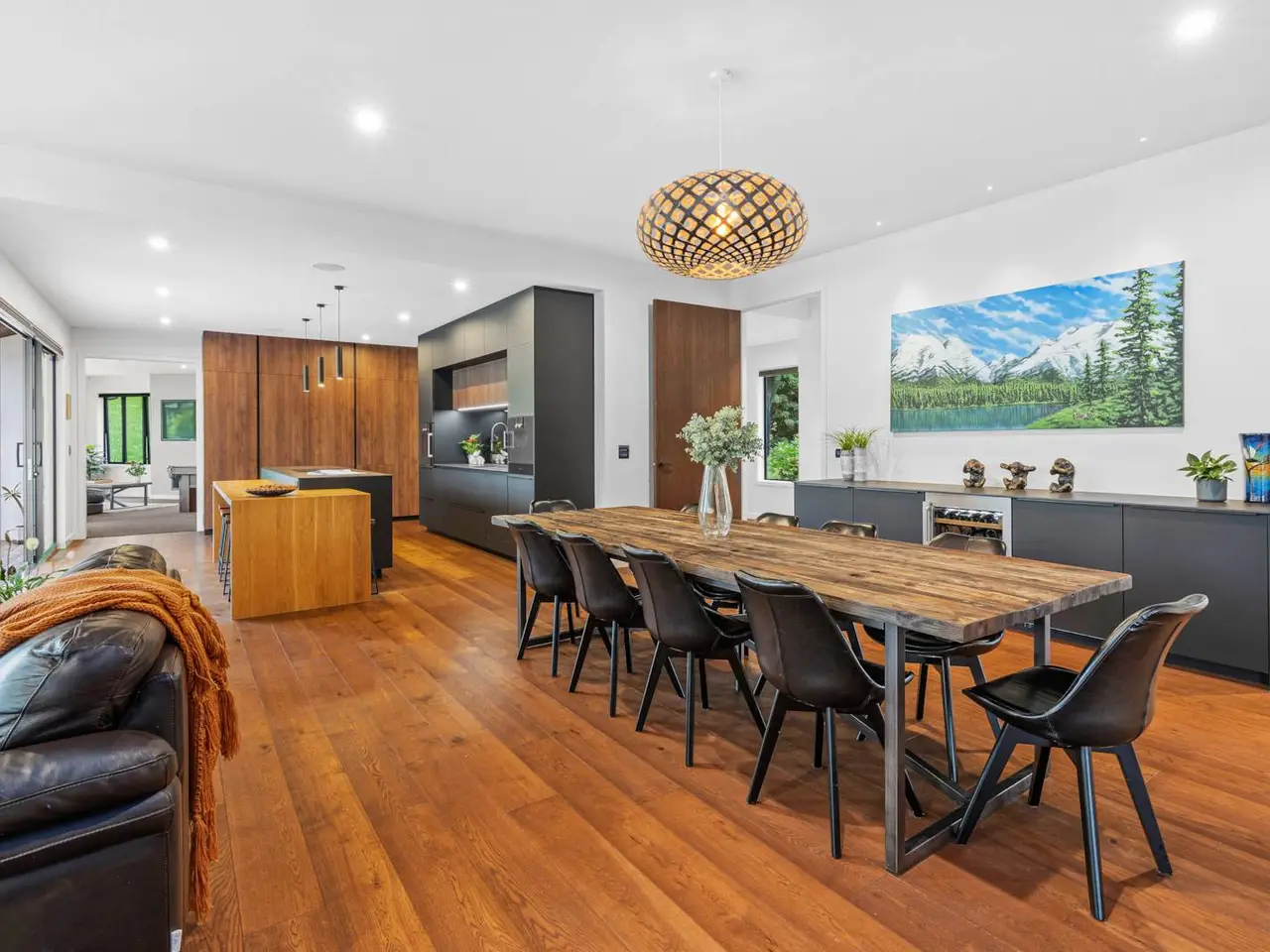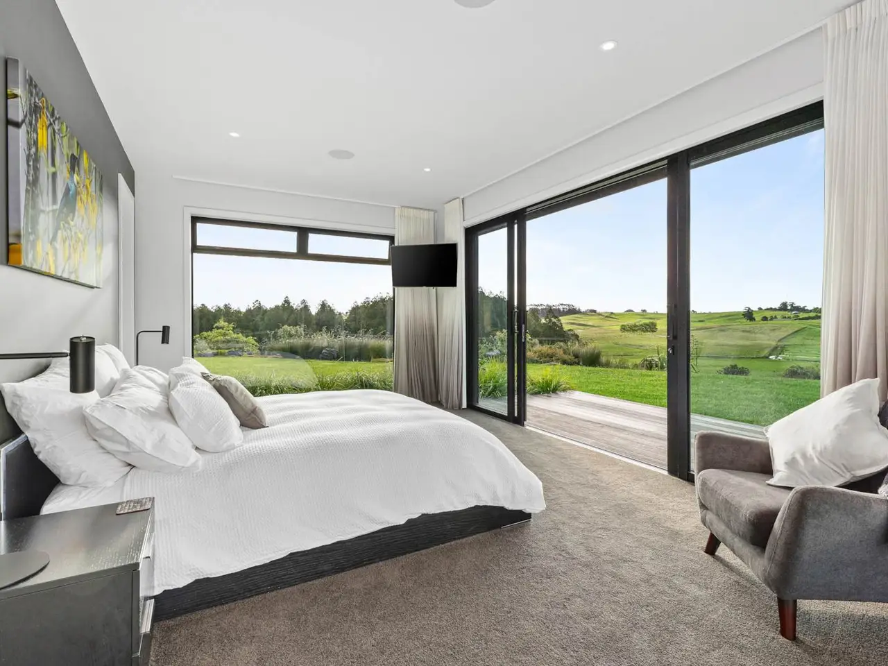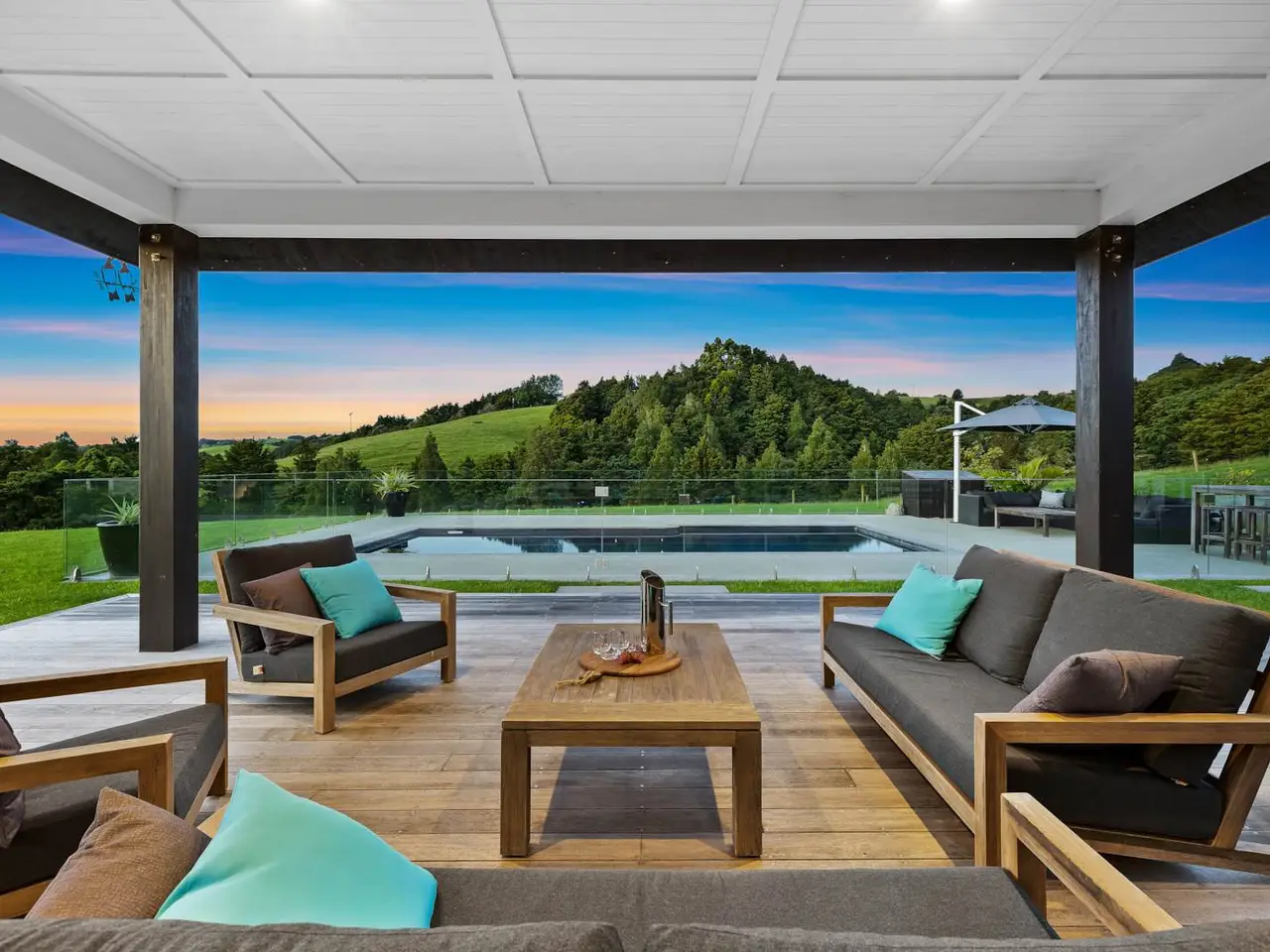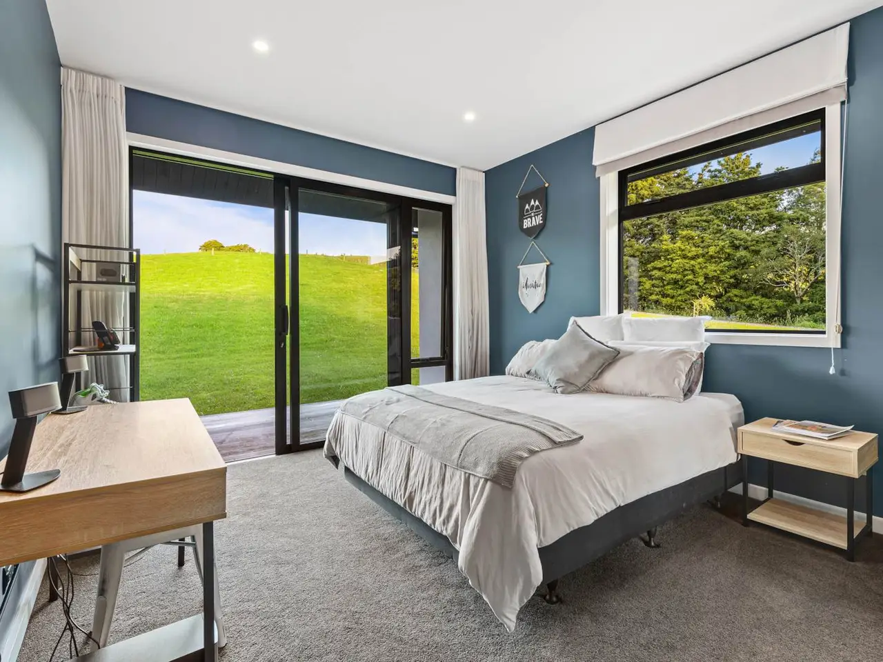 Set on 88 acres of rolling farmland and native bush, this 467m² north-facing architectural residence captures all-day sun and brings a refined modern aesthetic to the New Zealand countryside. Every element - from its timeless materials to its panoramic rural outlooks - has been designed to create a home that feels connected, calm, and effortlessly liveable. Inside, 3-metre-high ceilings and expansive glazing flood the main living areas with natural light and volume. Oak flooring and cedar detailing add warmth to the clean, contemporary interiors, designed for both relaxed daily living and sophisticated entertaining. At the heart of the home lies a Poggenpohl kitchen featuring Gaggenau appliances, two dishwashers, and integrated Liebherr fridges and freezers, complemented by a full scullery for seamless functionality. The open-plan living zones flow effortlessly to generous outdoor terraces, centred around an impressive Otago Schist stone fireplace, each stone thoughtfully placed by hand. Throughout, Vantage Thermal Heart joinery ensures superior comfort and efficiency, while Paffoni Italian tapware throughout adds a touch of European refinement. A dedicated bar with built-in wine and beer fridges enhances the home’s entertaining credentials, while a cinema room with Bose surround sound and electric recliners offers the perfect retreat for quiet evenings in. The master suite enjoys sweeping rural views, a luxurious ensuite, and a spacious walk-in wardrobe. Each additional bedroom opens directly onto private decking, providing a peaceful connection to the surrounding landscape. Outdoors, a 9.5-metre heated freshwater pool, natural stone fire pit, and beautifully landscaped grounds make the most of the home’s sun-soaked position. Beyond, 25 well-fenced paddocks, a large barn, stockyards, and dam-fed troughs make this an ideal working or lifestyle farm. An orchard and vegetable gardens add a touch of self-sufficiency. While the landholding is significant, there are options to lease grazing or have the wider acreage managed externally - allowing you to simply enjoy the beautifully manicured grounds immediately surrounding the home. Located within 20 minutes of Te Arai Links Golf Course, and close to Forestry, Te Arai and Mangawhai beaches as well as Matakana, Warkworth, and Wellsford, this property offers privacy, scale, and sophistication - all within easy reach of the coast and city. No expense has been spared in creating this extraordinary home - your chance to own a truly exceptional slice of New Zealand. Will be sold plus GST (if any). Contact James Doole to arrange your private viewing.
