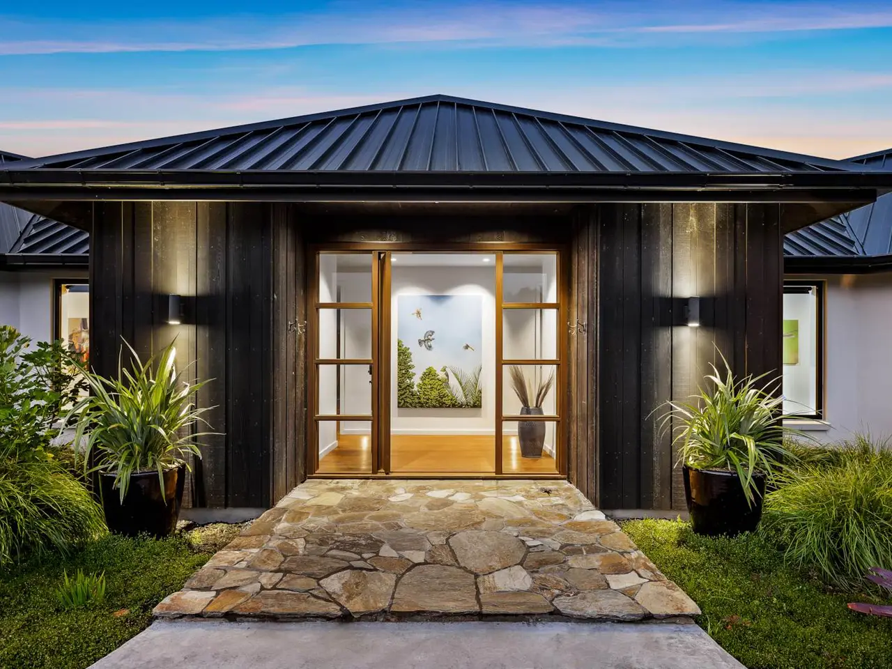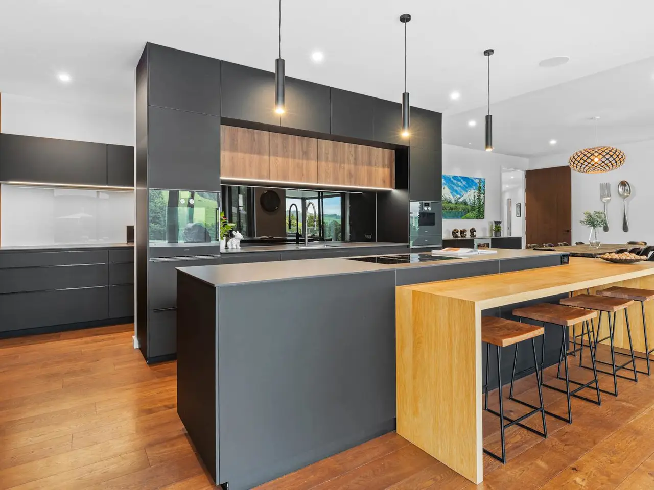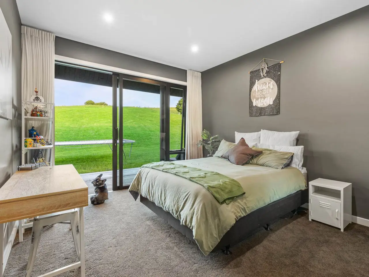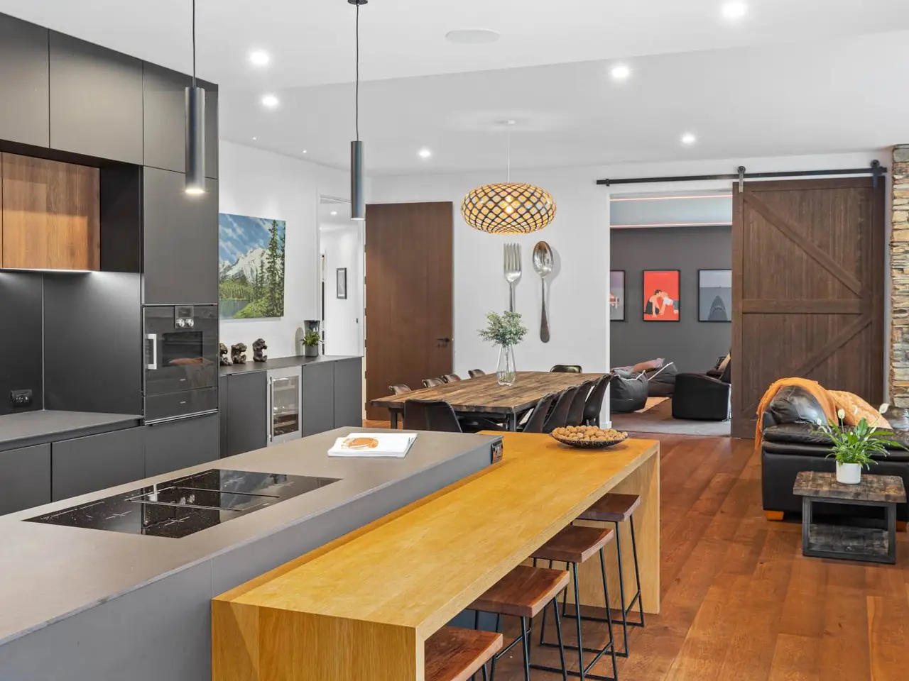 Set on 88 acres of rolling farmland and native bush, this 467m² north-facing architectural residence captures all-day sun and brings a refined modern aesthetic to the New Zealand countryside. Every element - from its timeless materials to its panoramic rural outlooks - has been designed to create a home that feels connected, calm, and effortlessly liveable. Inside, 3-metre-high ceilings and expansive glazing flood the main living areas with natural light and volume. Oak flooring and cedar detailing add warmth to the clean, contemporary interiors, designed for both relaxed daily living and sophisticated entertaining. At the heart of the home lies a Poggenpohl kitchen featuring Gaggenau appliances, two dishwashers, and integrated Liebherr fridges and freezers, complemented by a full scullery for seamless functionality. The open-plan living zones flow effortlessly to generous outdoor terraces, centred around an impressive Otago Schist stone fireplace, each stone thoughtfully placed by hand. Throughout, Vantage Thermal Heart joinery ensures superior comfort and efficiency, while Paffoni Italian tapware throughout adds a touch of European refinement. A dedicated bar with built-in wine and beer fridges enhances the home’s entertaining credentials, while a cinema room with Bose surround sound and electric recliners offers the perfect retreat for quiet evenings in. The master suite enjoys sweeping rural views, a luxurious ensuite, and a spacious walk-in wardrobe. Each additional bedroom opens directly onto private decking, providing a peaceful connection to the surrounding landscape. Outdoors, a 9.5-metre heated freshwater pool, natural stone fire pit, and beautifully landscaped grounds make the most of the home’s sun-soaked position. Beyond, 25 well-fenced paddocks, a large barn, stockyards, and dam-fed troughs make this an ideal working or lifestyle farm. An orchard and vegetable gardens add a touch of self-sufficiency. While the landholding is significant, there are options to lease grazing or have the wider acreage managed externally - allowing you to simply enjoy the beautifully manicured grounds immediately surrounding the home. Located within 20 minutes of Te Arai Links Golf Course, and close to Forestry, Te Arai and Mangawhai beaches as well as Matakana, Warkworth, and Wellsford, this property offers privacy, scale, and sophistication - all within easy reach of the coast and city. No expense has been spared in creating this extraordinary home - your chance to own a truly exceptional slice of New Zealand. Will be sold plus GST (if any). Contact James Doole to arrange your private viewing.